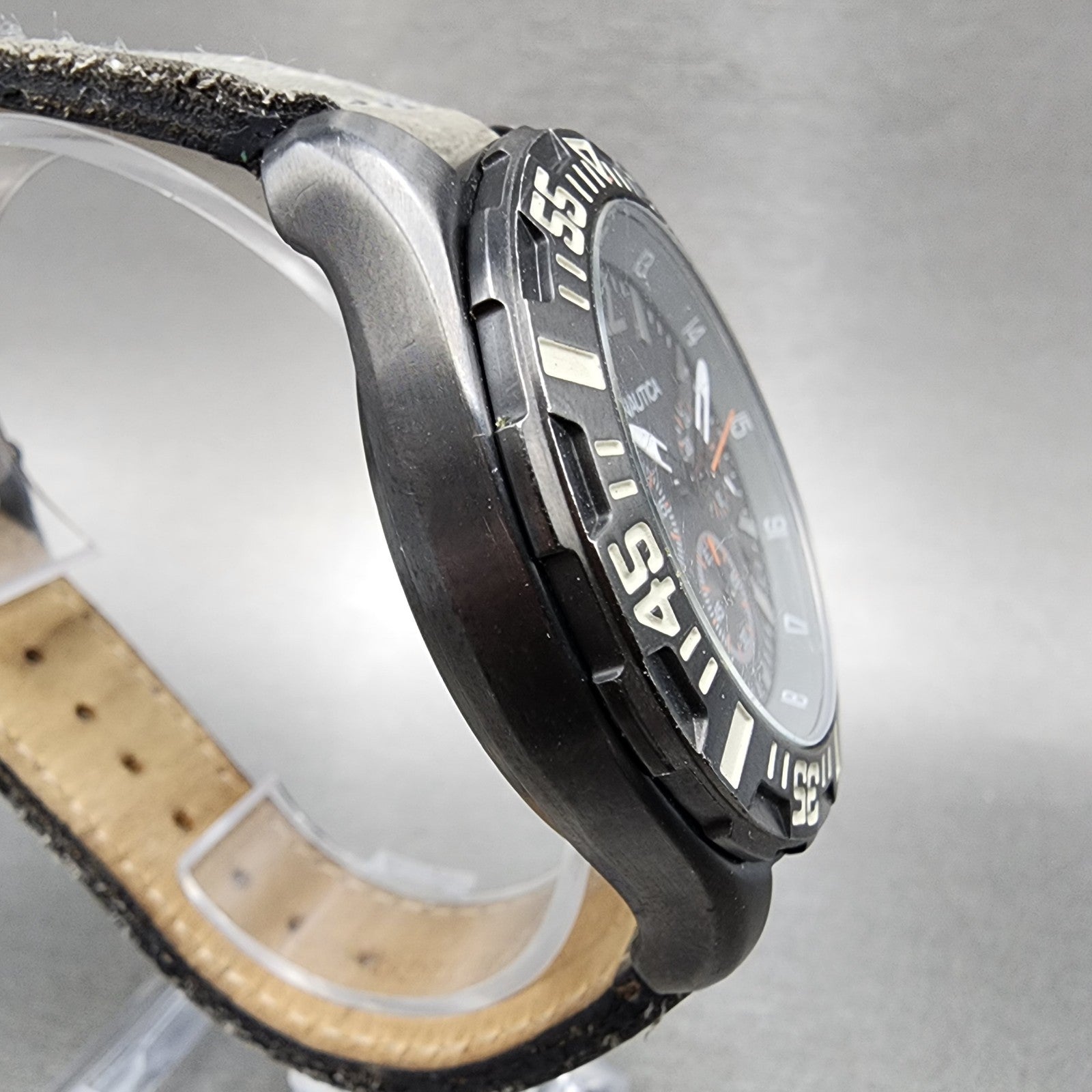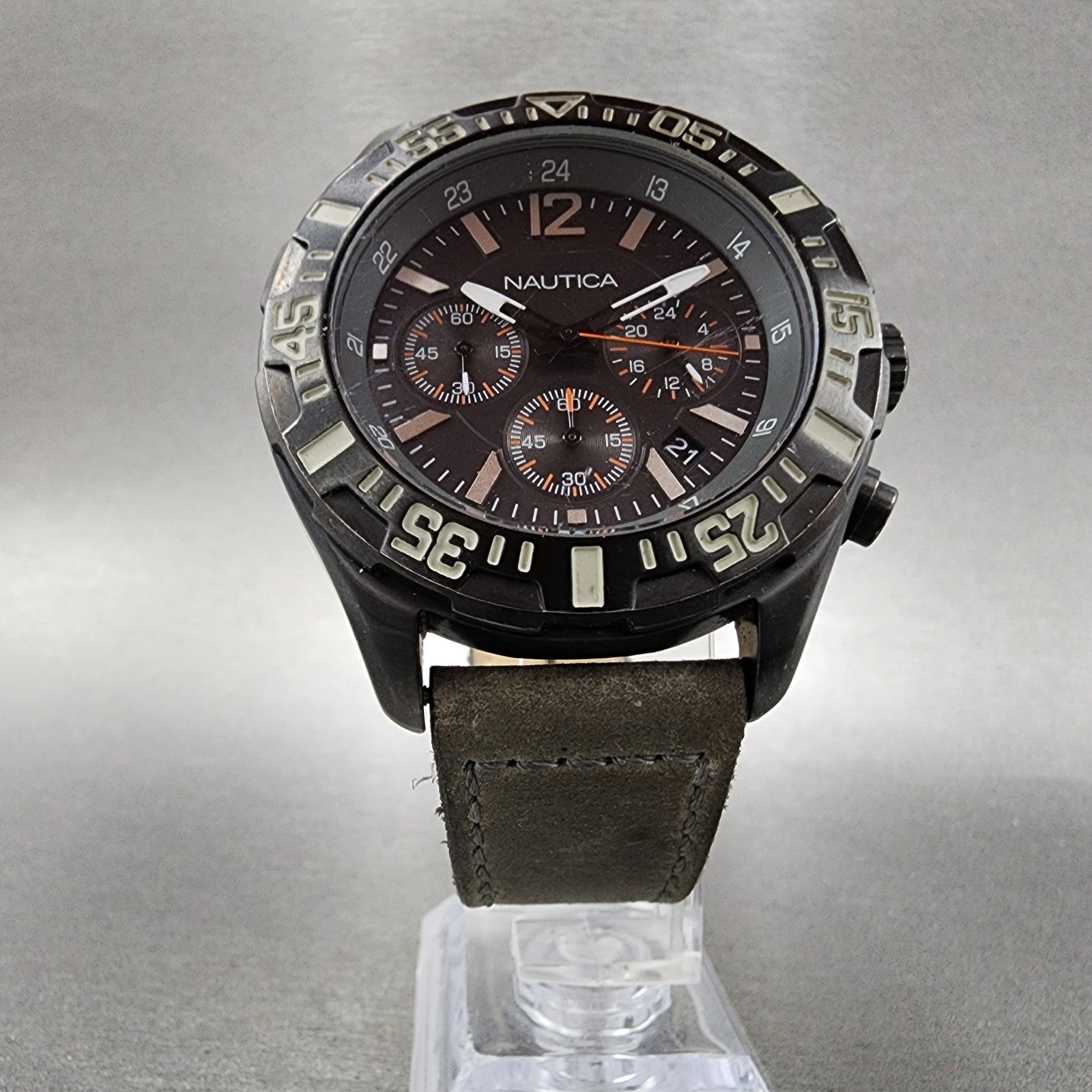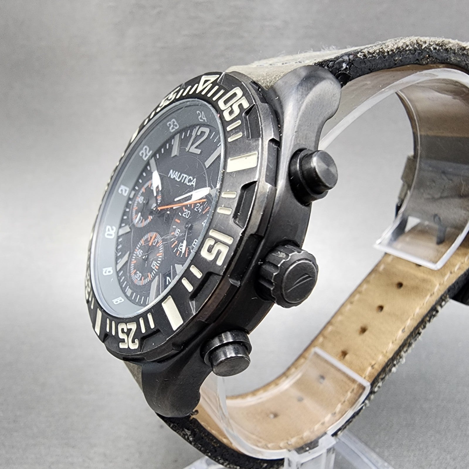 Nautica Chronograph Dive Watch Men 45mm Gray Dial Black Tone Date Round New Batt