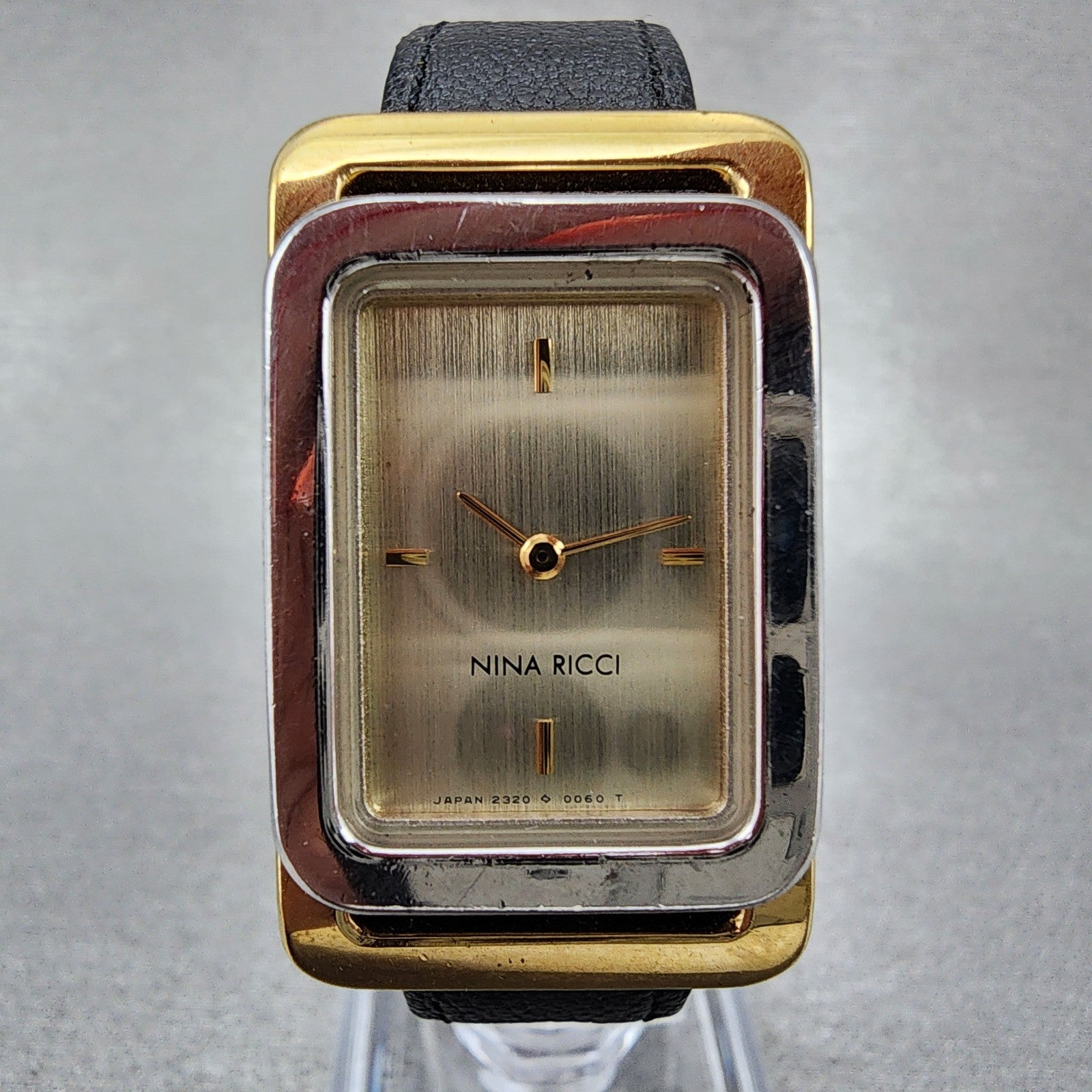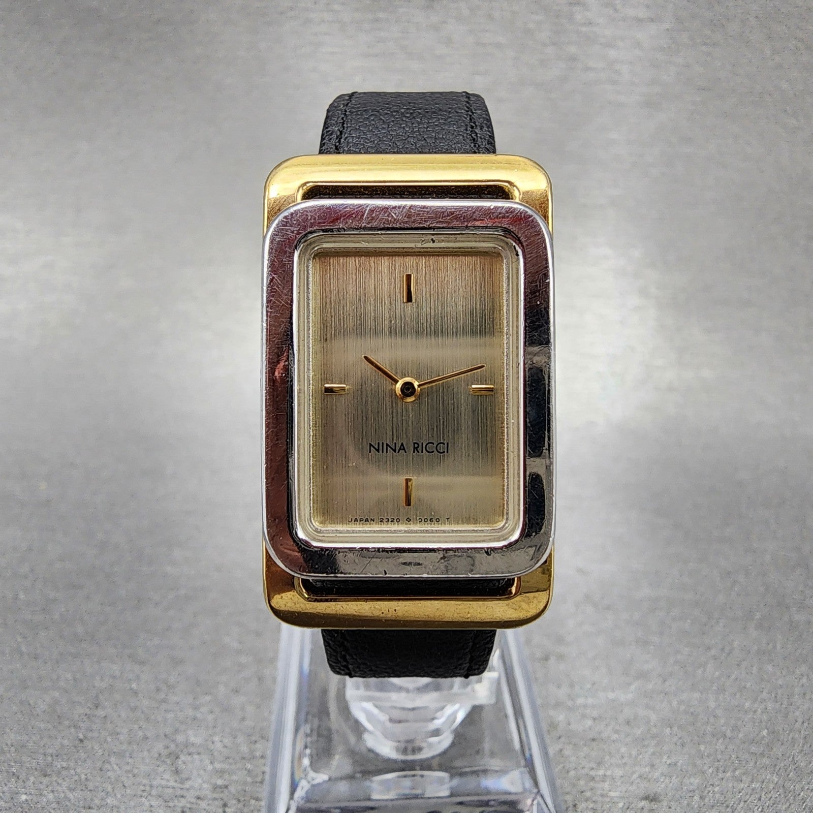Nina Ricci Tank Watch Women 21mm Champagne Dial Two Tone Rectangle New Battery