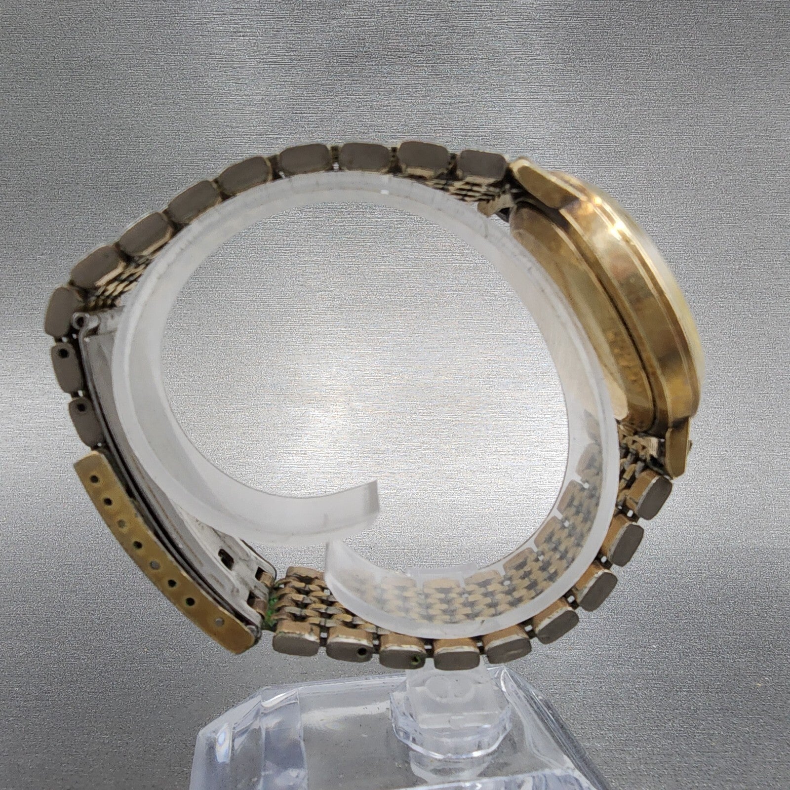 This item has been used and has scratchers on the case and crystal. The watch does not work and will need to be repaired. A NEW BATTERY WILL NOT FIX IT. DOES NOT HAVE A STEM OR CROWN.