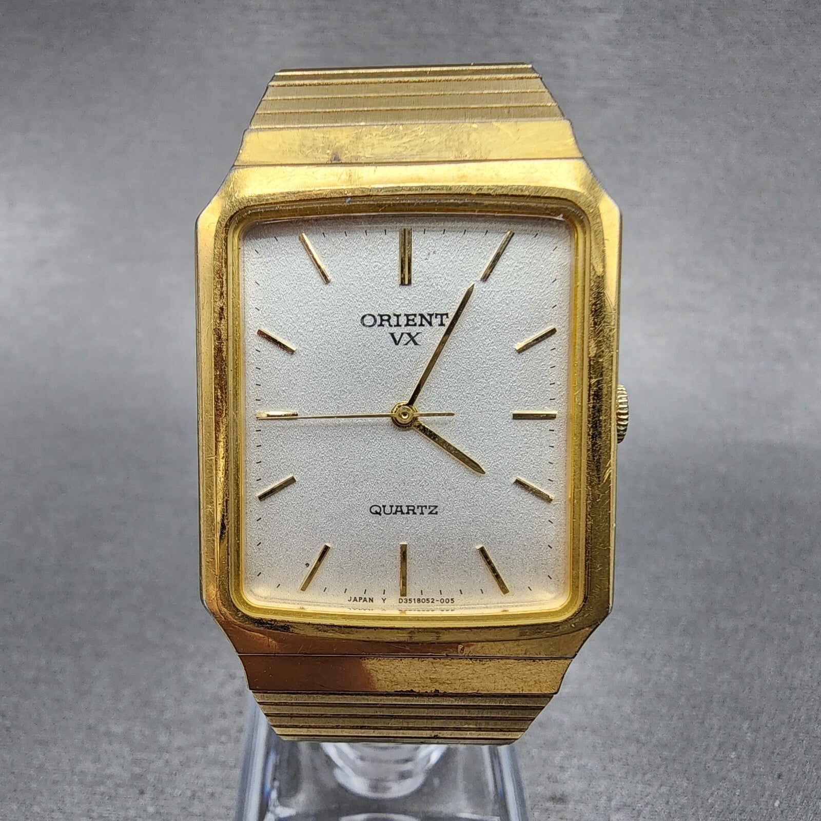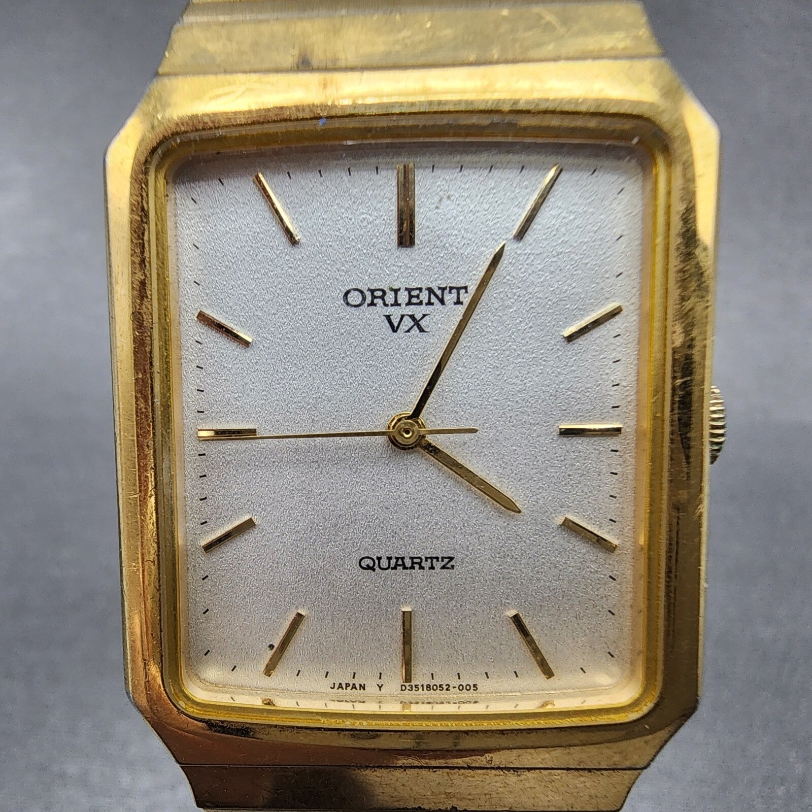 Orient VX Tank Watch Men 27mm Silver Dial Gold Tone Rectangle PARTS