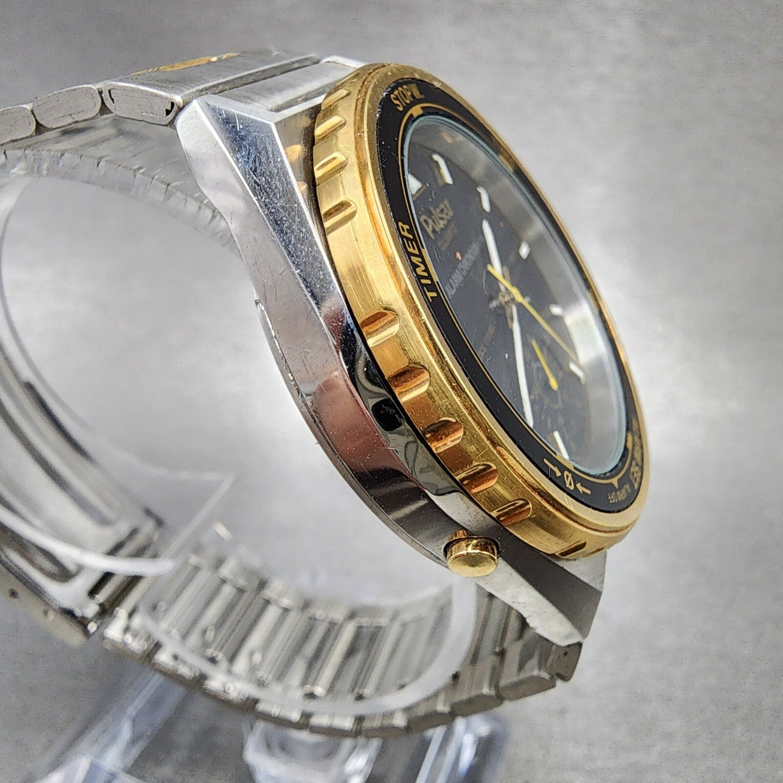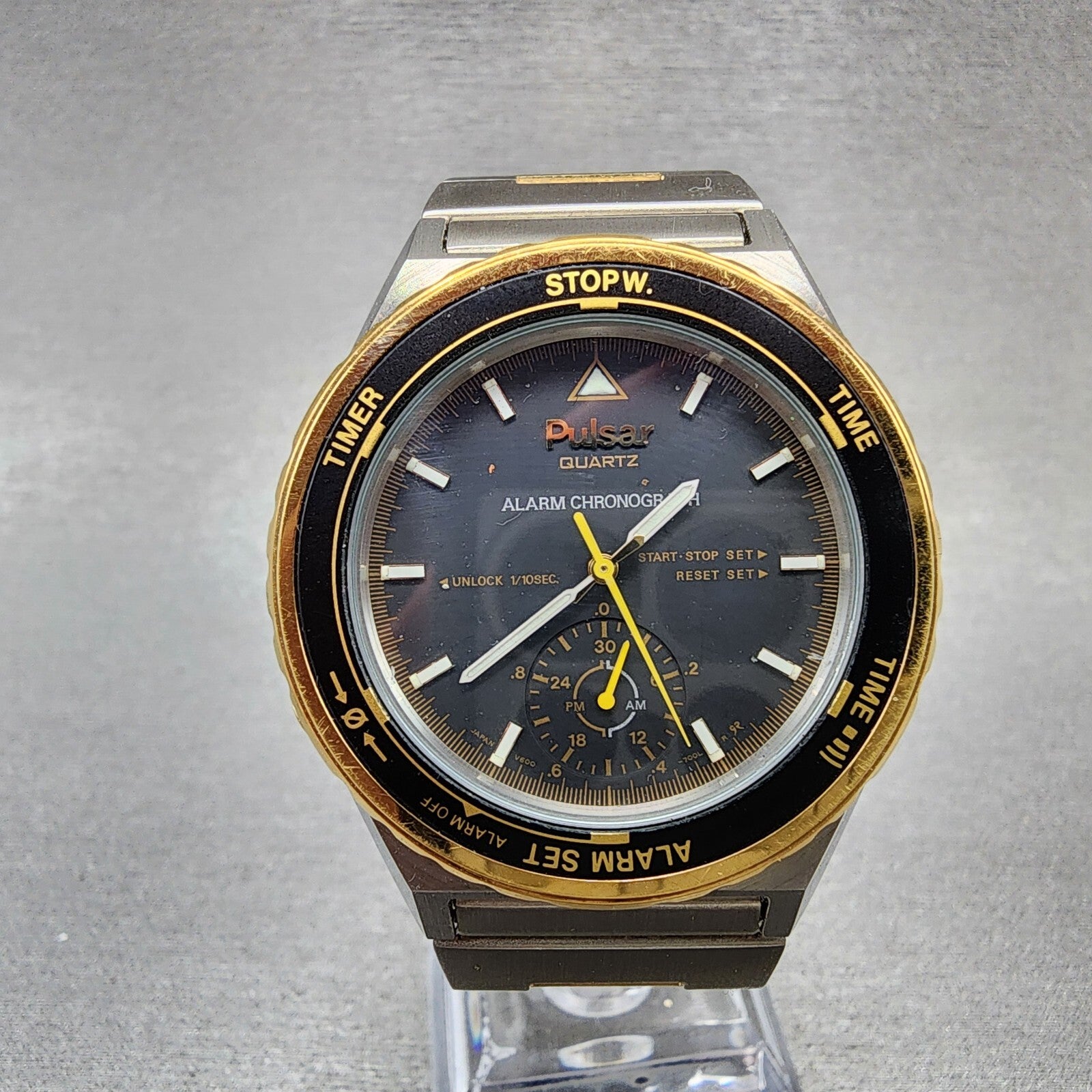 Pulsar Alarm Chronograph Watch Men 38mm Black Dial Two Tone V600-7000 PARTS