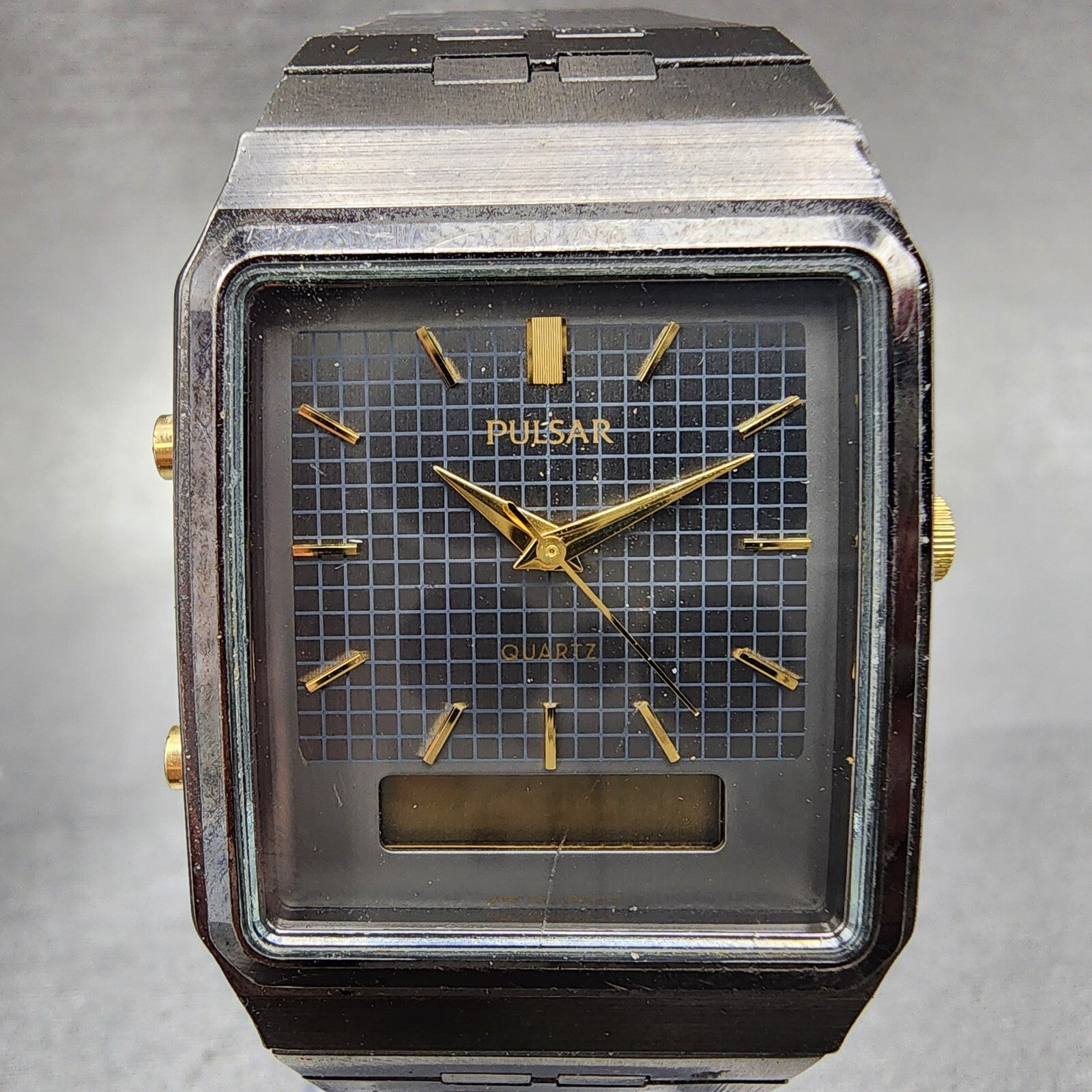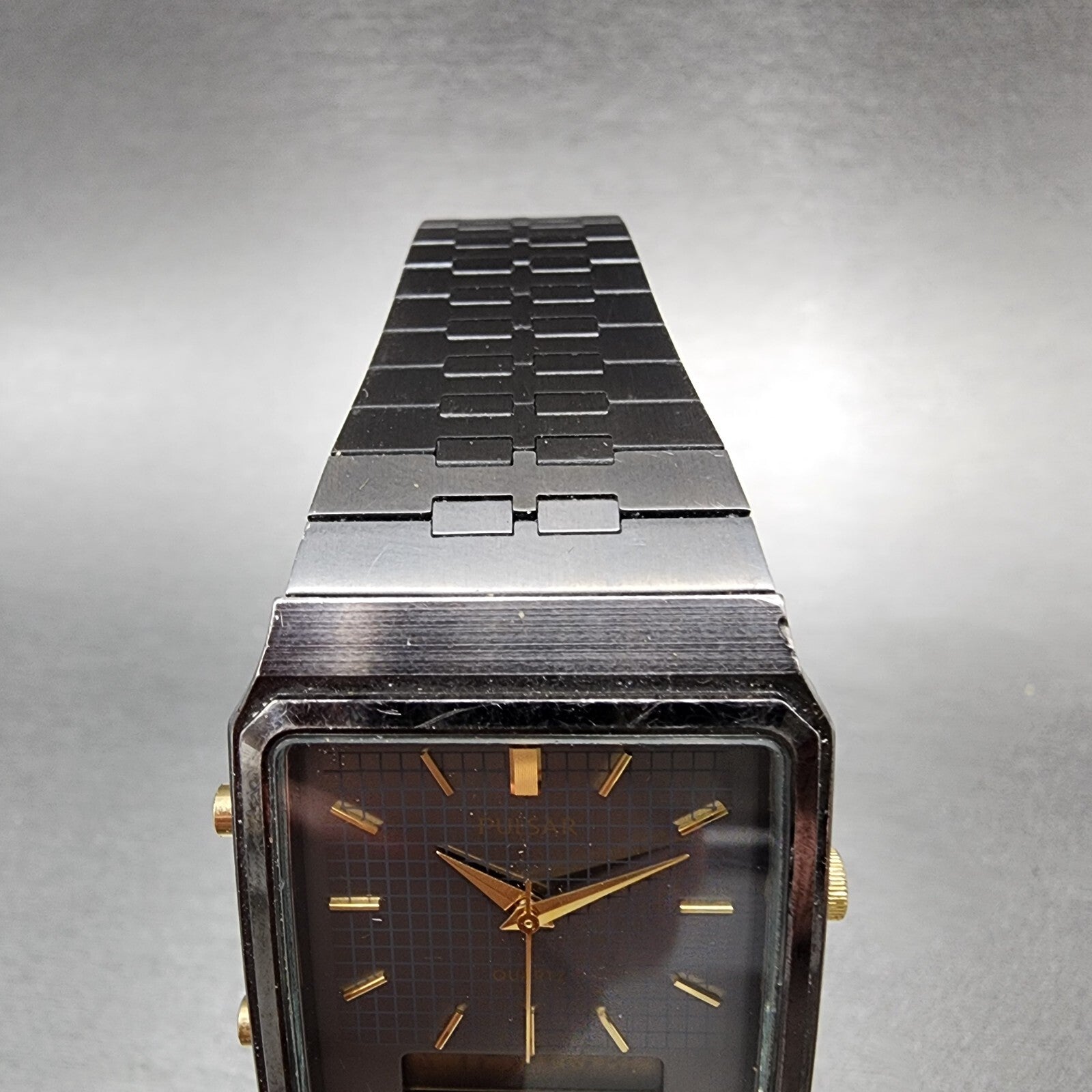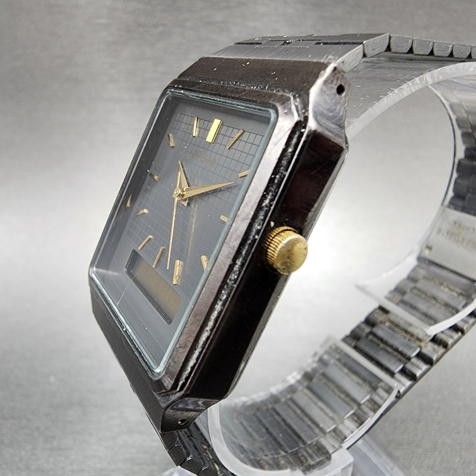 Pulsar Analog Digital Watch Men 29mm Black Dial Black Tone Rectangle READ!!!!!!!
