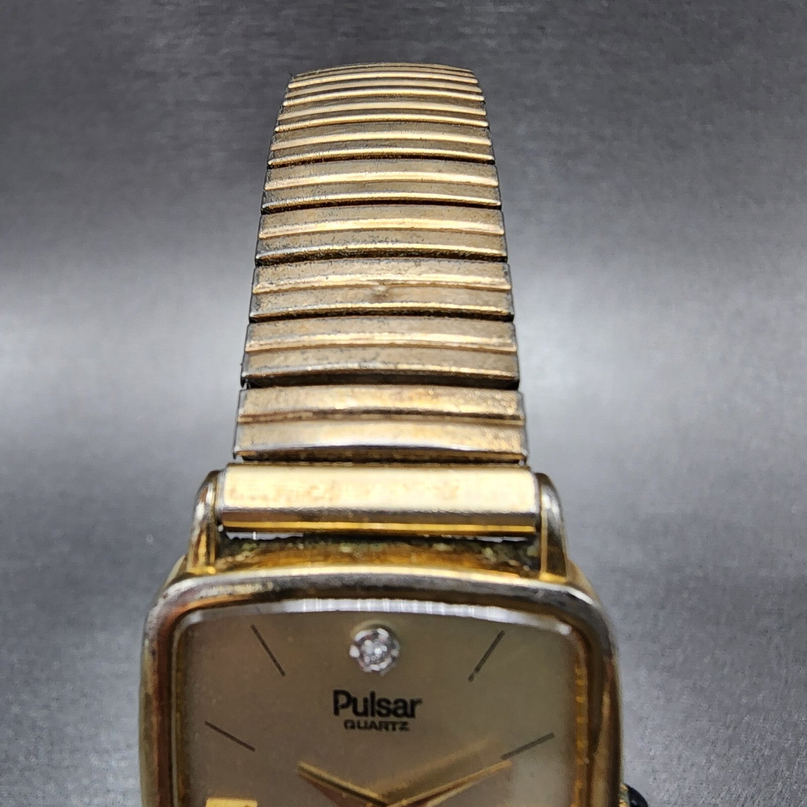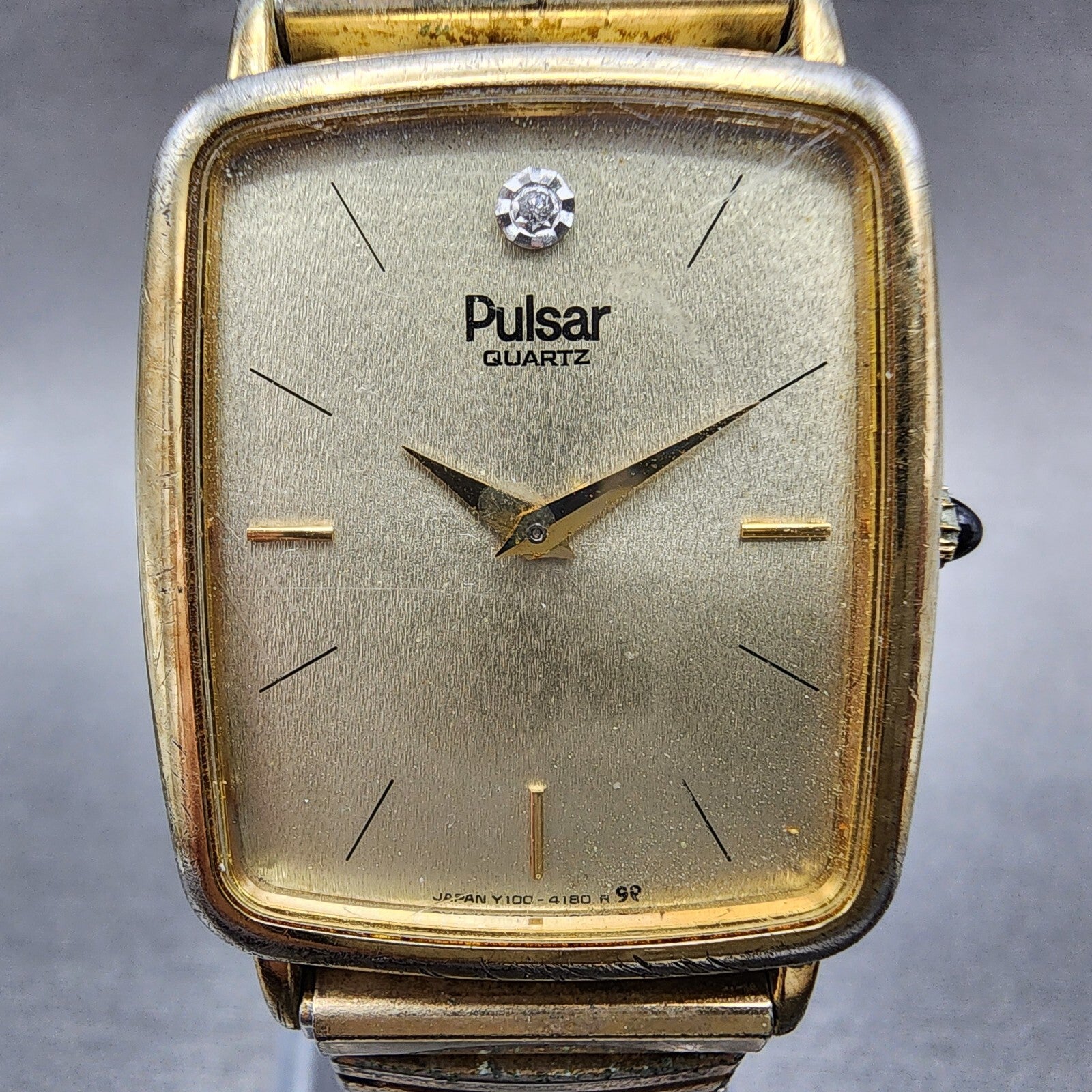 Pulsar Tank Watch Men 26mm Champange Dial Gold Tone Rectangle Y100-5869 PARTS
