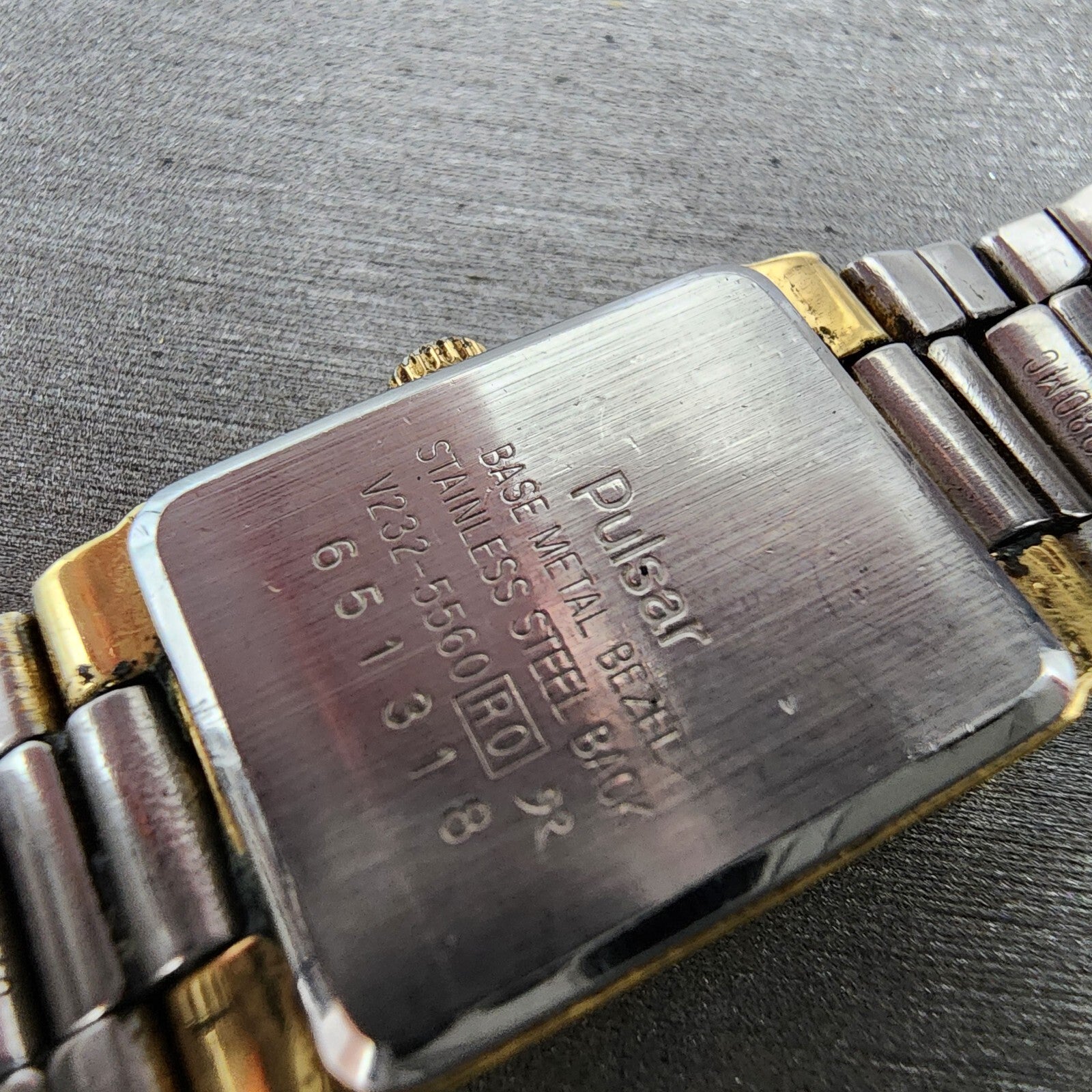 Pulsar Tank Watch Women 17mm Champagne Dial Gold Tone Rectangle New Battery