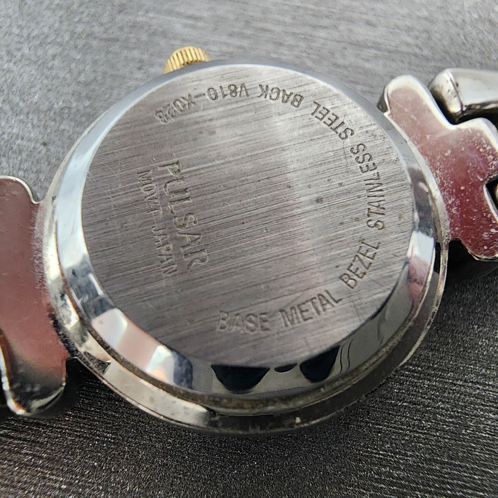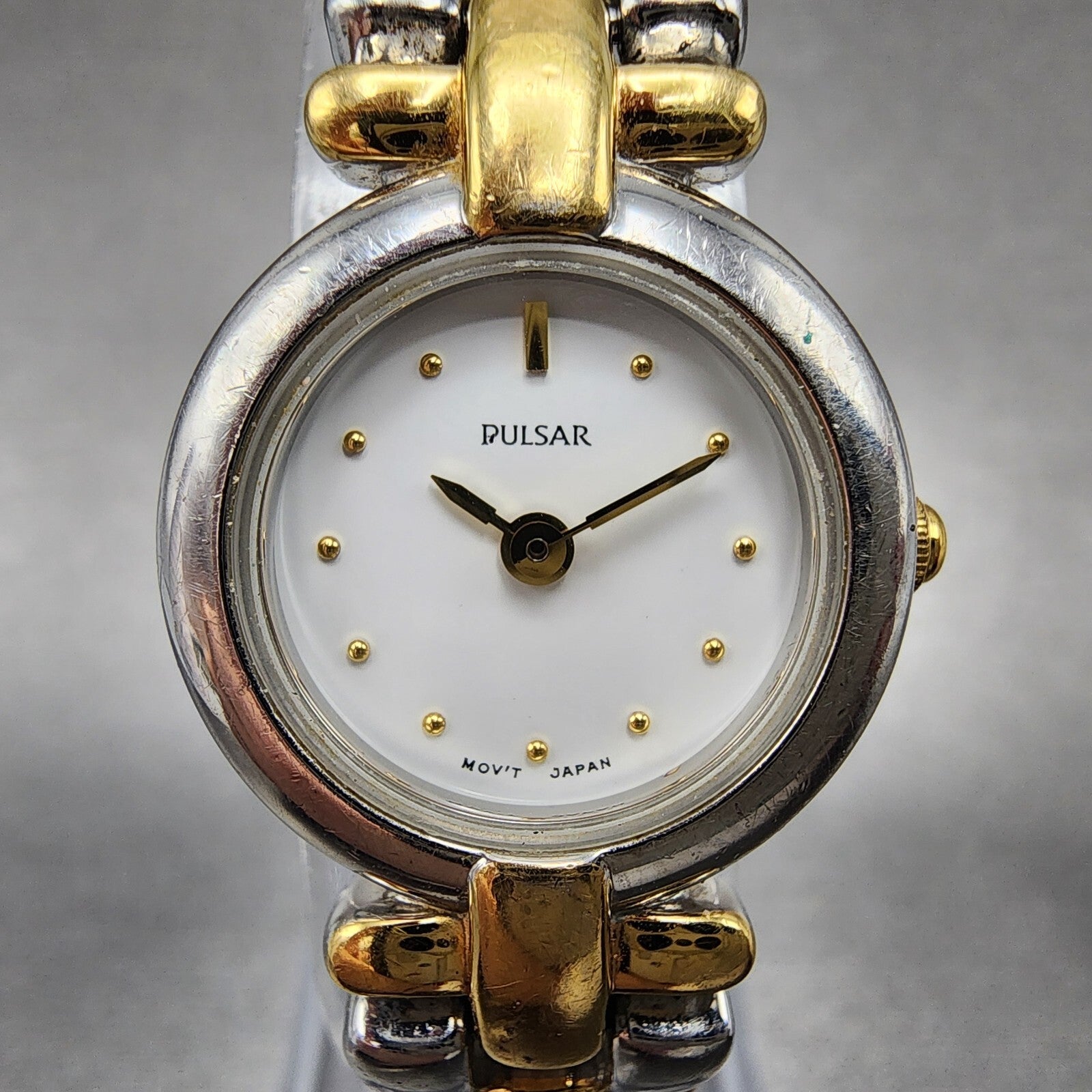 Pulsar Watch Women 21mm White Dial Two Tone Round V810-X028 New Battery