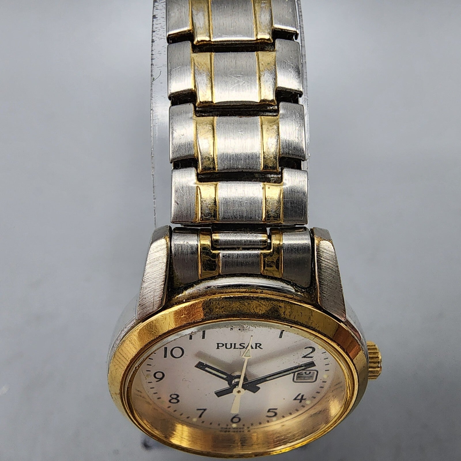 Pulsar Watch Women 22mm Silver Dial Two Tone Date Round VJ22-X025 New Battery