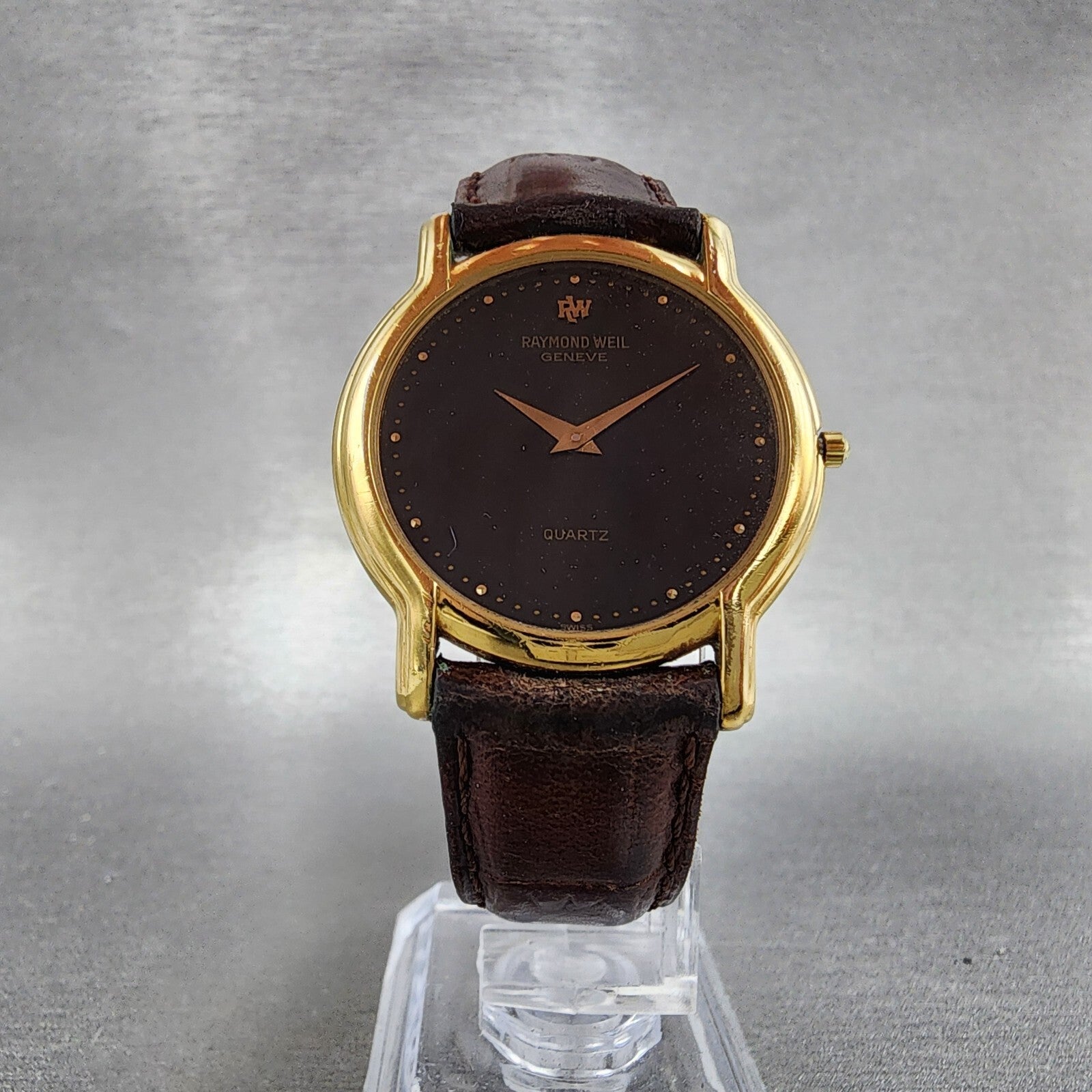 Raymond Weil Watch Men 32mm Black Dial Gold Plated Round 114 New Battery