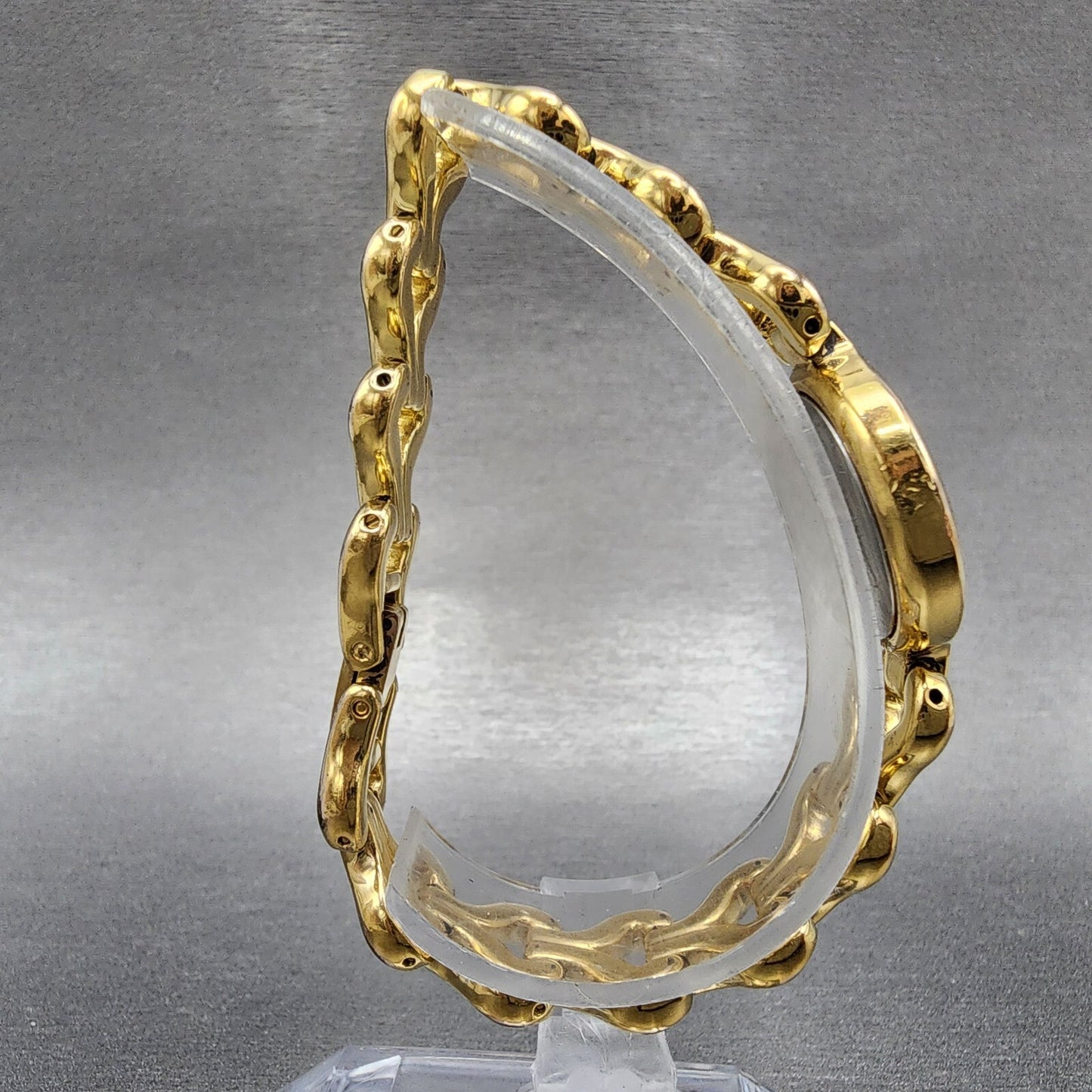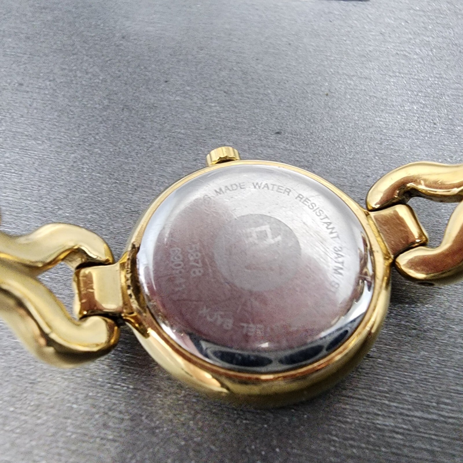 This watch has been used but is in good working condition. There is scratches on the watch. please refer to pictures. the dial has some spotting and the gold plating has some discoloration.