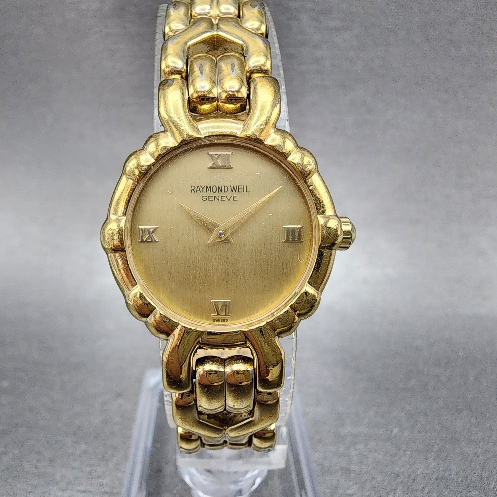 Raymond Weil Watch Women 24mm Gold Dial Gold Plated Round 3747 New Battery