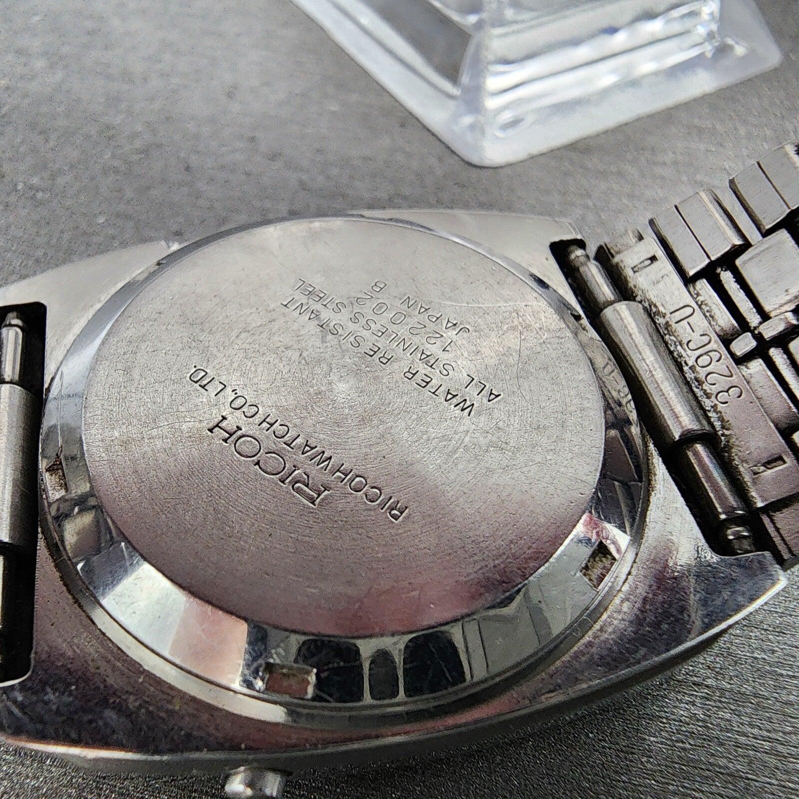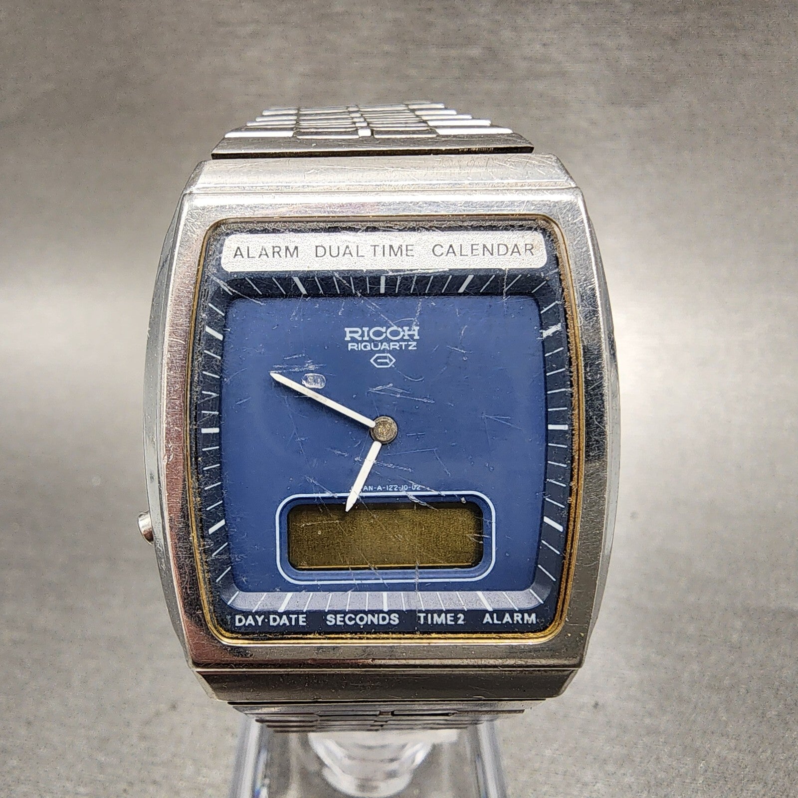 Ricoh Analog Digital Watch Men 33mm Blue Dial Steel Rectangle PARTS