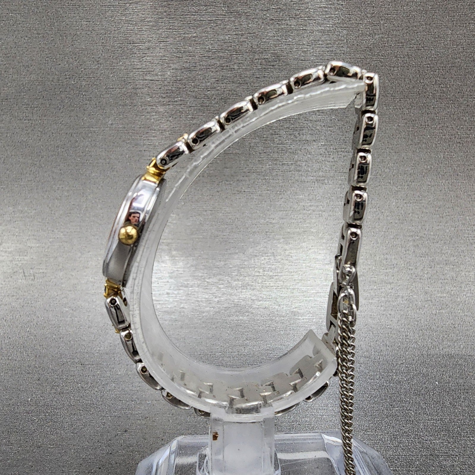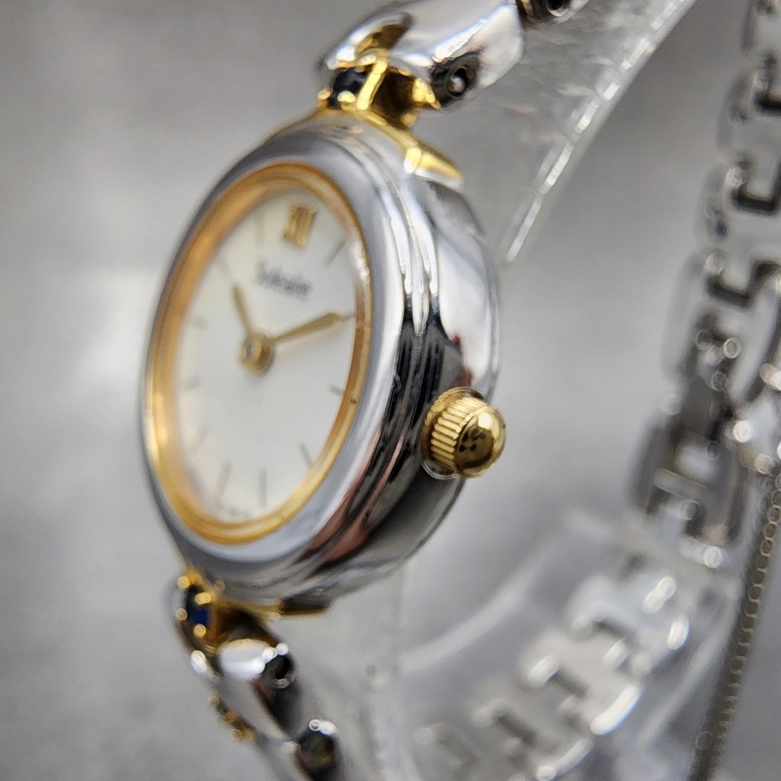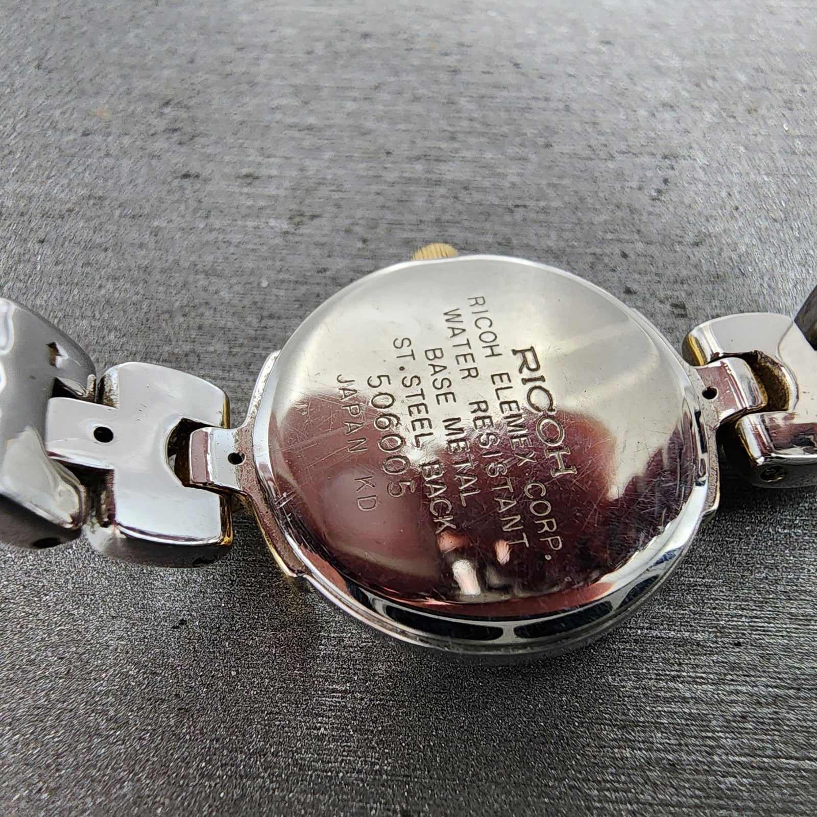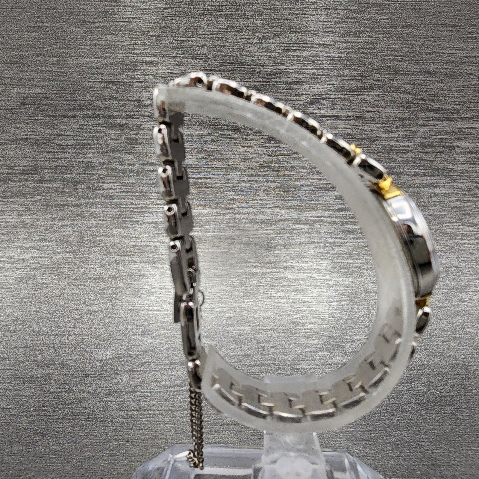 Ricoh Soleaire Watch Women 20mm MOP Dial Two Tone Blue Gemstones Round New Batt