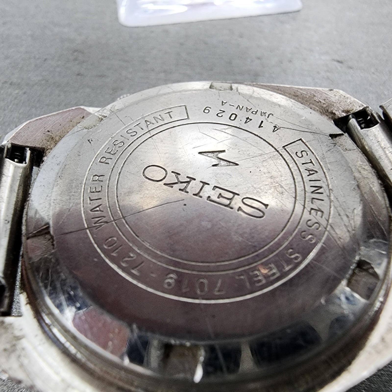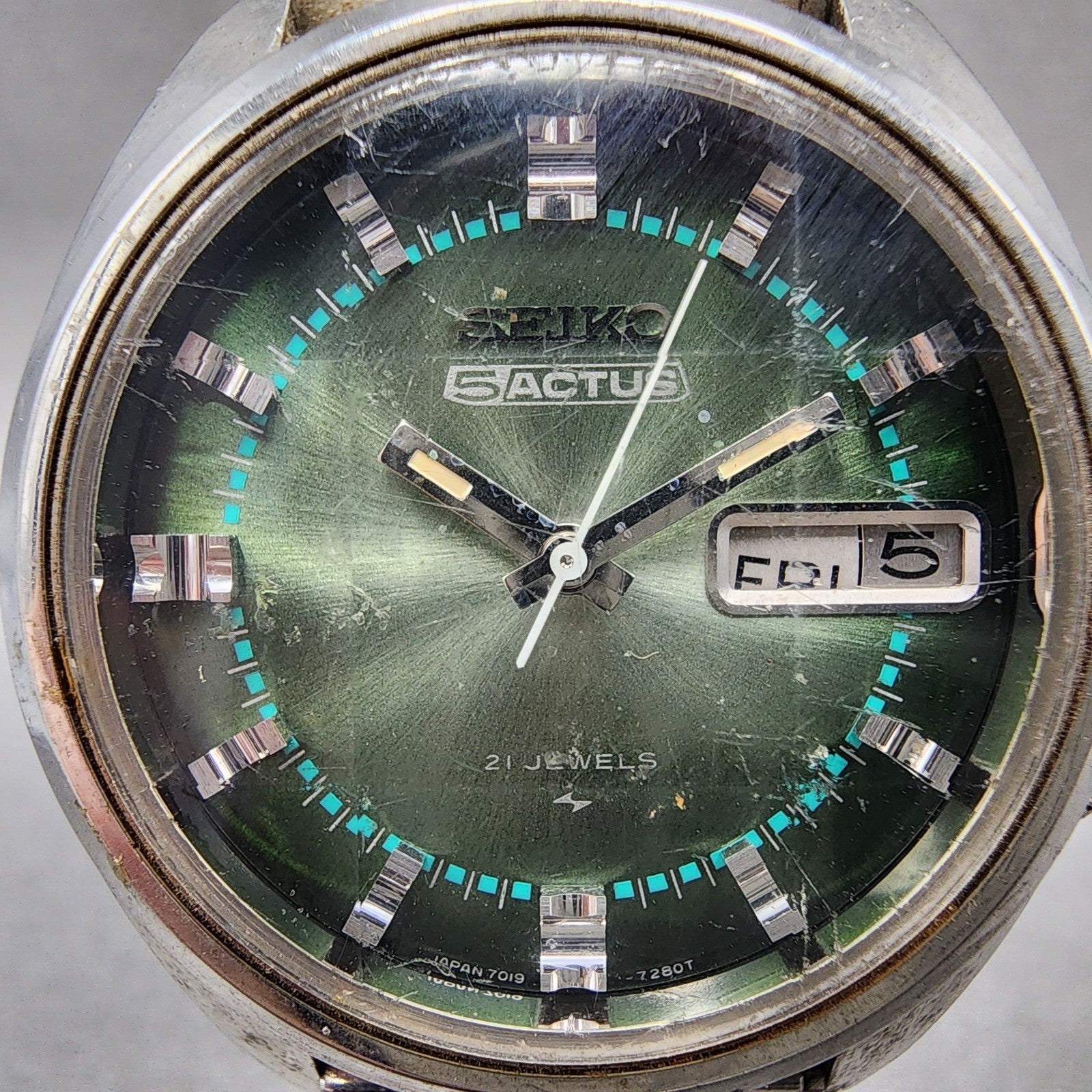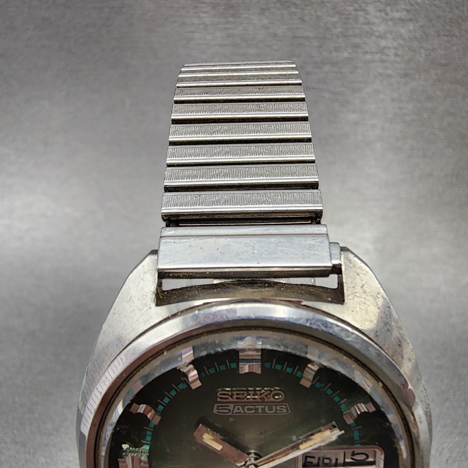 Seiko 5Actus Watch Men 37mm Green Dial Silver Tone Daydate 7019-7210 Runs READ!!