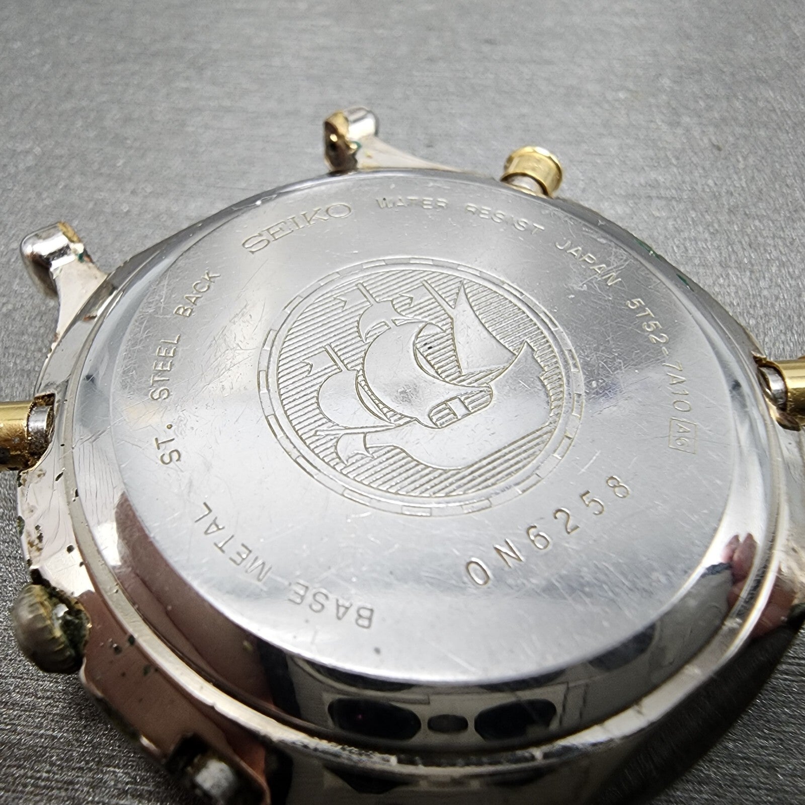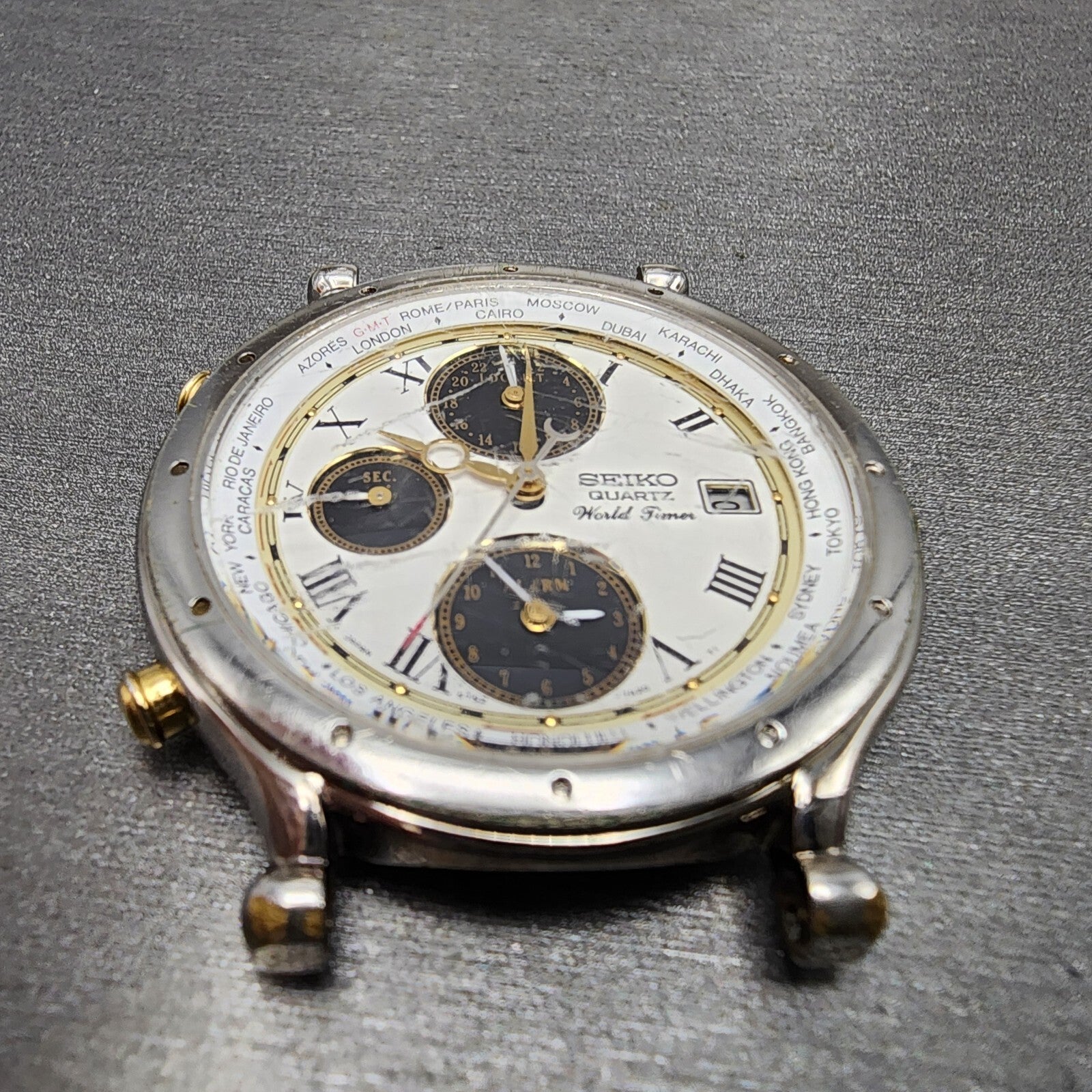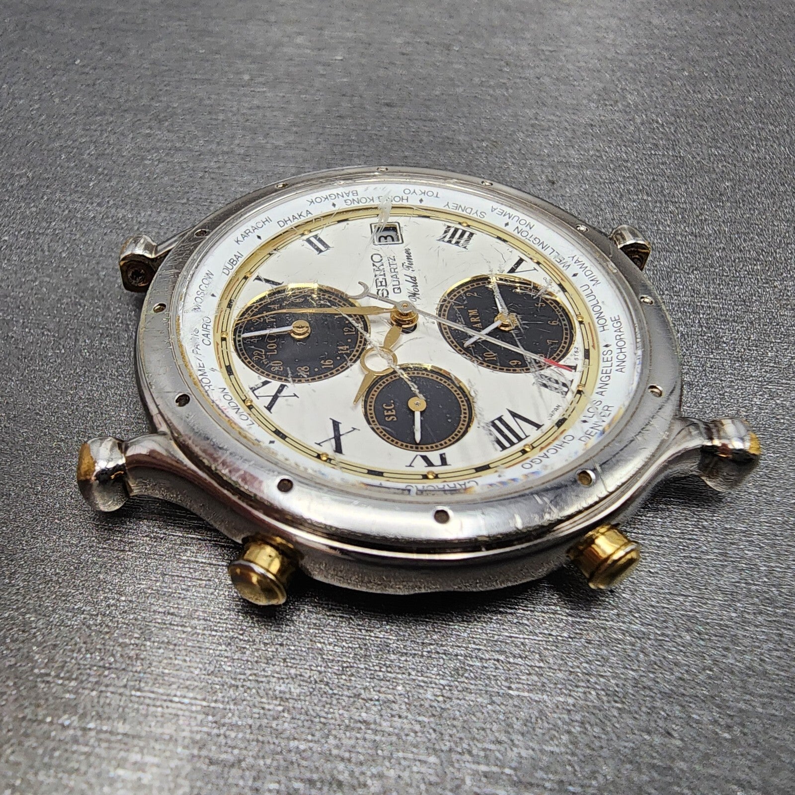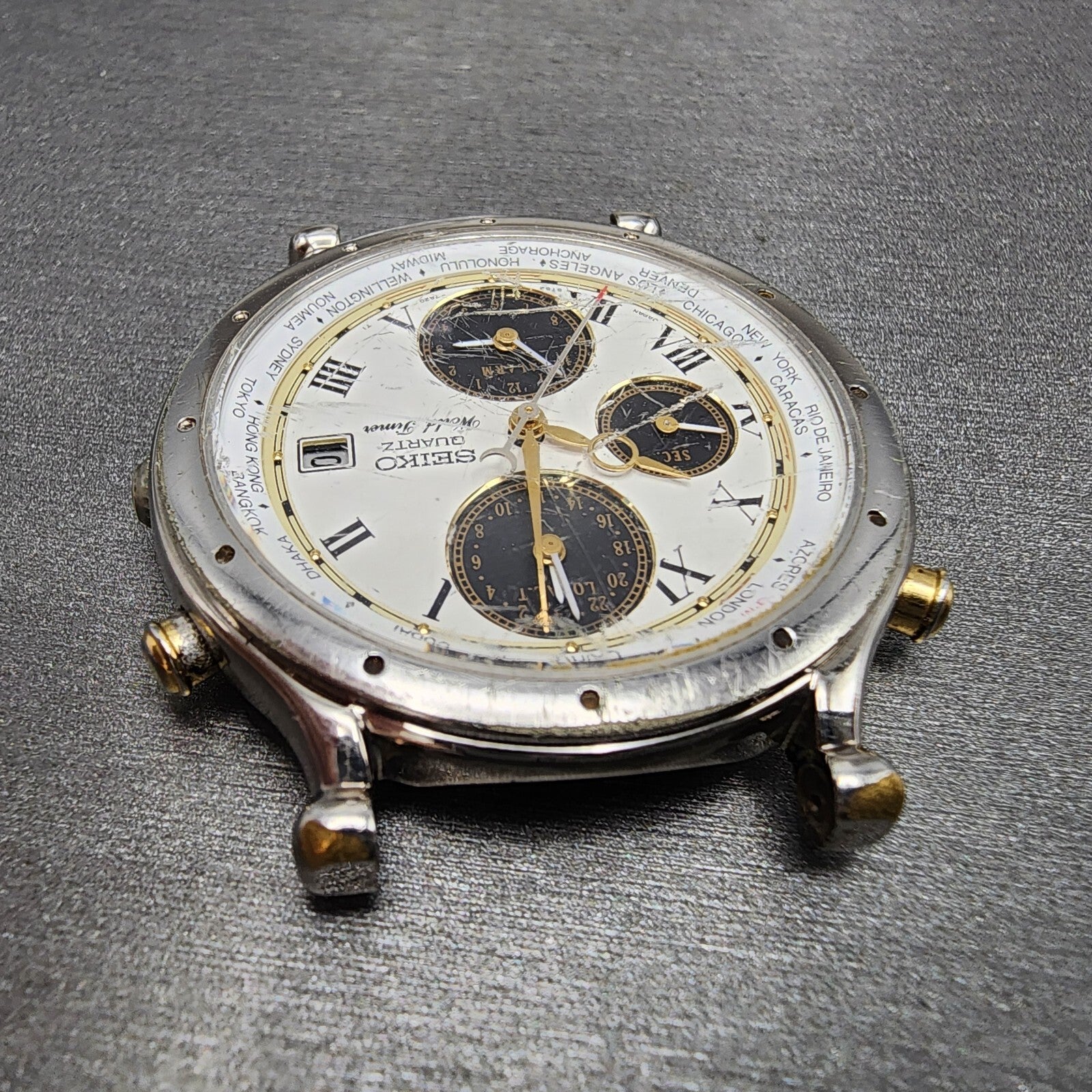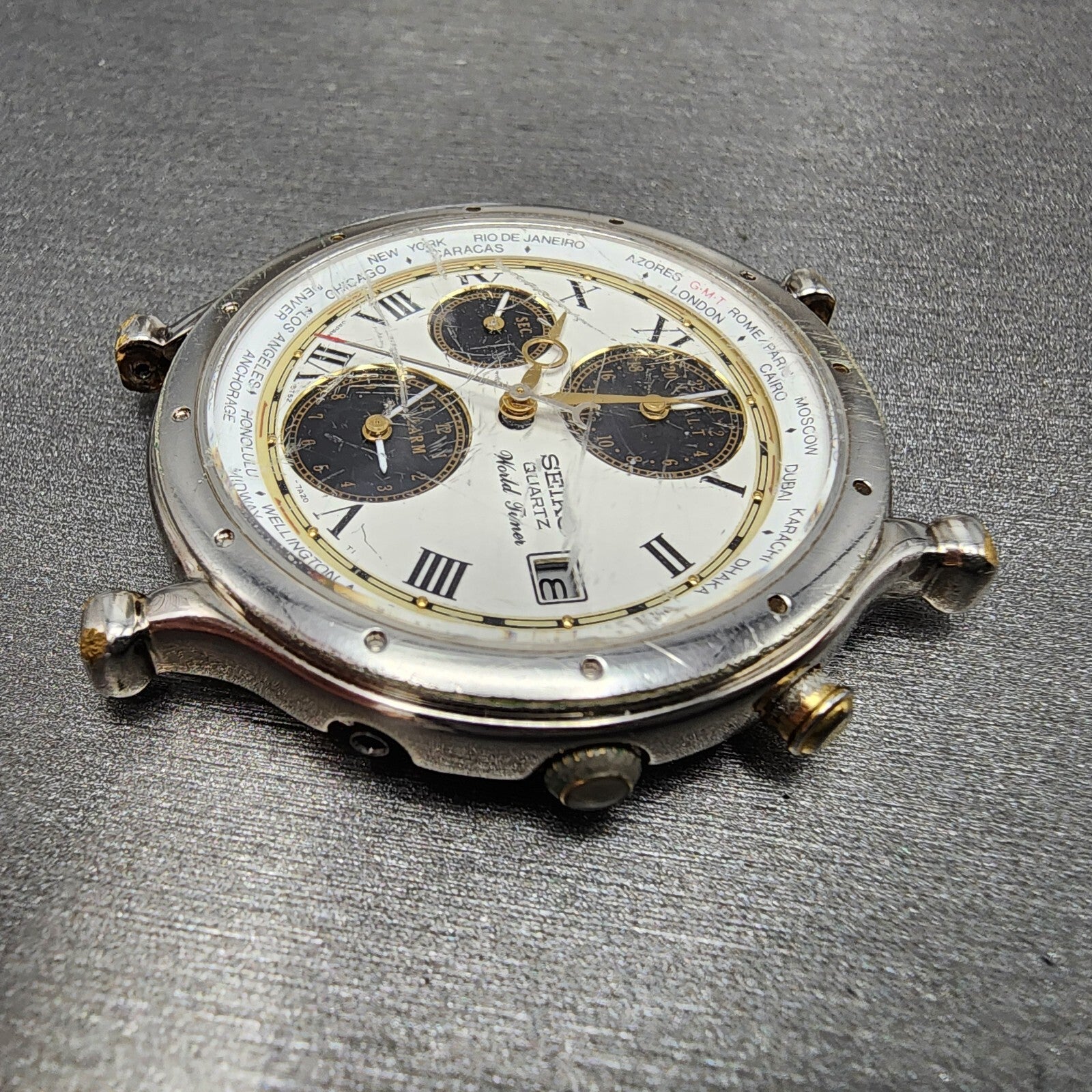 Seiko Age Of Discovery World Time Watch Men 39mm White Dial Steel 5t52-7a10 PART