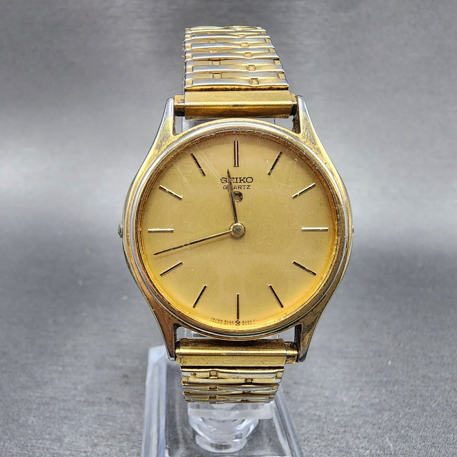 Seiko Alarm Watch Men 32mm Gold Dial Gold Tone Round READ!!!! 5C20-6009 New Batt