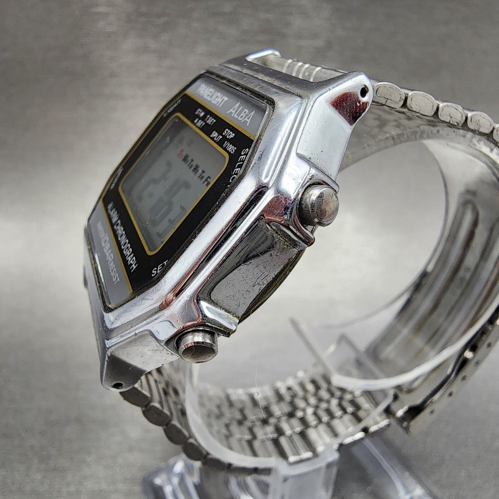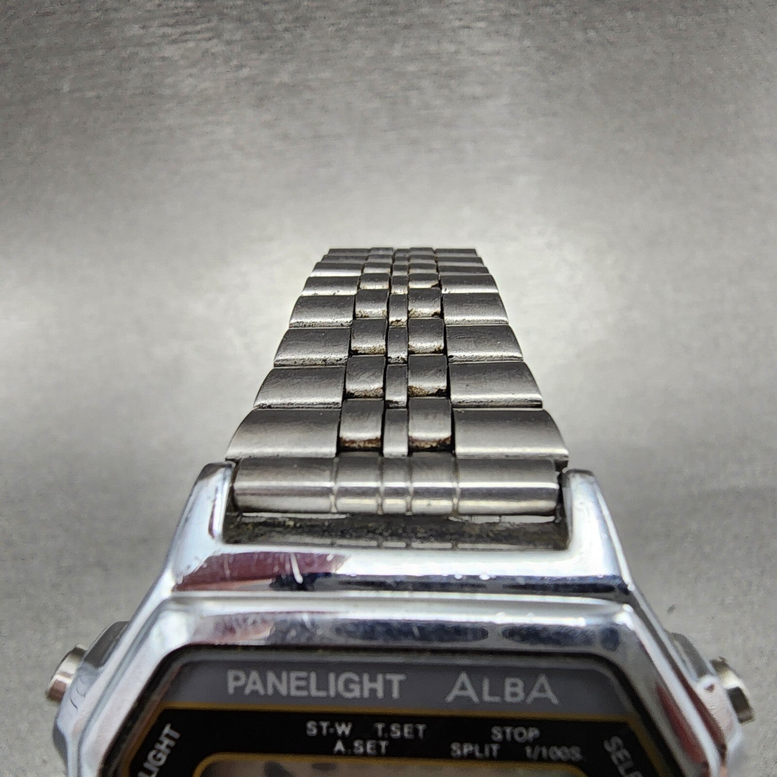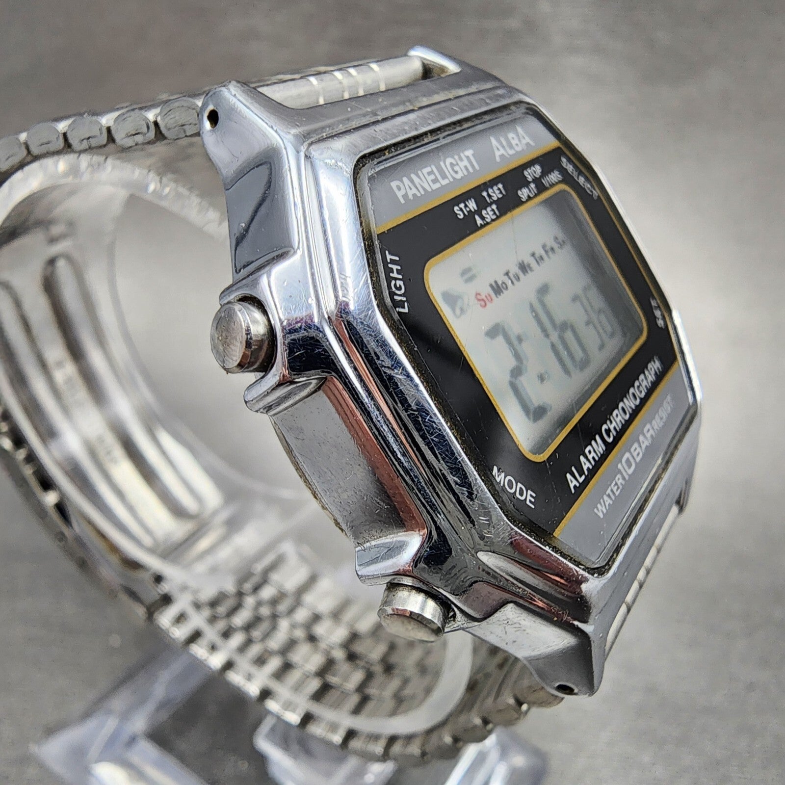 Seiko ALBA Digital Watch Men 36mm Silver Dial Alarm Chrono Y735-4A00 New Battery