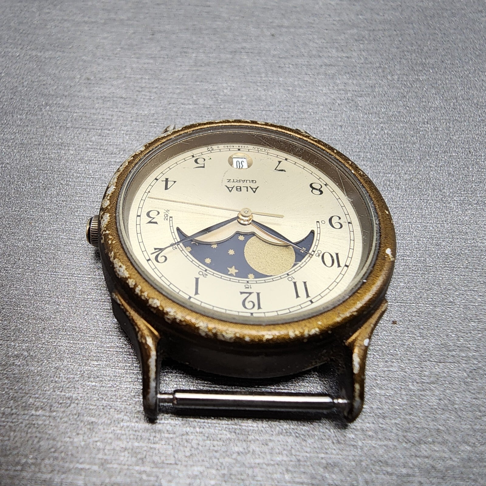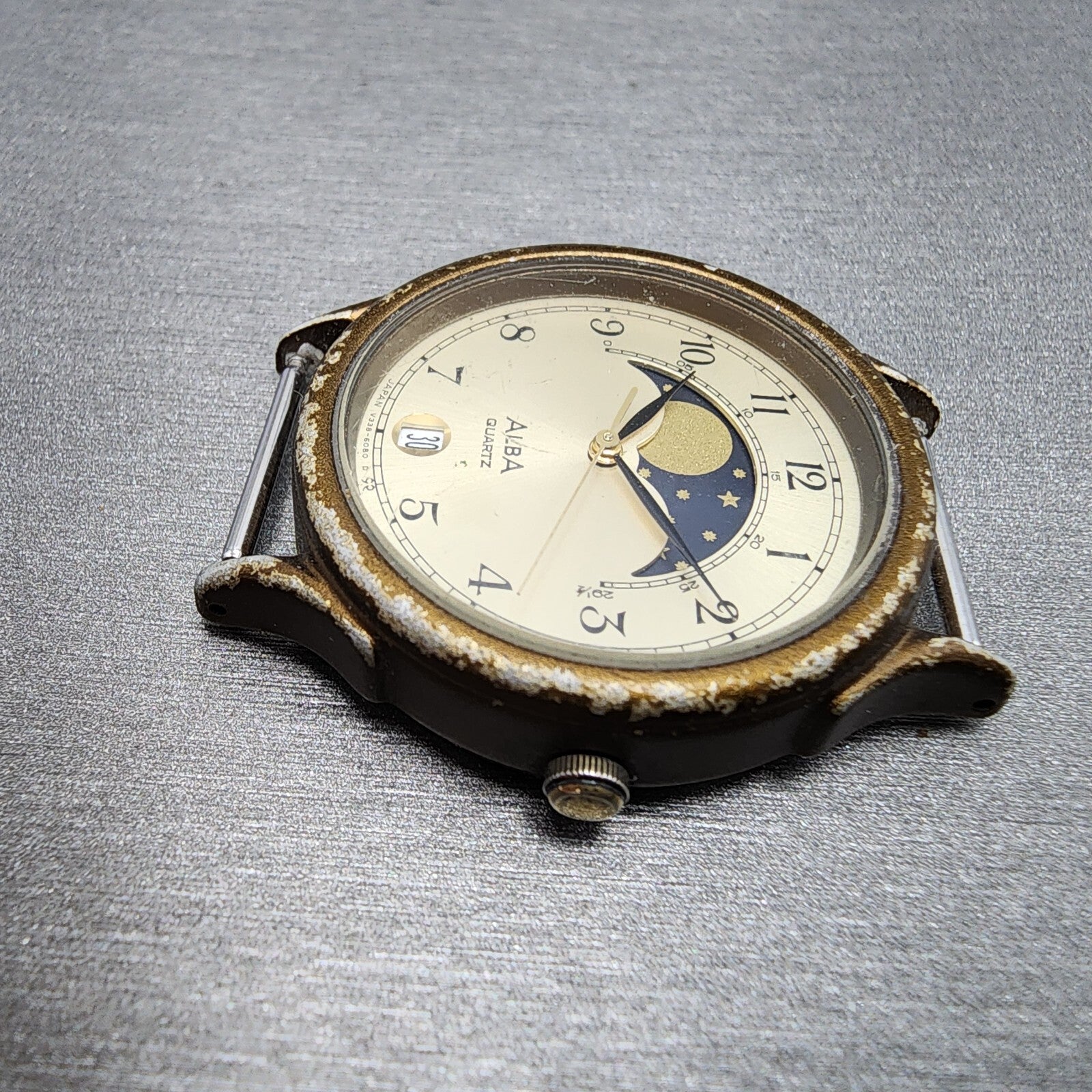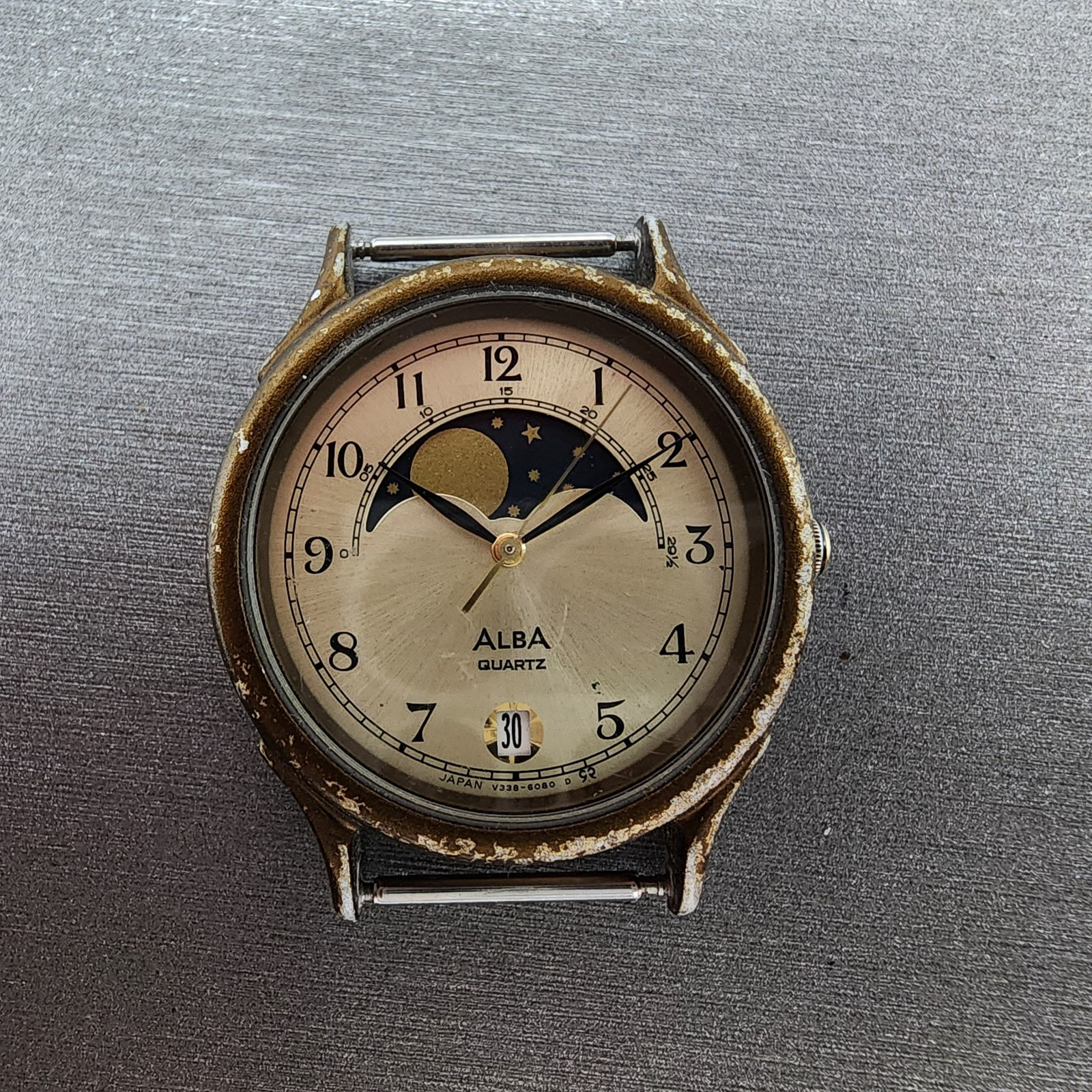Seiko ALBA Moonphase Watch Men 31mm Champange Dial Bronze Tone Round New Battery