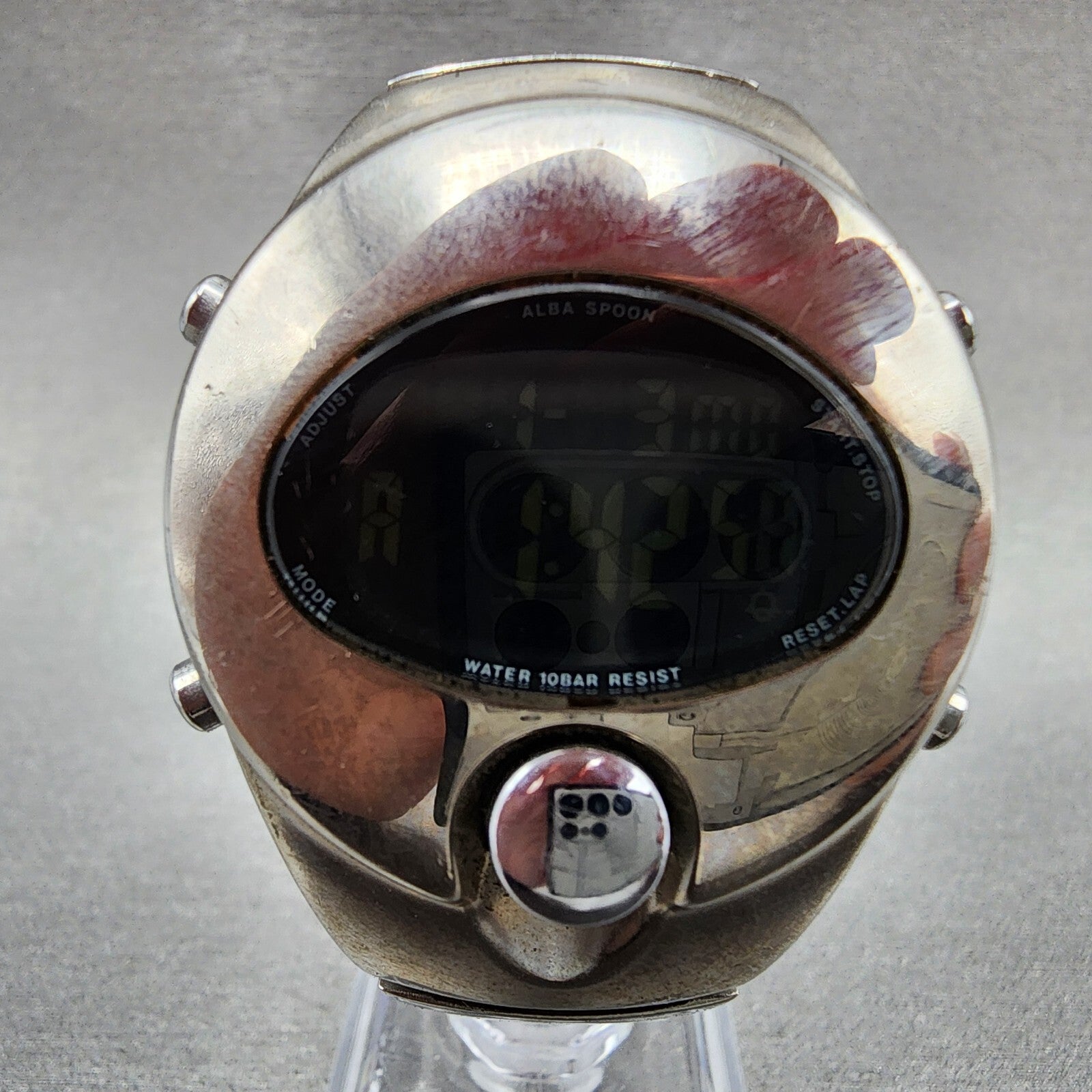 Seiko Alba Spoon Watch Men 36mm Digital Silver Tone W620-4140 New Battery