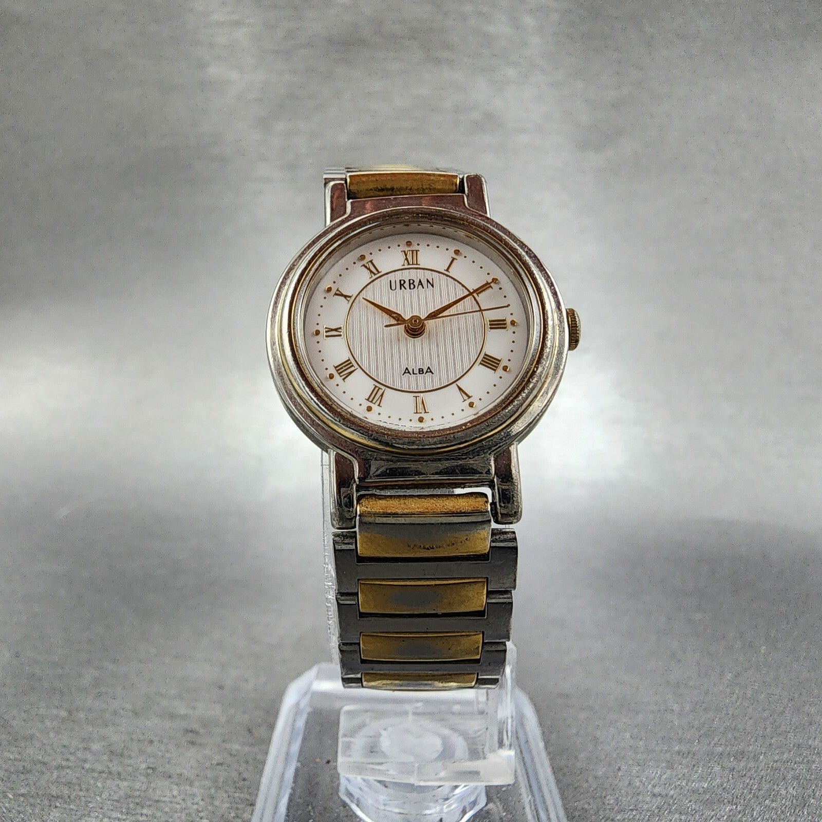 Seiko ALBA URBAN Watch Women 24mm White Dial Two Tone Round V301-6B60 New Batt