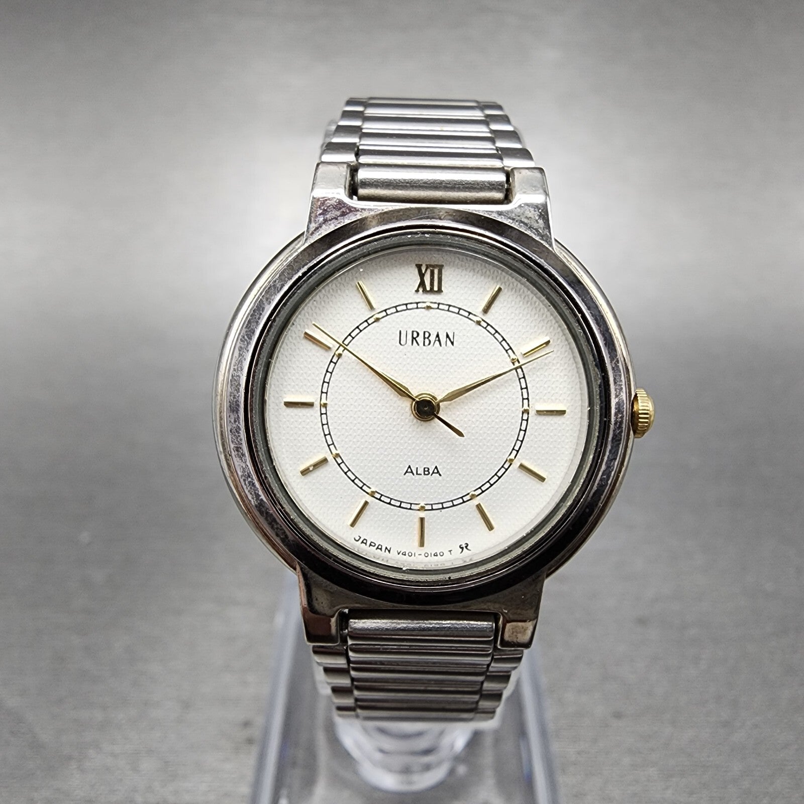 Seiko Alba Urban Watch Women 25mm White Dial Silver Tone Round NewBatt V401-0050