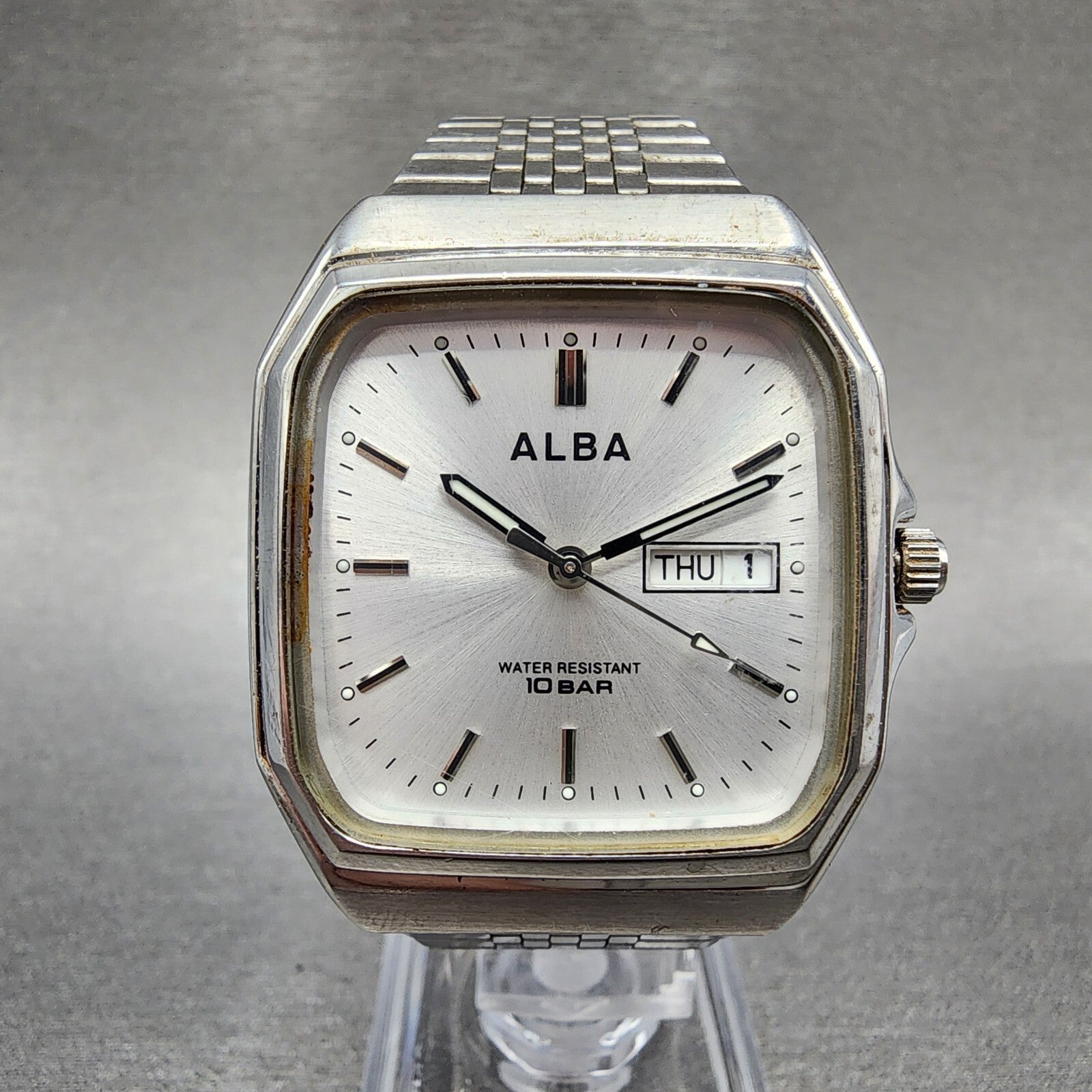 Seiko Alba Watch Men 33mm Silver Dial Silver Tone Daydate 7n33-k003 New Battery