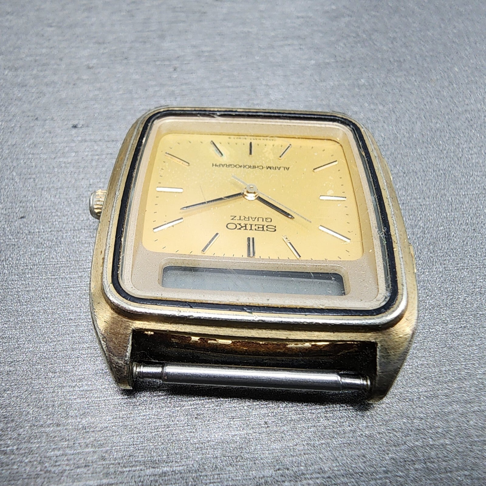 Seiko Analog Digital Watch Men 31mm Gold Dial Gold Tone H357-5029 PARTS