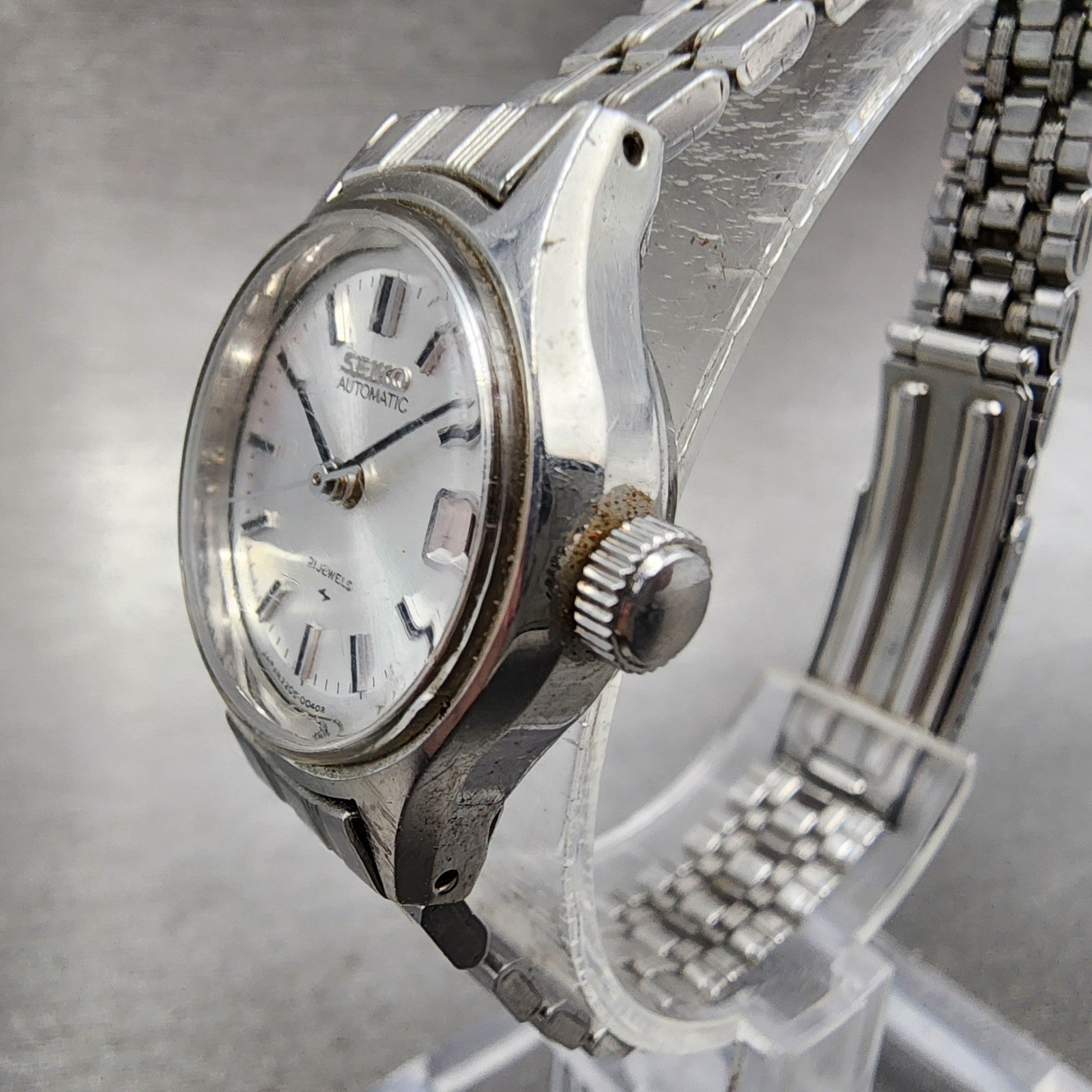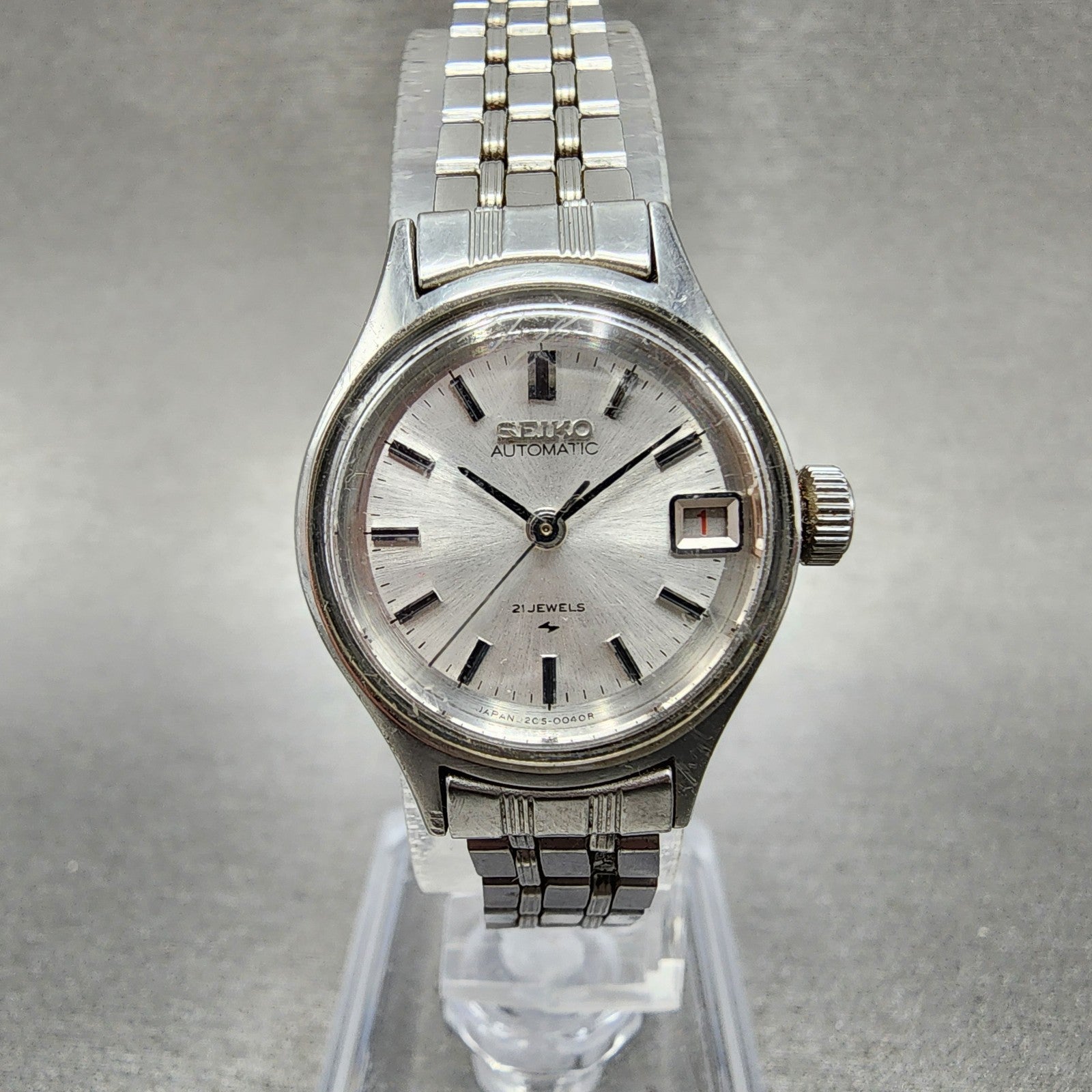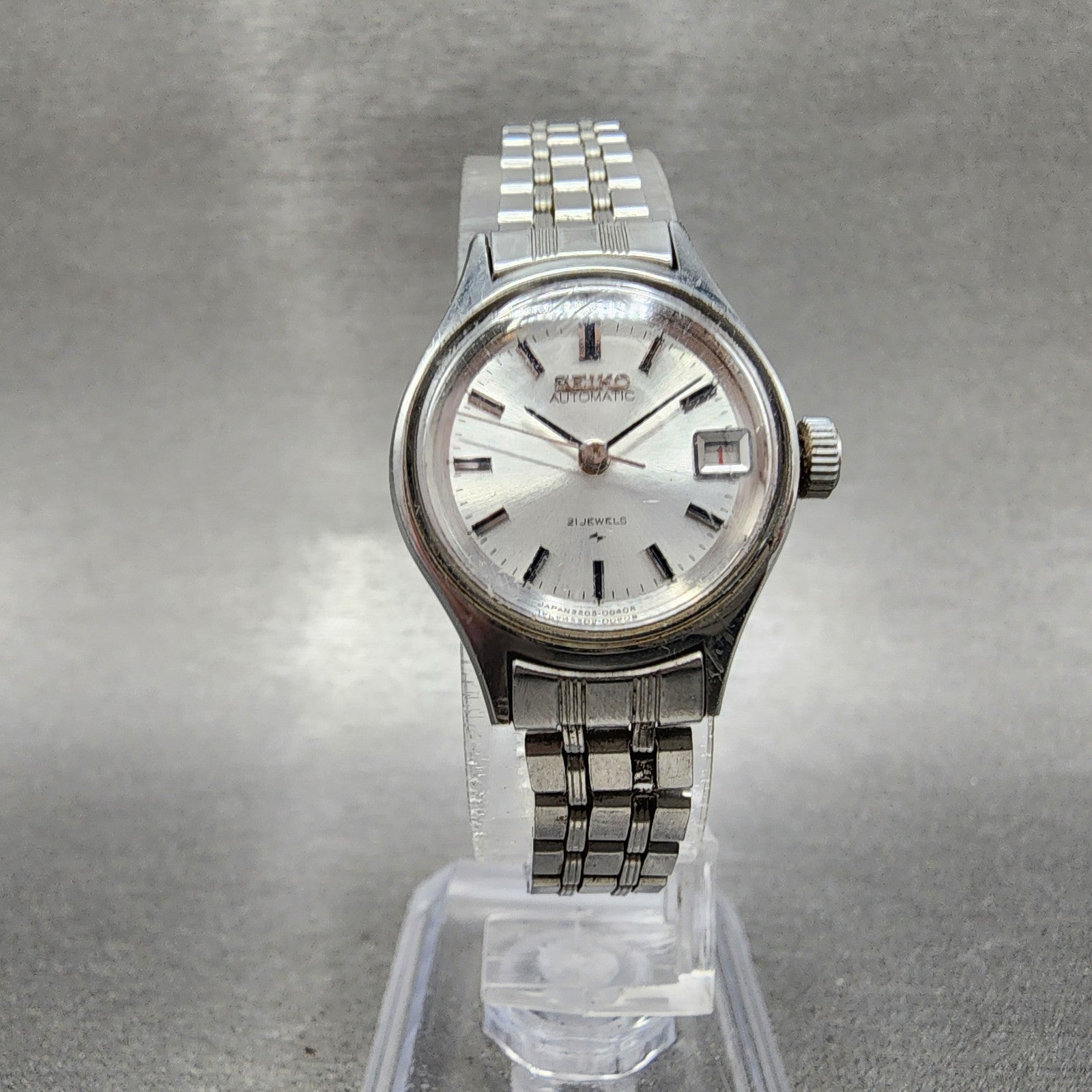 Seiko Automatic Watch Women 22mm Silver Dial Silver Tone Date 2205-0040 Runs