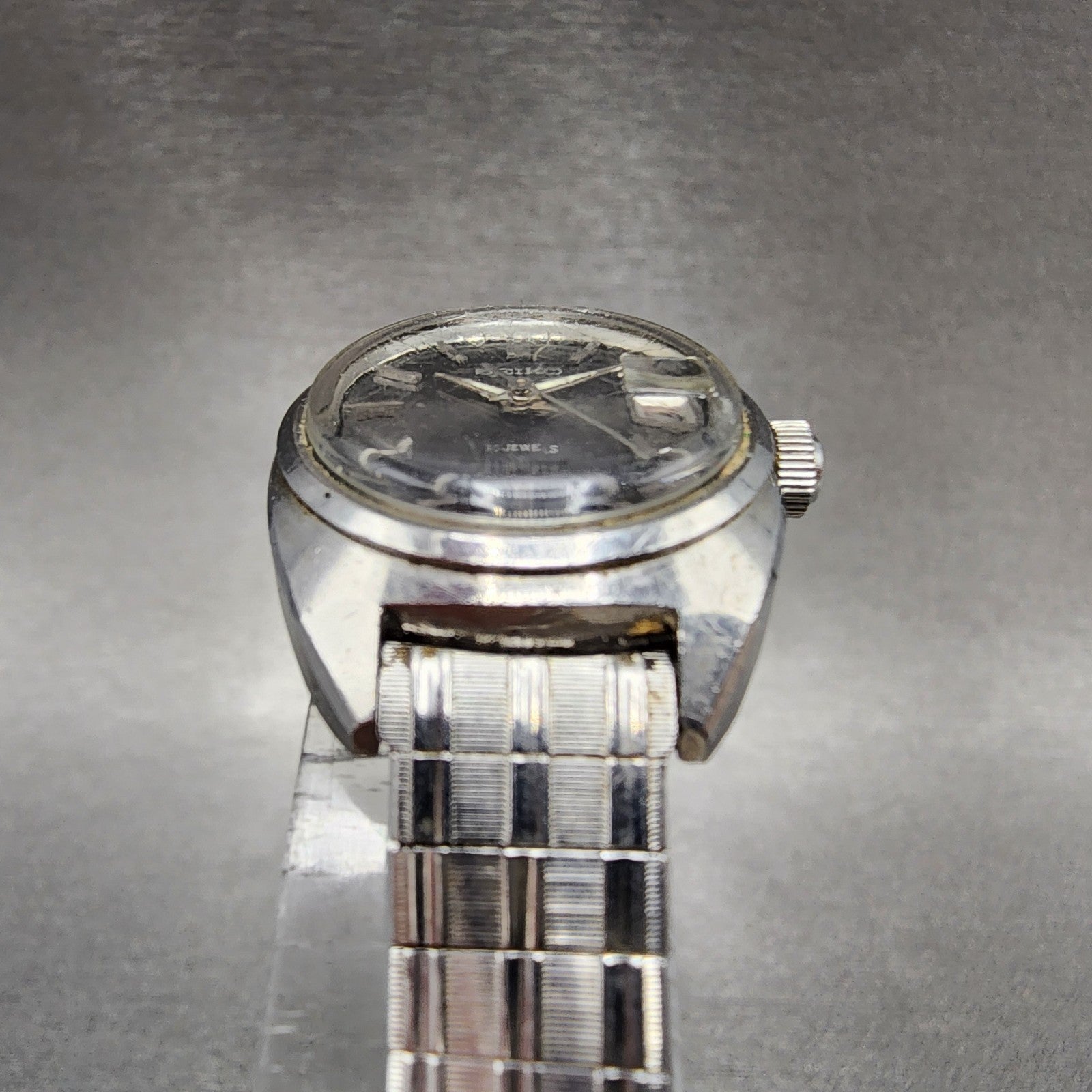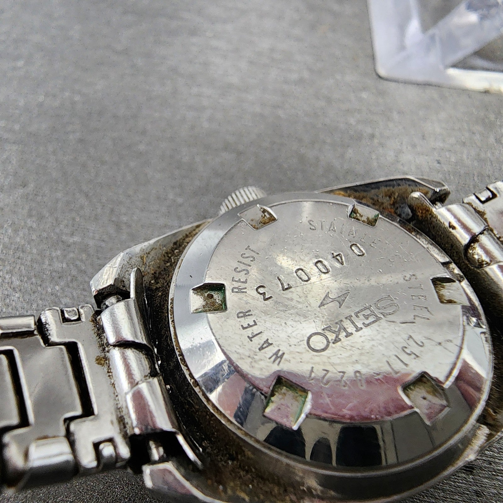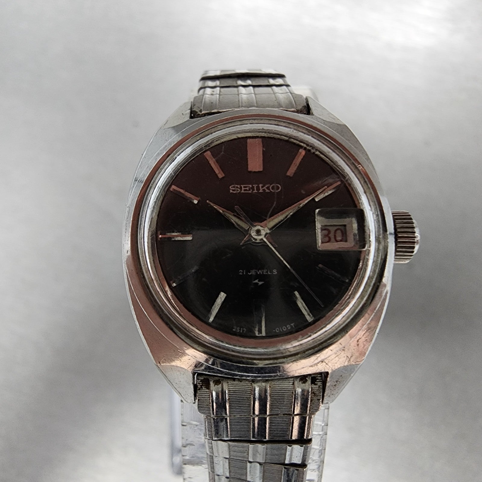 Seiko Automatic Watch Women 23mm Black Dial Silver Tone Date 2517-0221 PARTS
