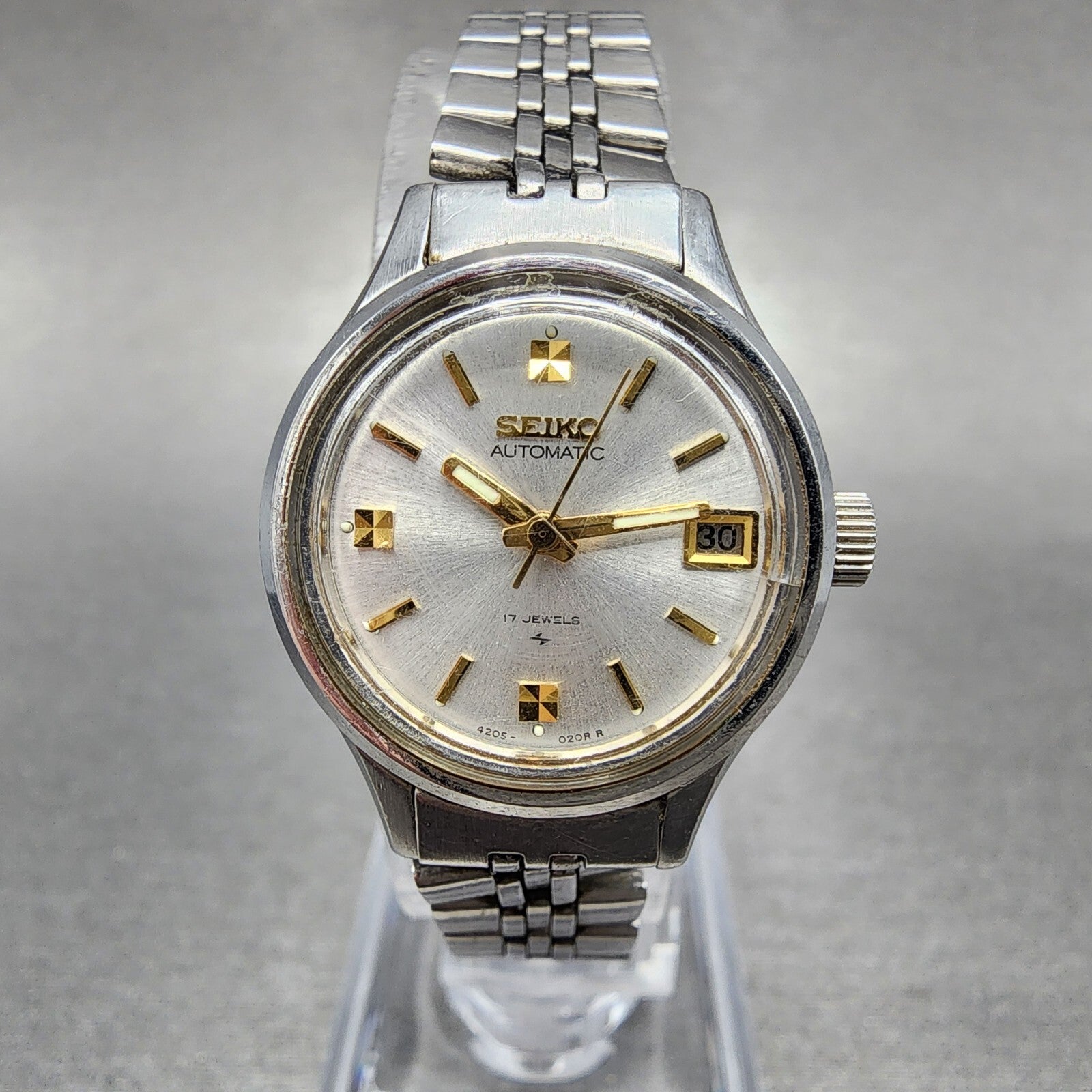Seiko Automatic Watch Women 23mm Silver Dial Silver Tone Date 4205-0160 Runs