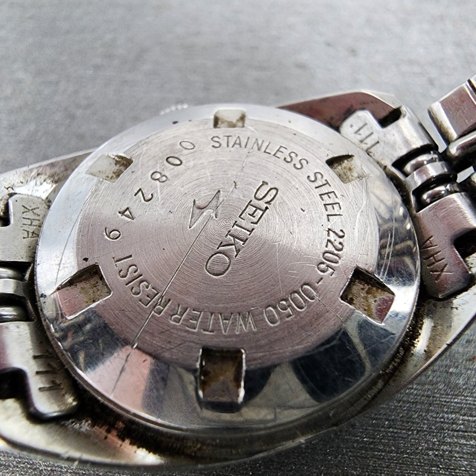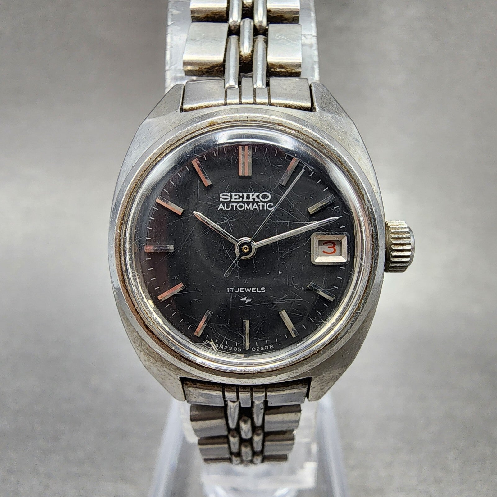 Seiko Automatic Watch Women 24mm Black Dial Silver Tone Date 2205-0050 Runs