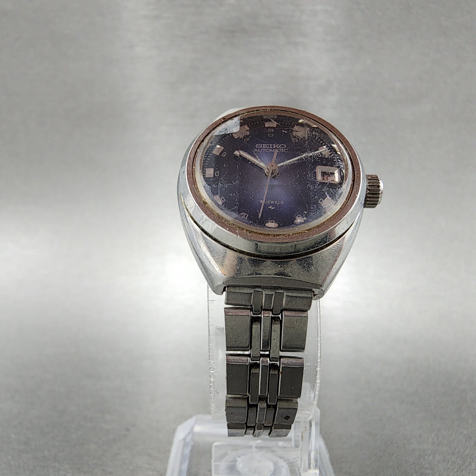 Seiko Automatic Watch Women 25mm Blue Dial Silver Tone Date 2205-0520 Runs