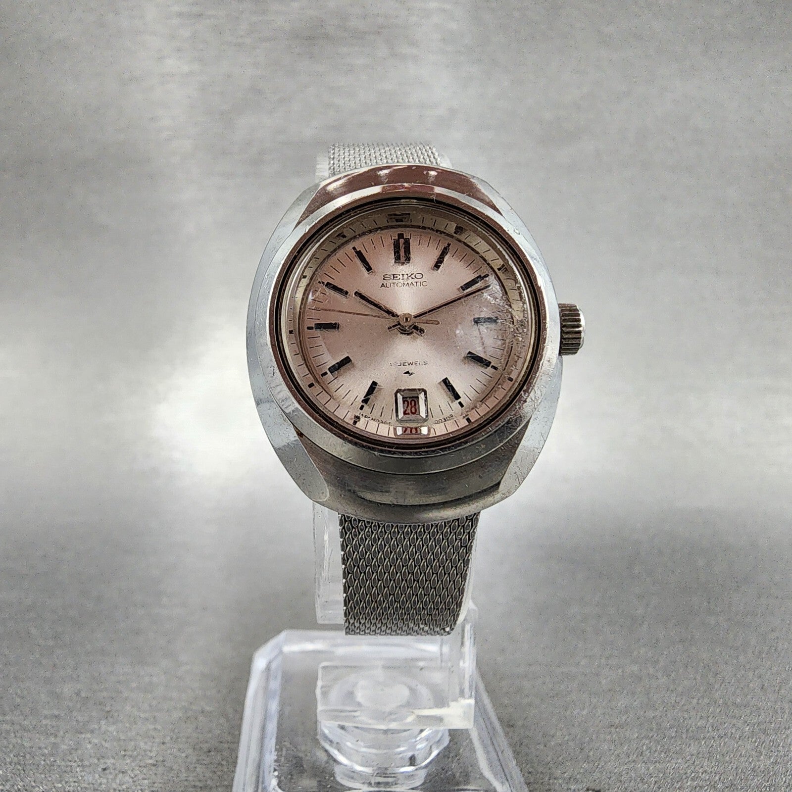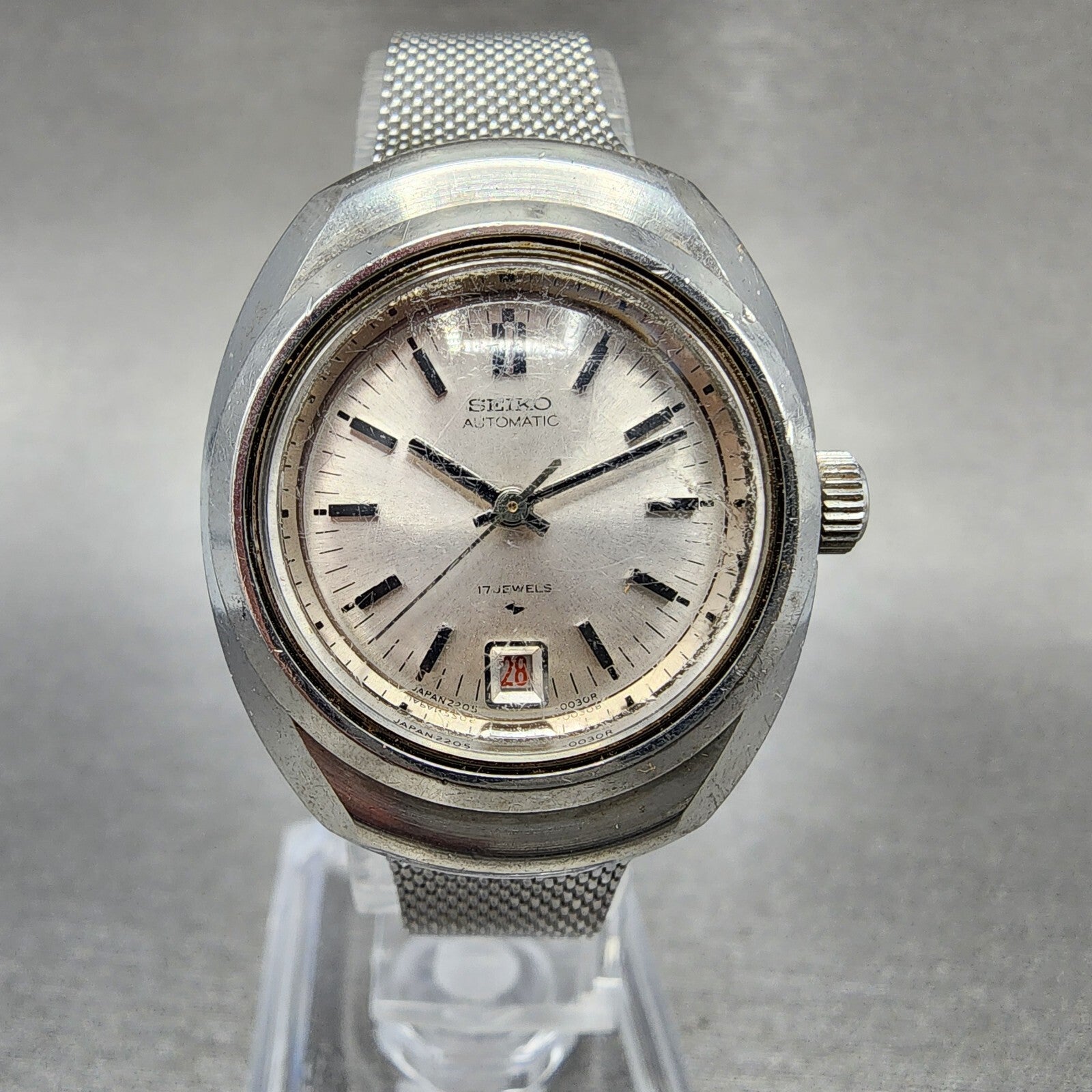 Seiko Automatic Watch Women 28mm Silver Dial Silver Tone Date 2205-0030 Runs