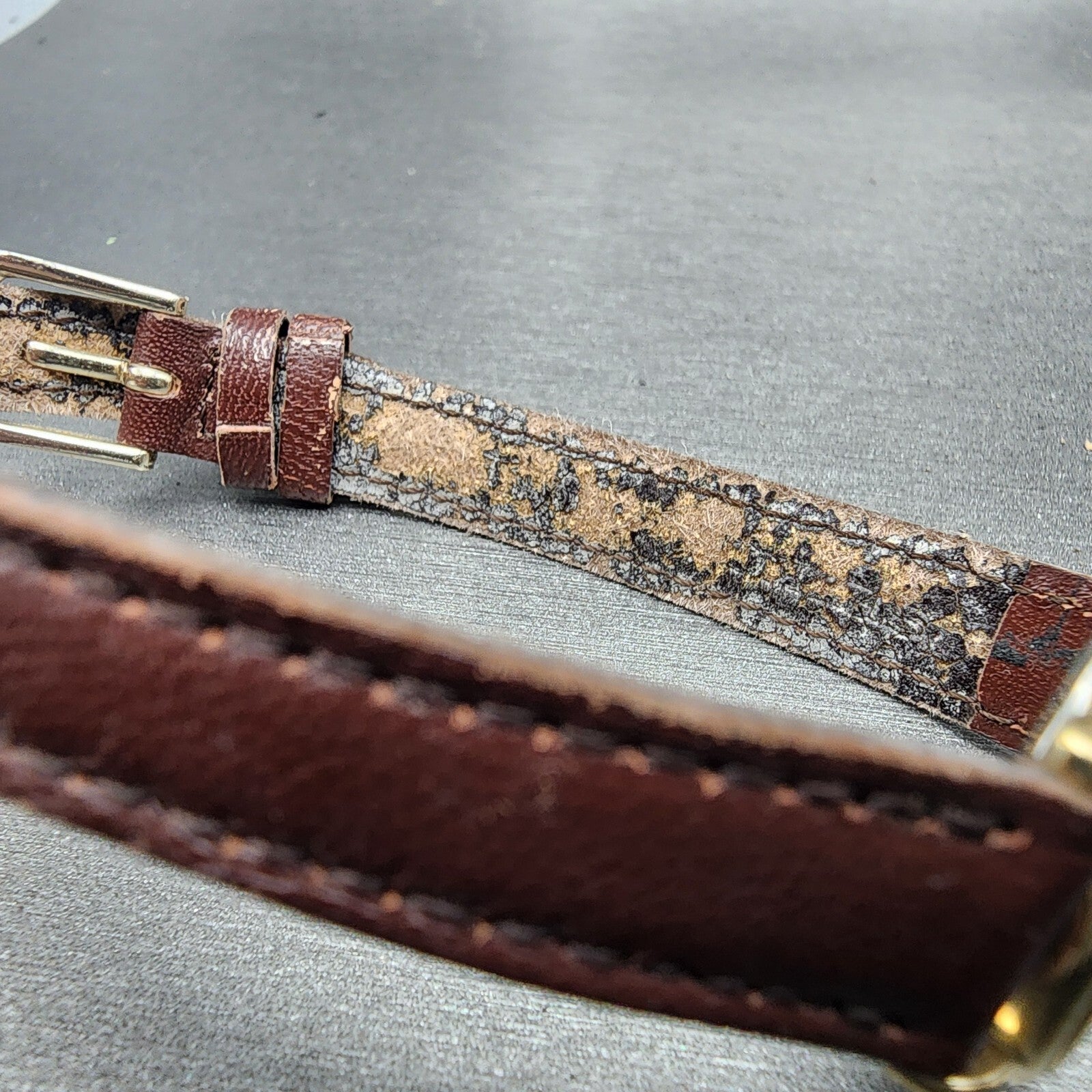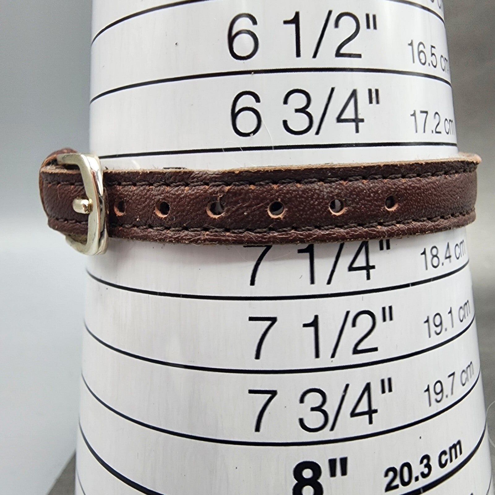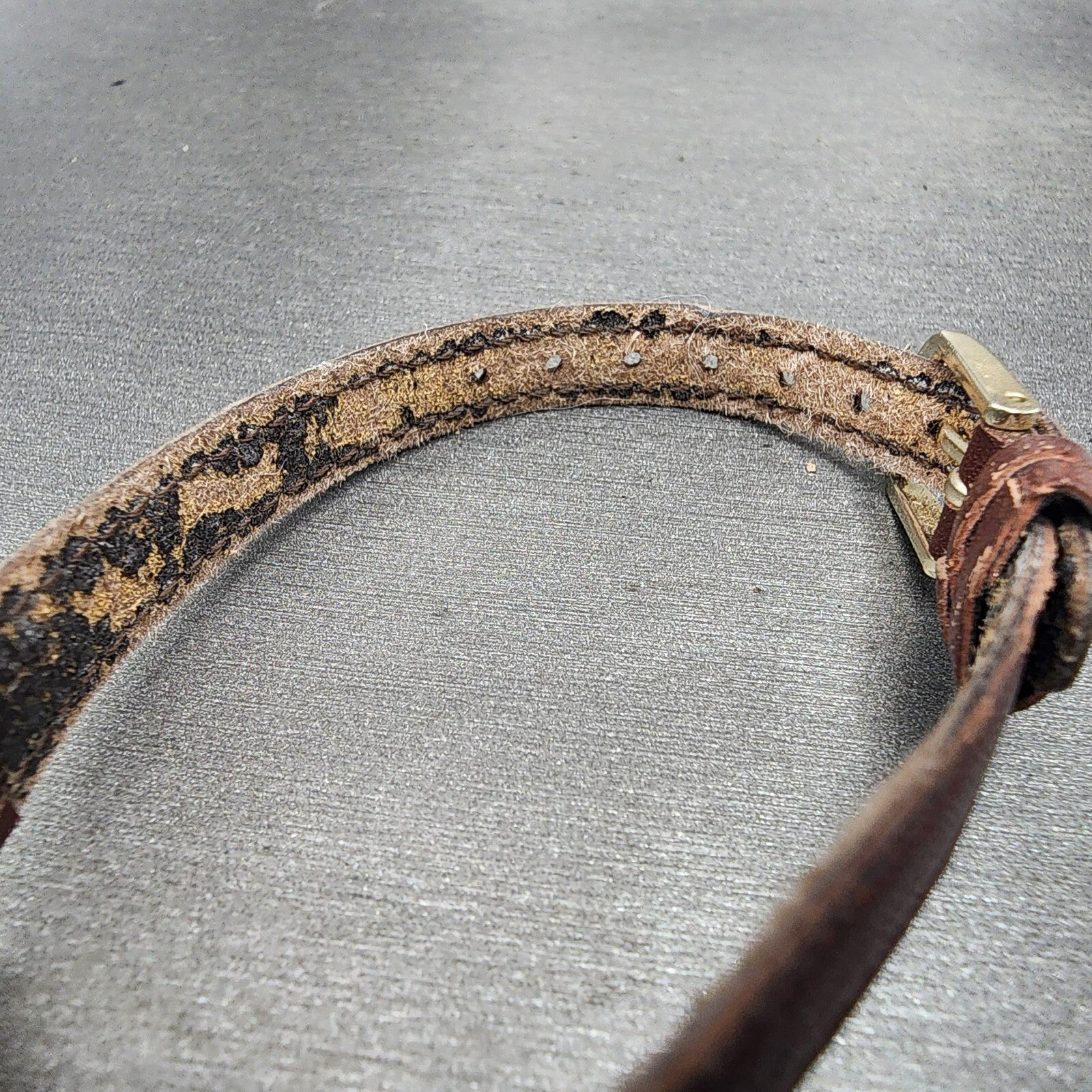 This watch has been used but is in good working condition. There is scratches on the watch. please refer to pictures. the inside of the band is worn and peeling.