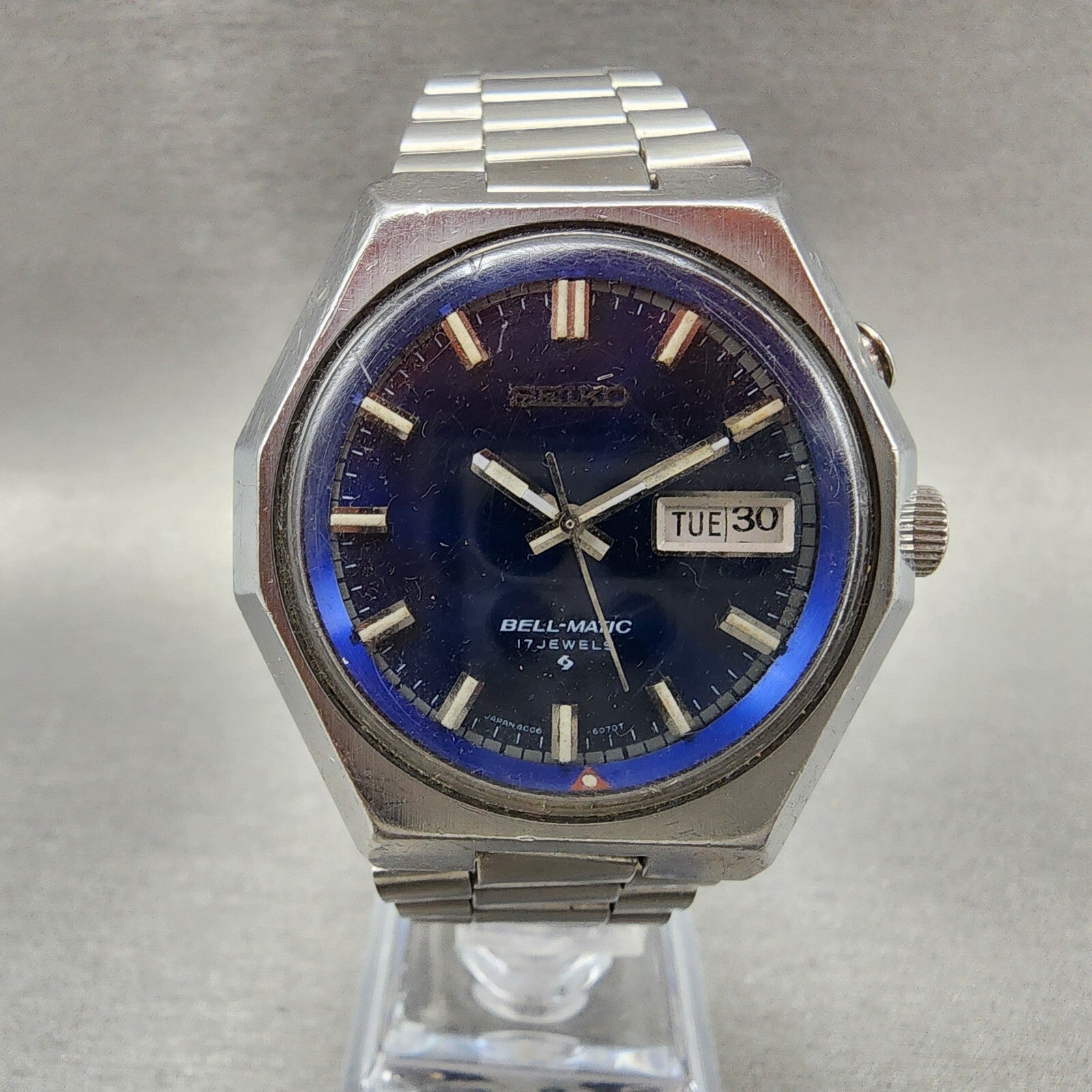 Seiko Bell Matic Watch Men 40mm Blue Dial Steel Daydate Octagon 4006-6059 Runs