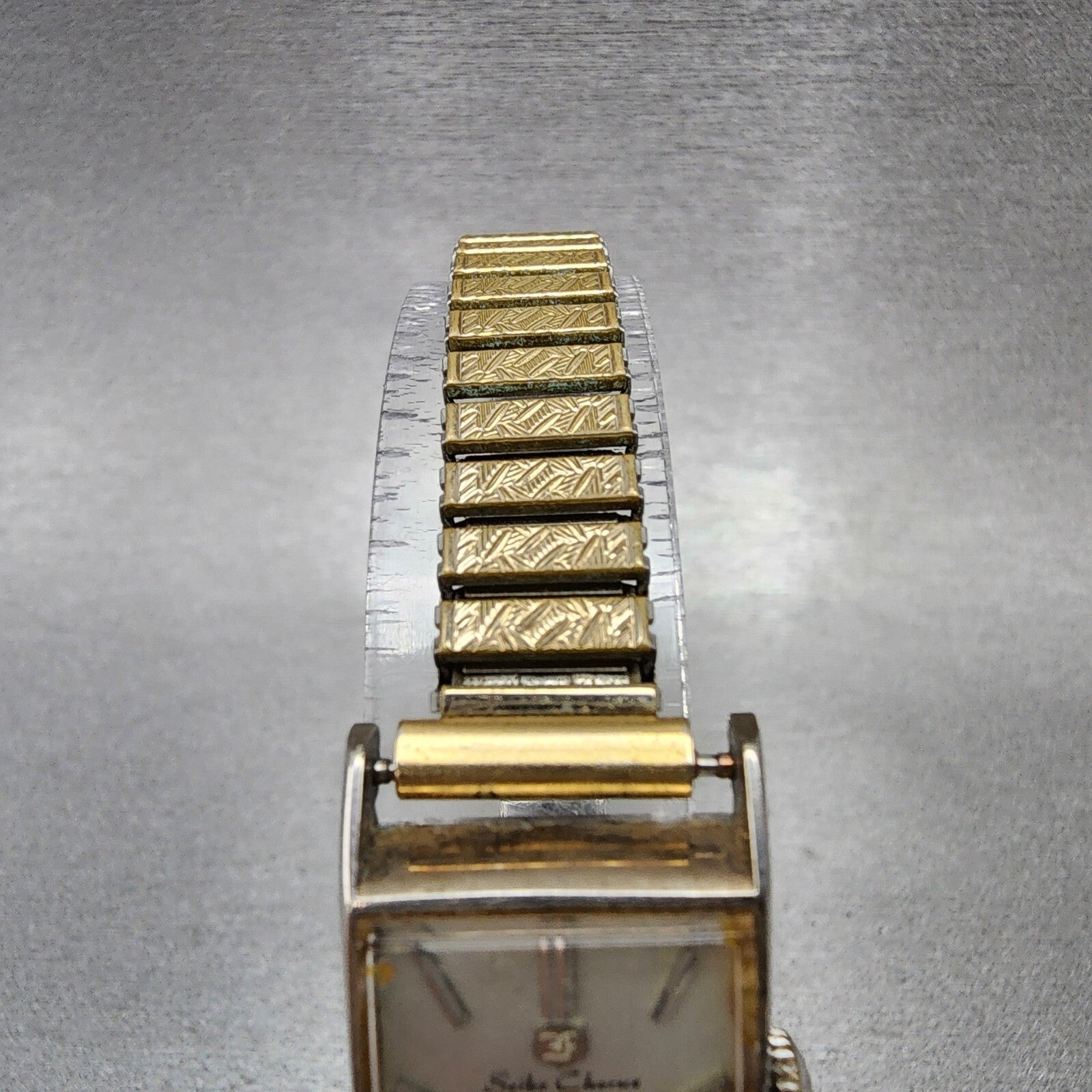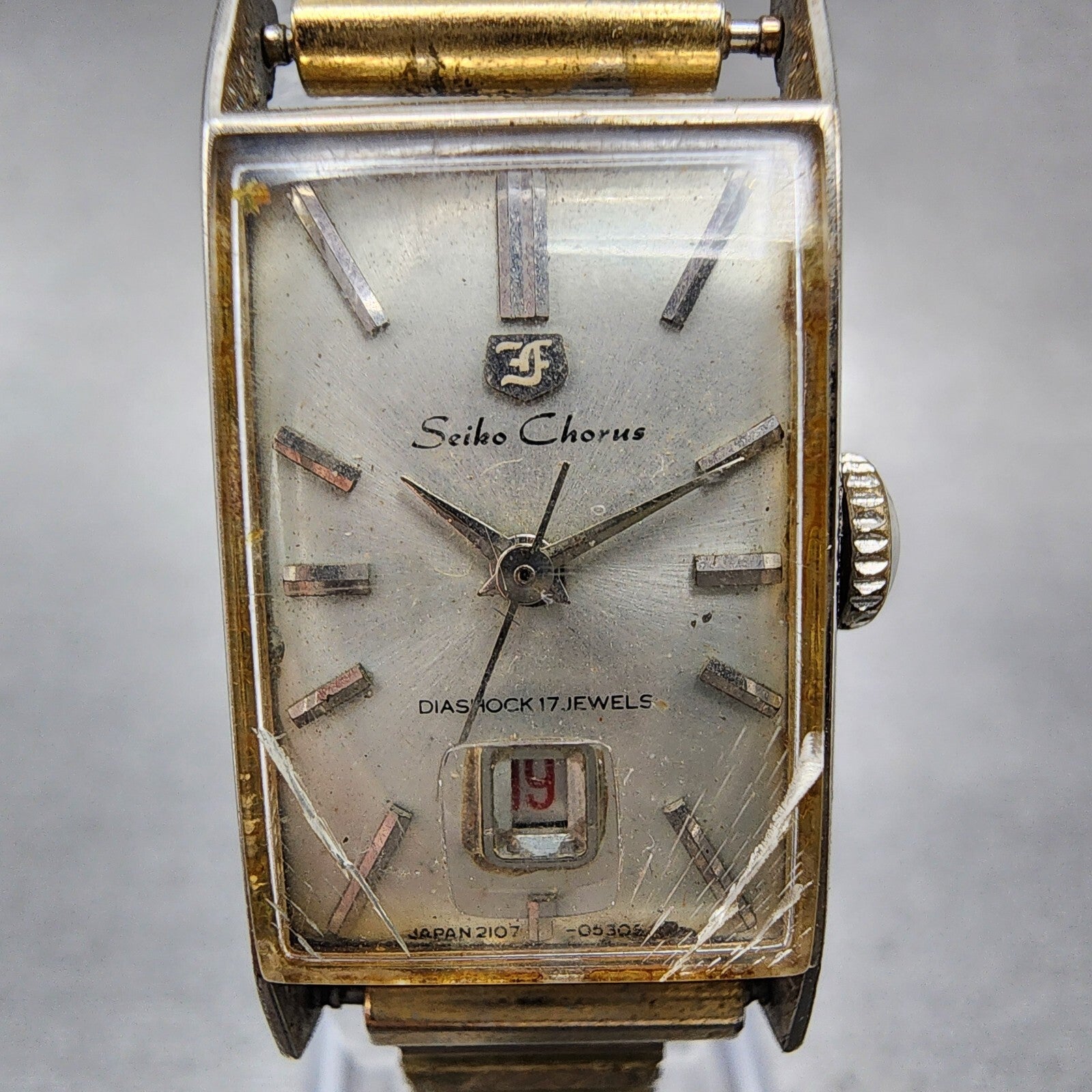 Seiko Chorus Tank Watch Women 17mm Silver Dial Gold Tone Date Manual 2107-3140