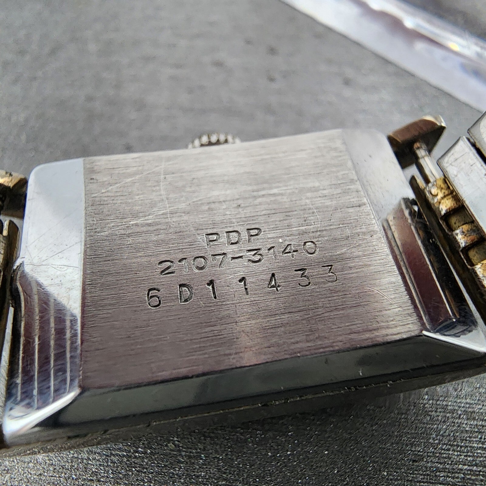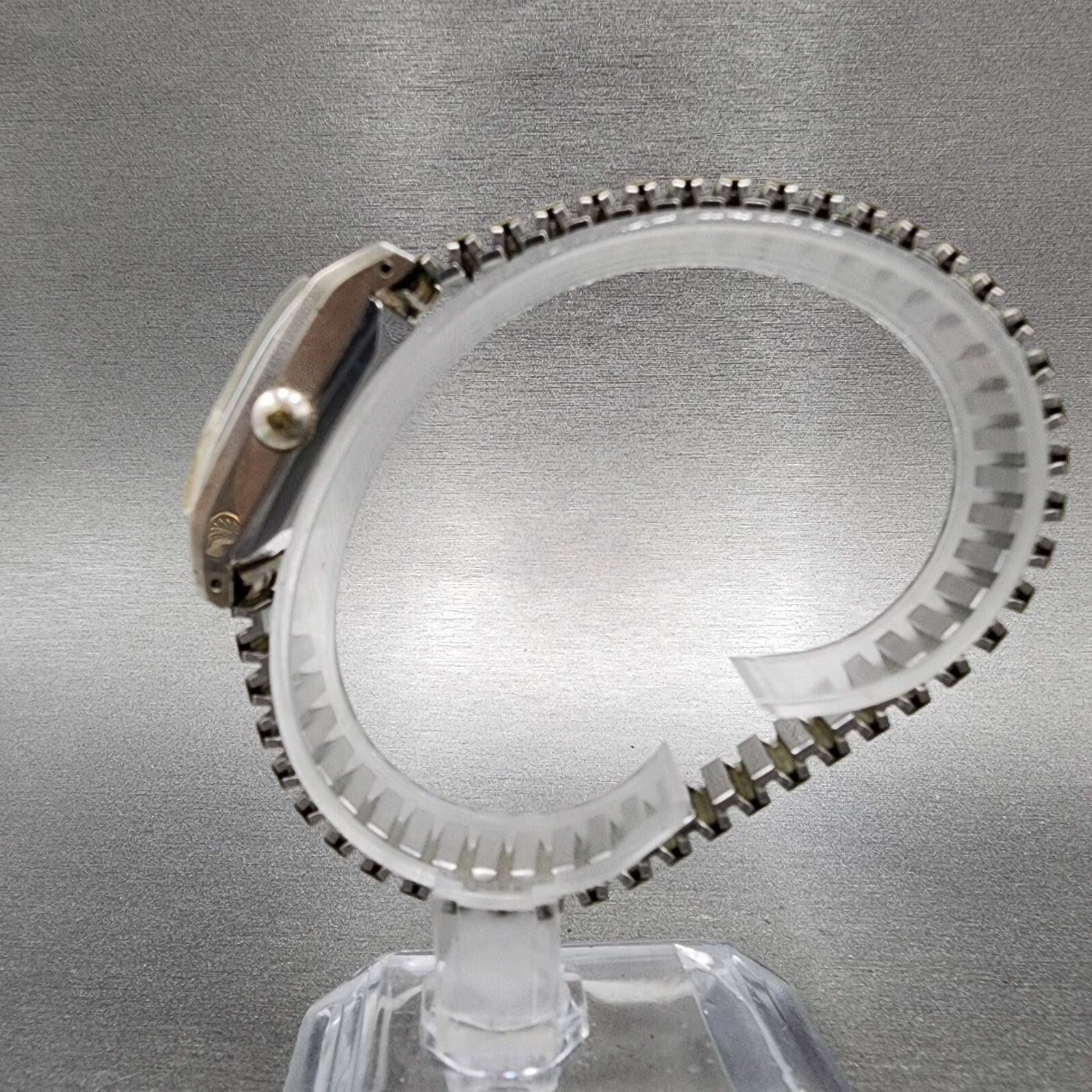 CRYSTAL IS CRACKED AT BOTTOM CORNERS. This watch has been worn but is in good working condition.