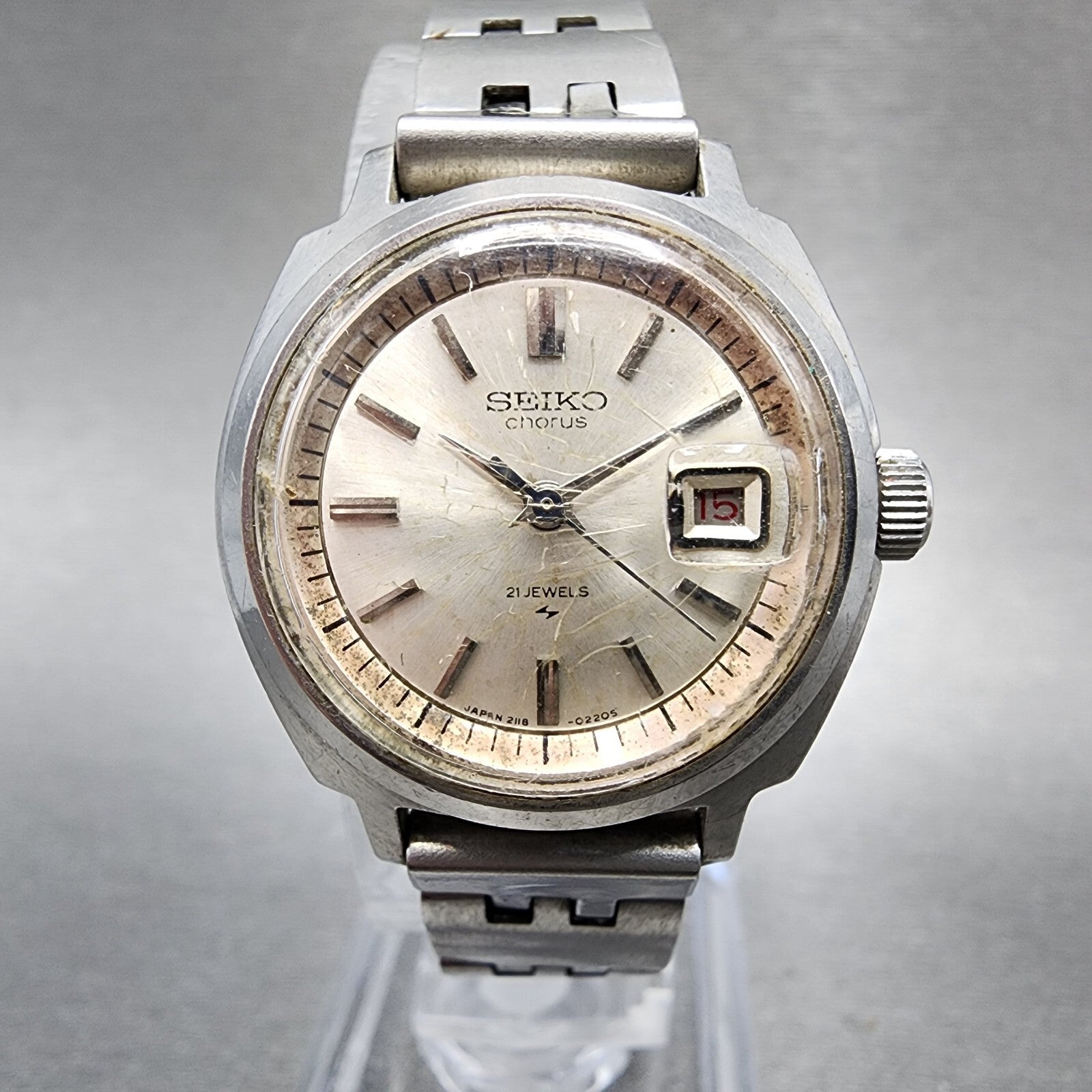 Seiko Chorus Watch Women 25mm Silver Dial Silver Tone Date Manual 2118-0260 Runs