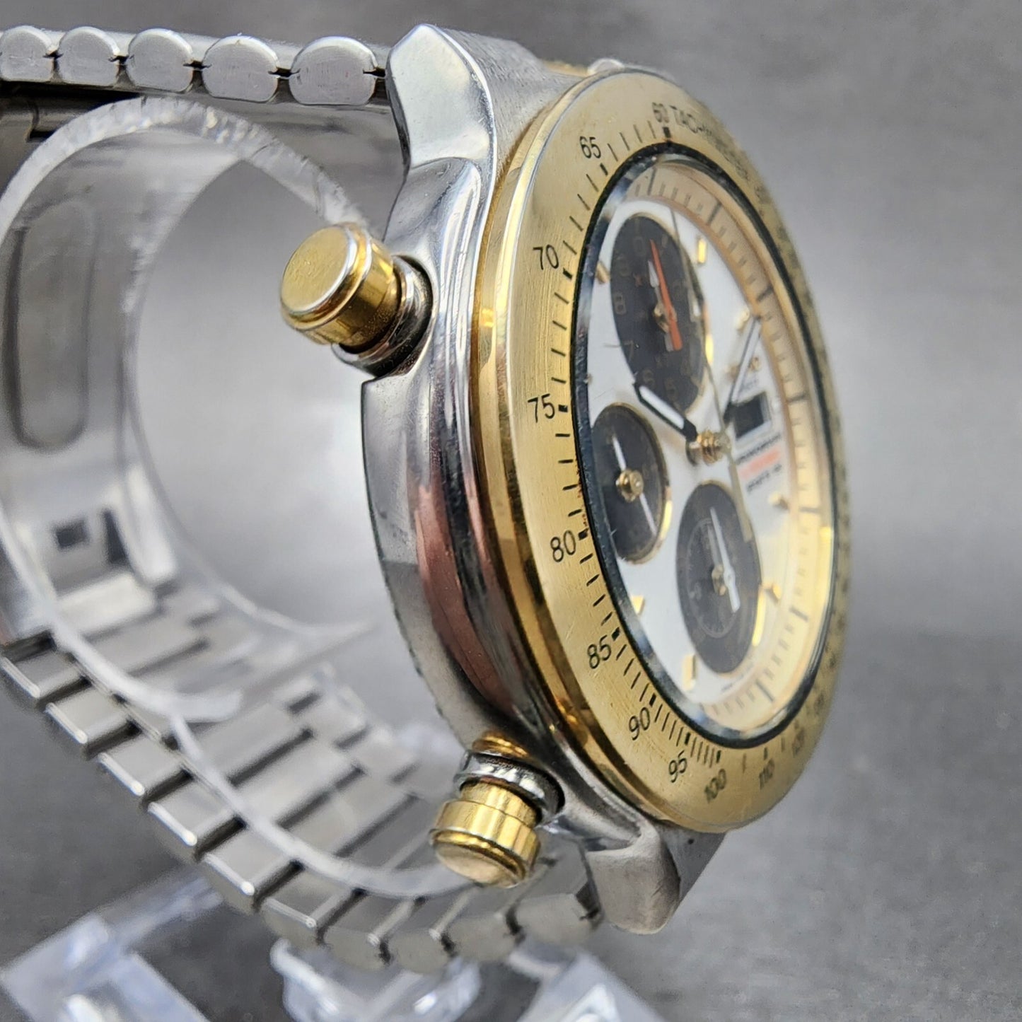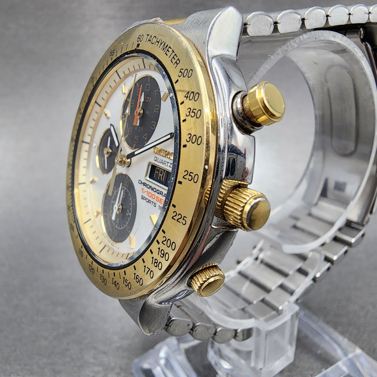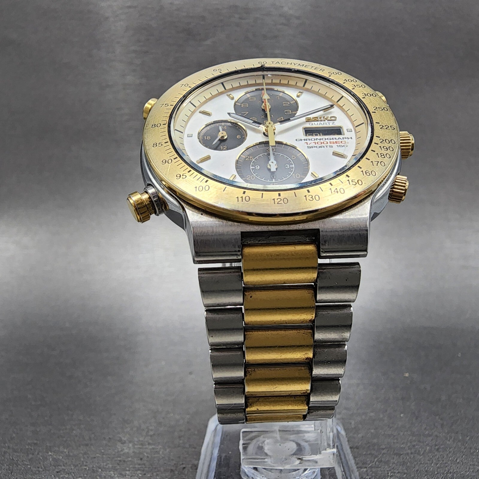 Seiko Chronograph Sports 150 Watch Men 40mm White Dial Two Tone 7t59-6a00 Newbat