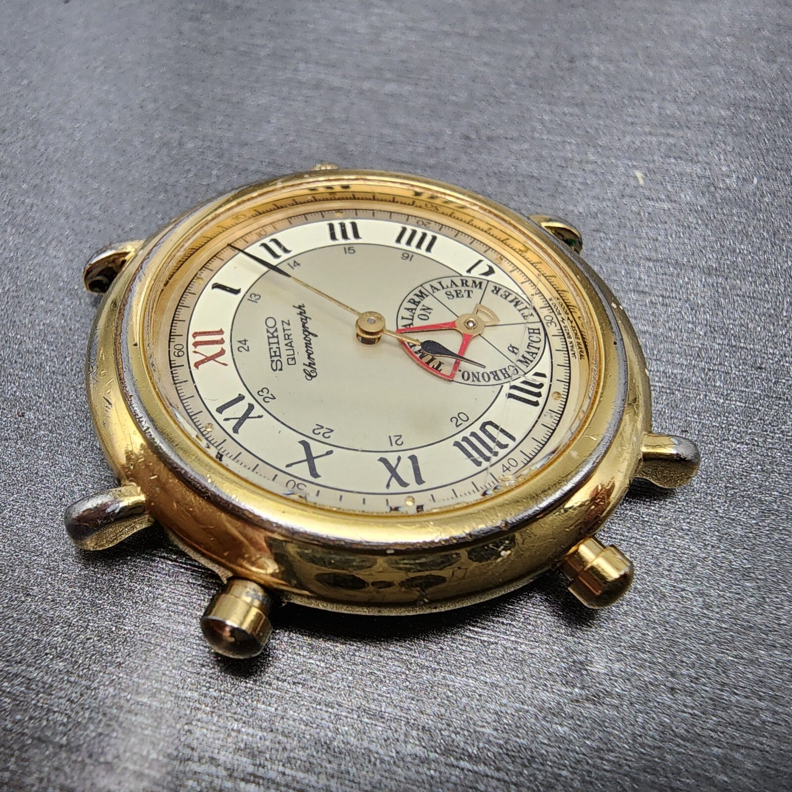 MOVEMENT IS WORKING BUT BUTTONS ON THE CASE DO NOT WORK SOLD AS IS NO RETURNS. This watch has been worn but is in good working condition.