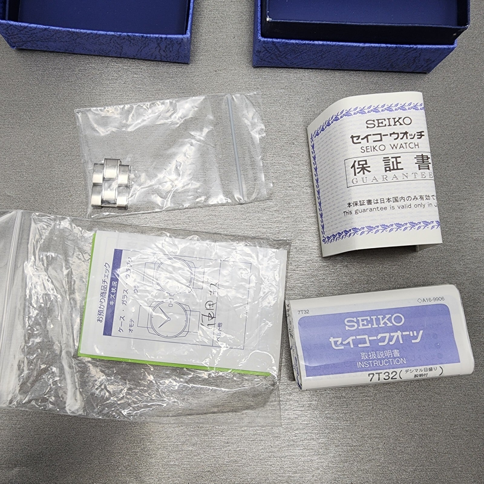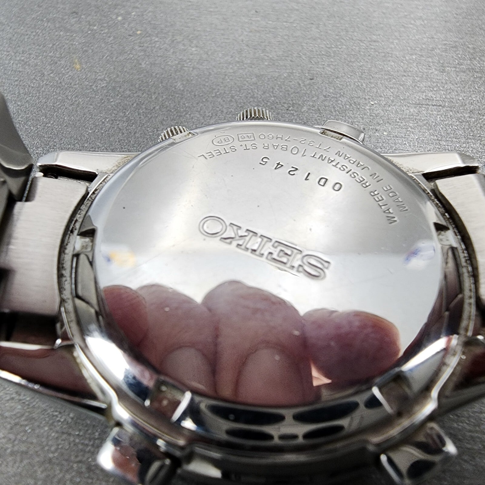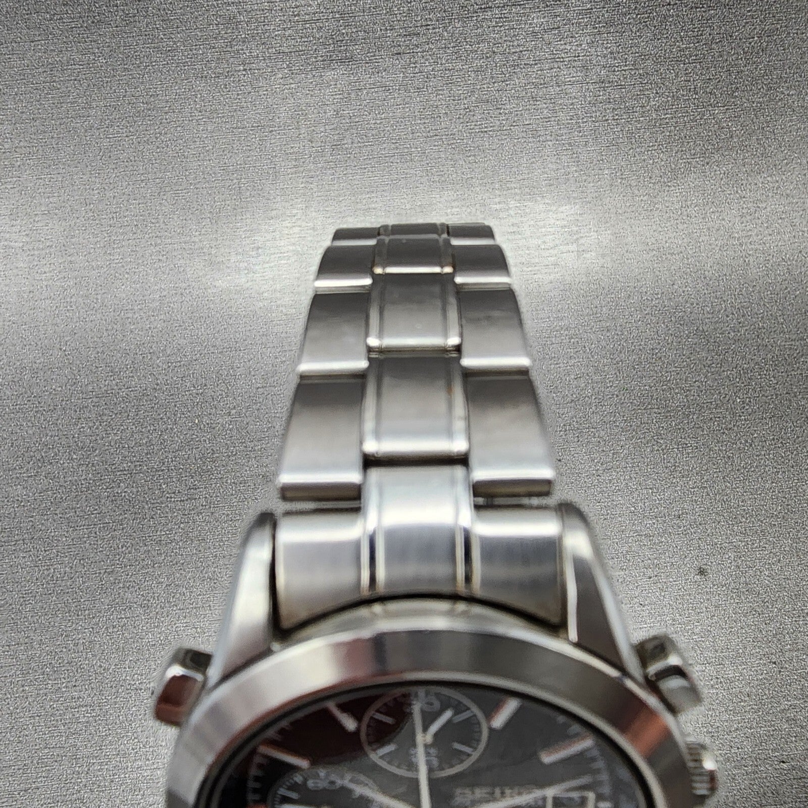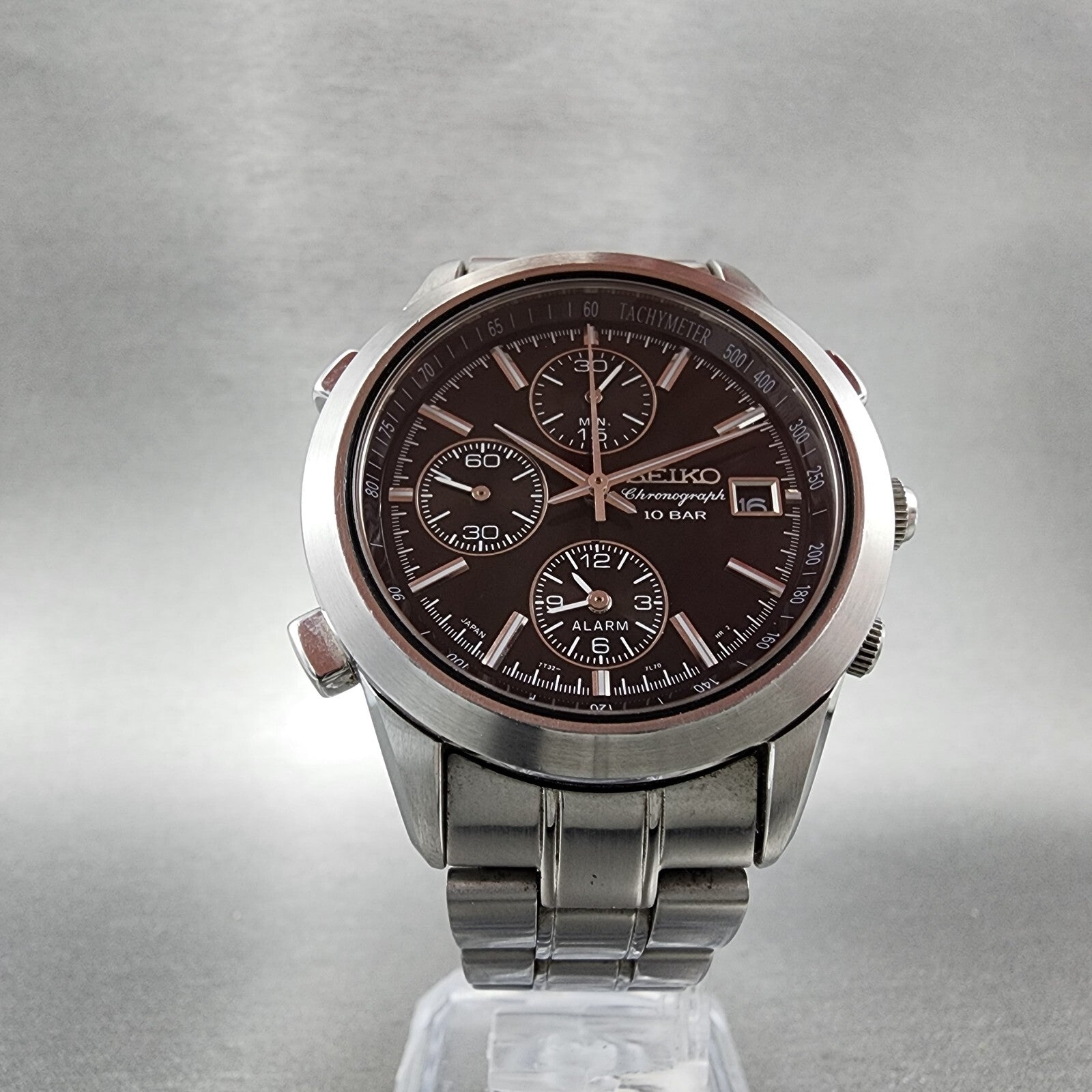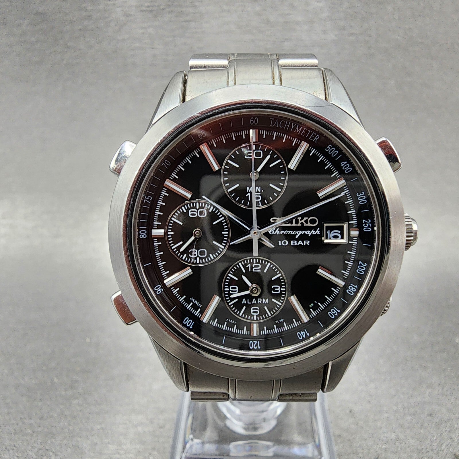 Seiko Chronograph Watch Men 37mm Black Dial Steel Date Alarm Round New Battery