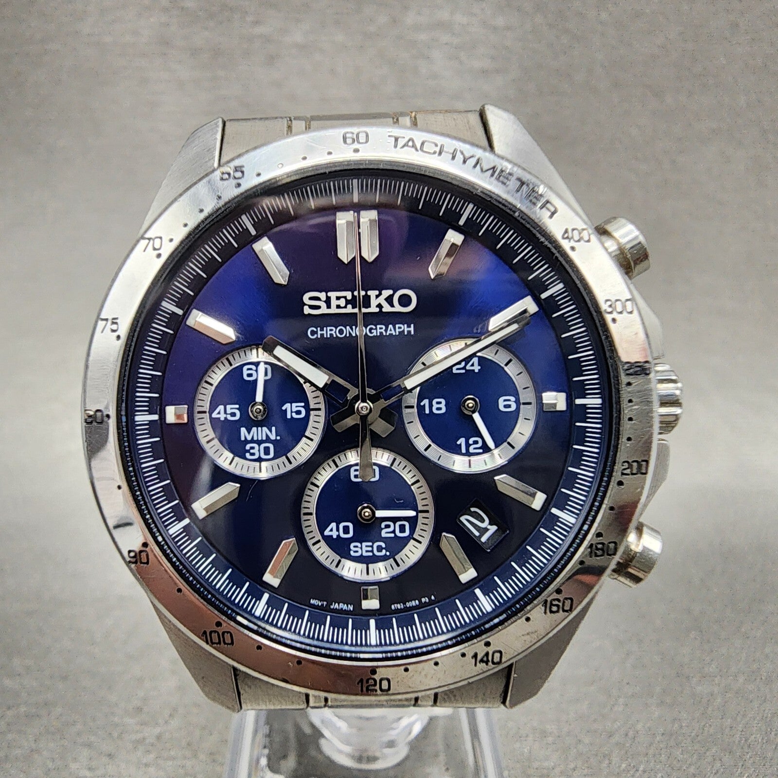 Seiko Chronograph Watch Men 40mm Blue Dial Silver Tone Date 8t63-00d0 NewBattery