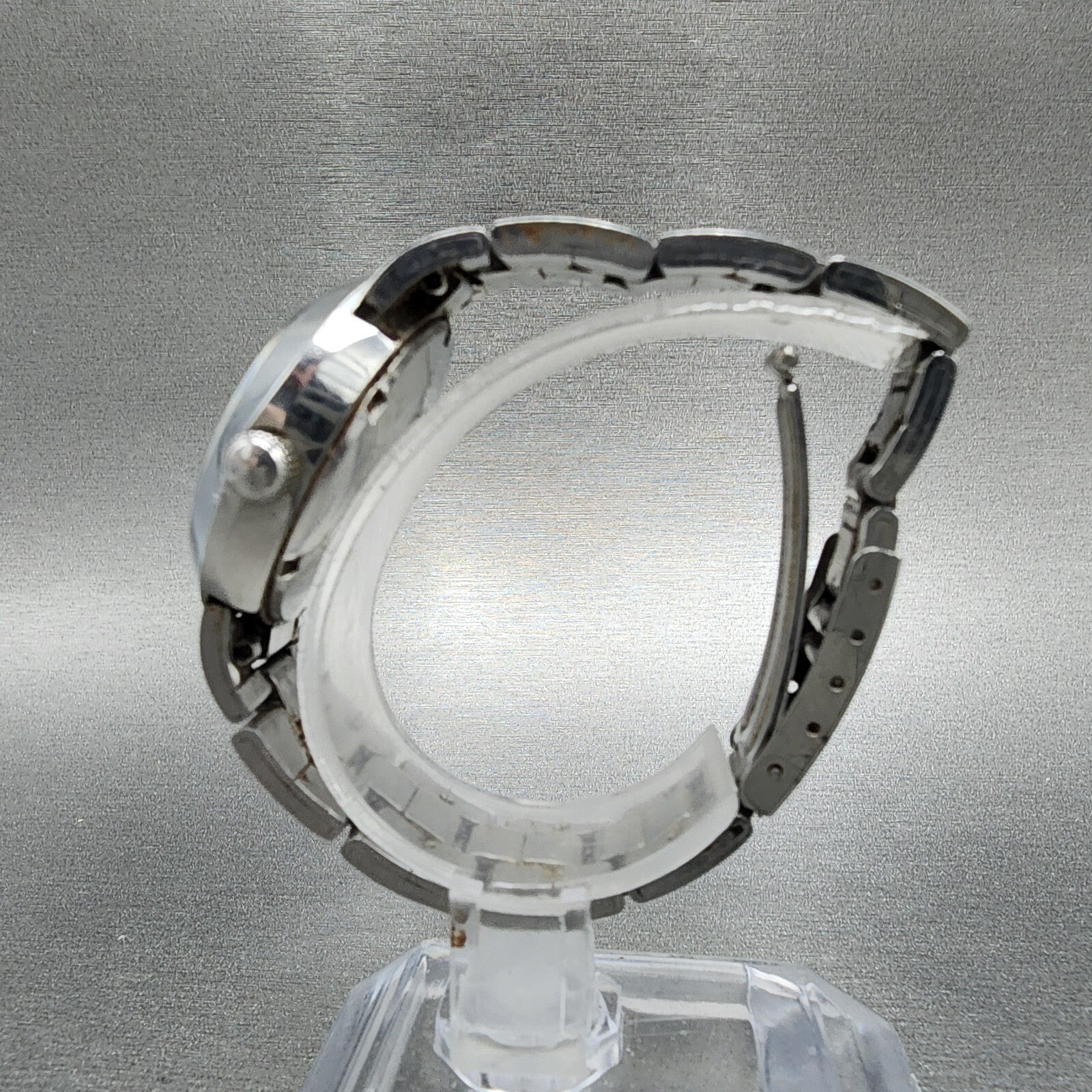 THE DAY IS NOT LINED UP AND THE QUICK SET FOR THE DAY DOES NOT WORK. This watch has been used but is in good working condition. There is scratches on the watch. please refer to pictures.