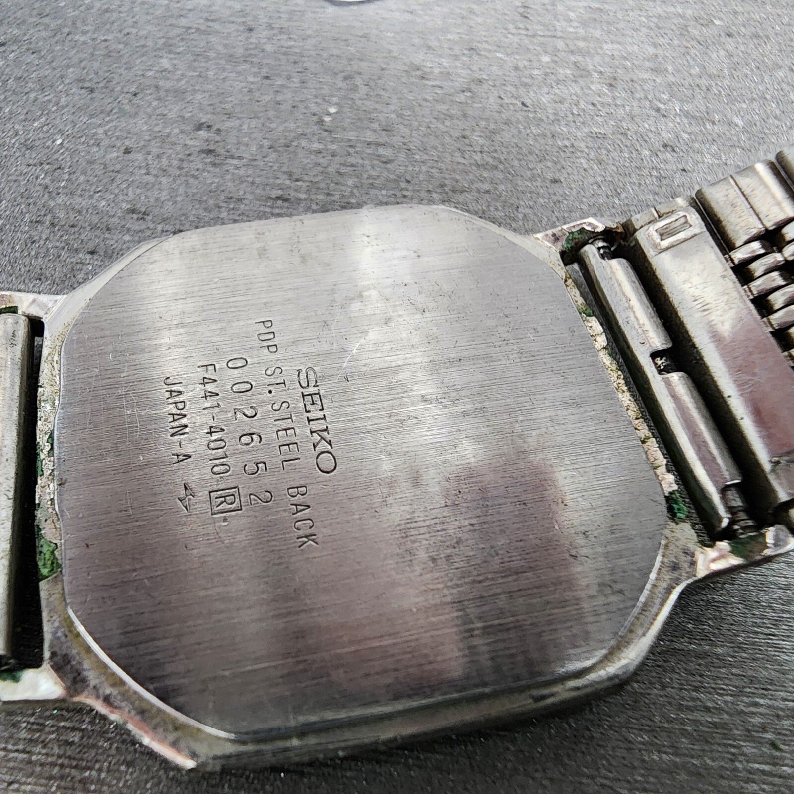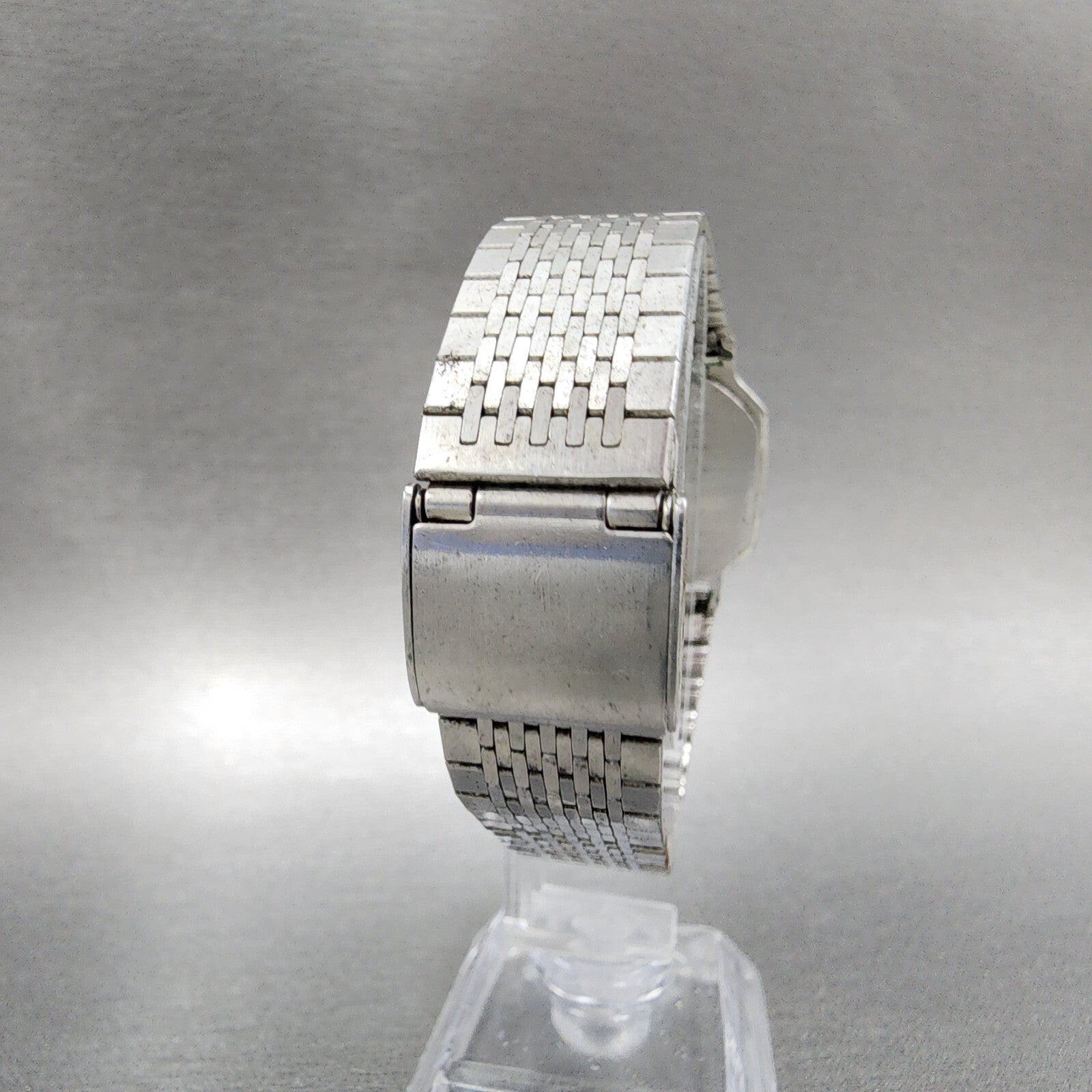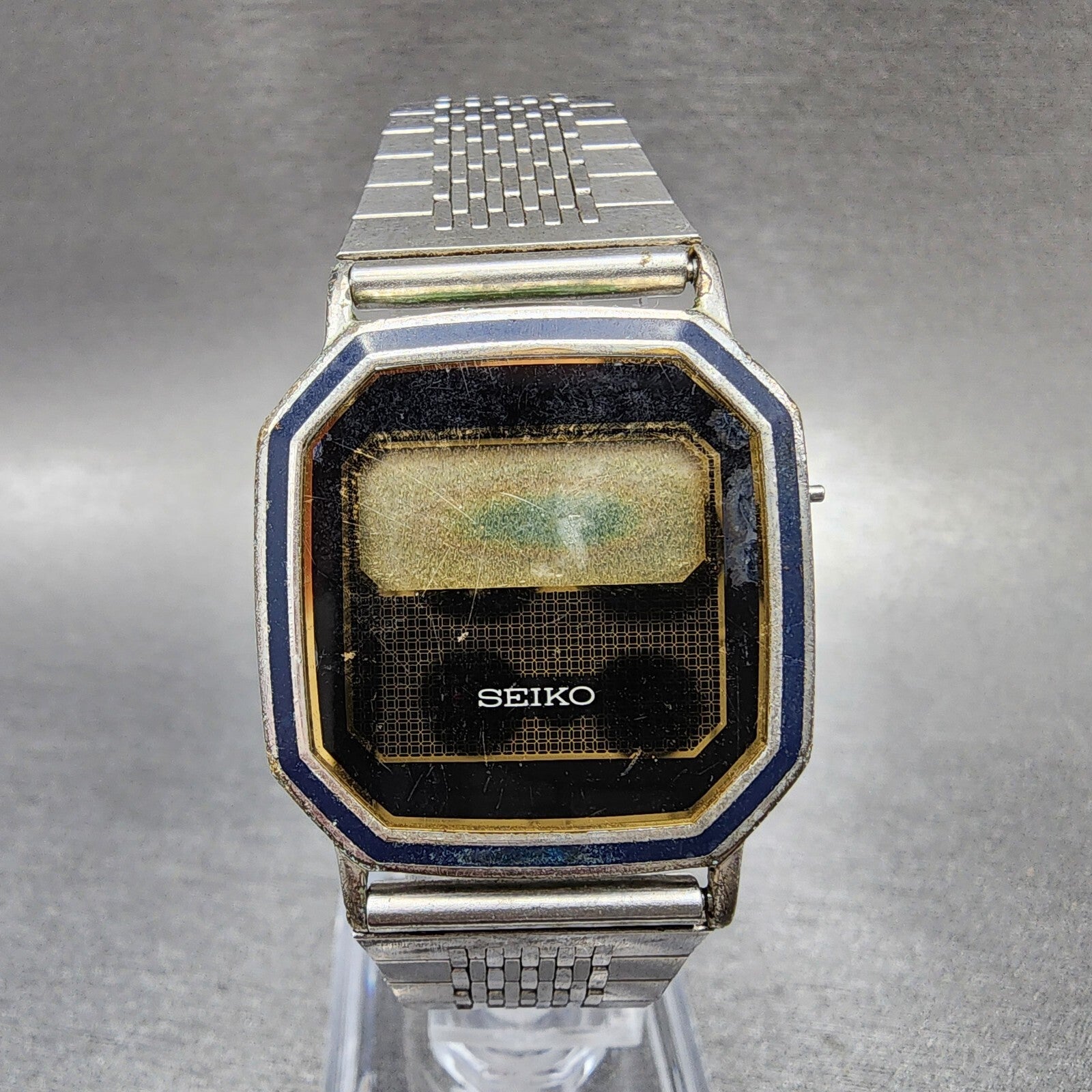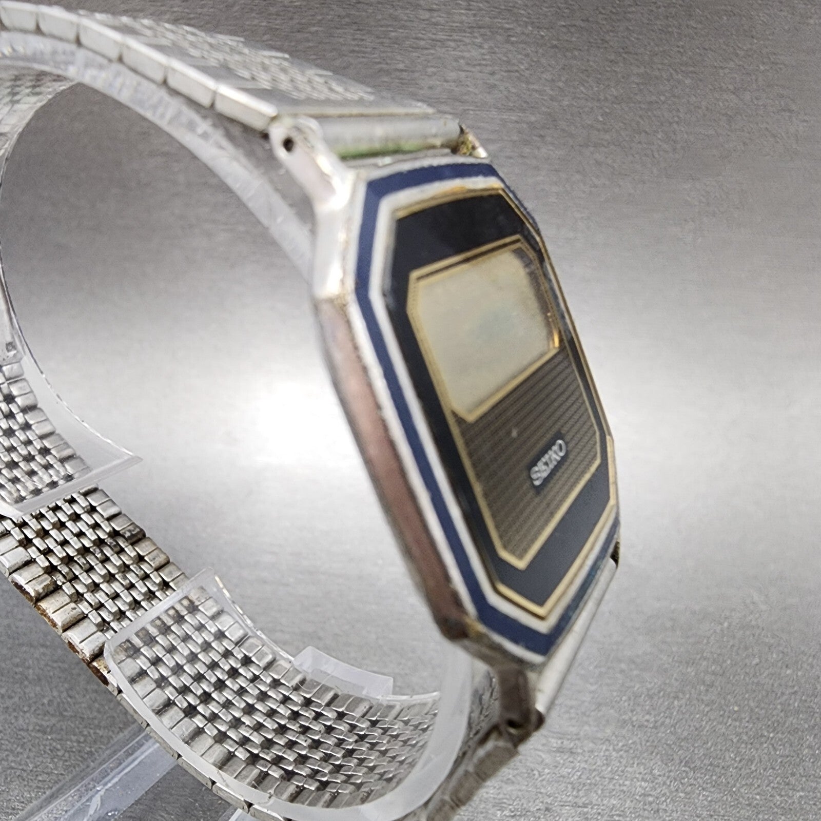 Seiko Digital Watch Men 29mm LCD Silver Tone Octagon F441-4010 Thin PARTS