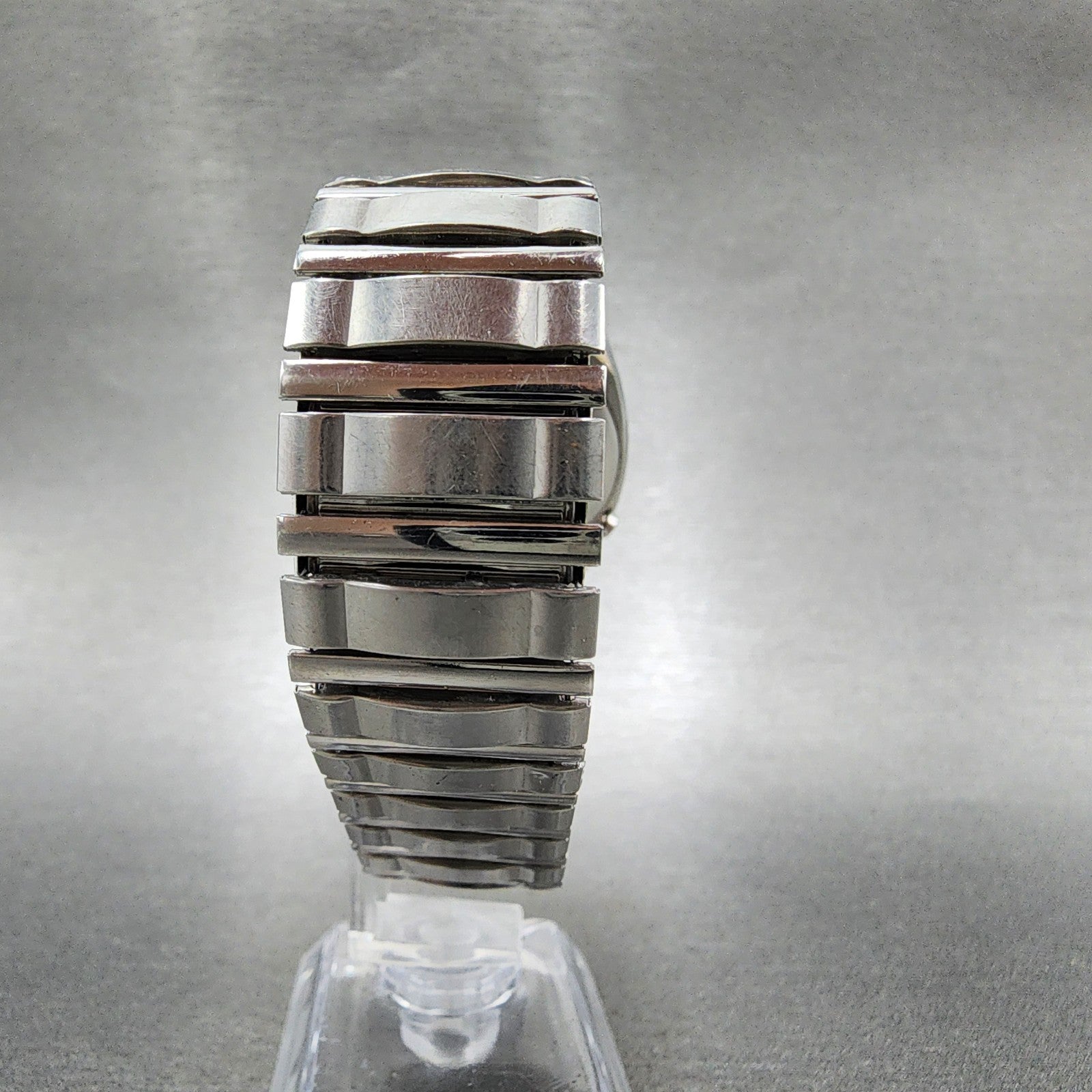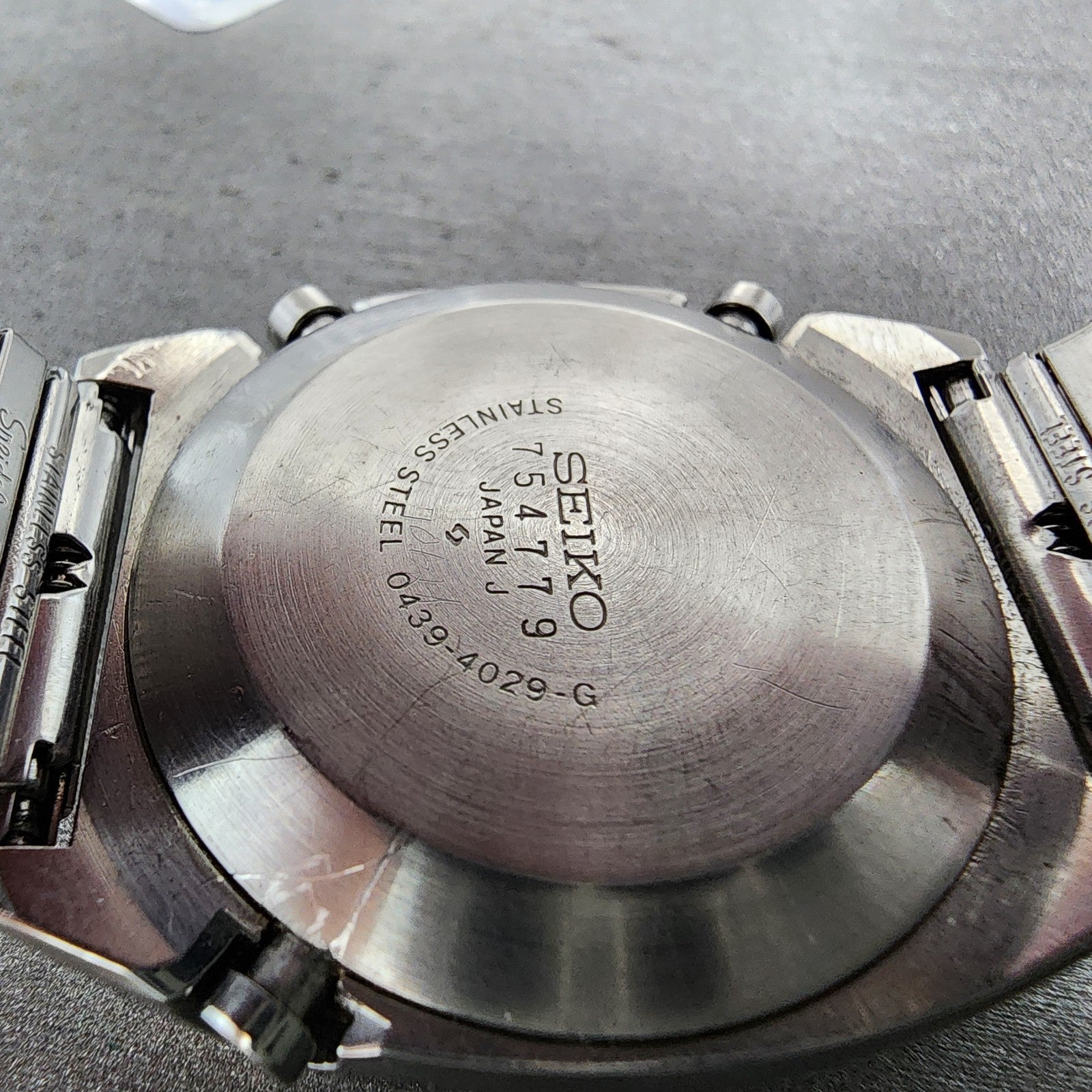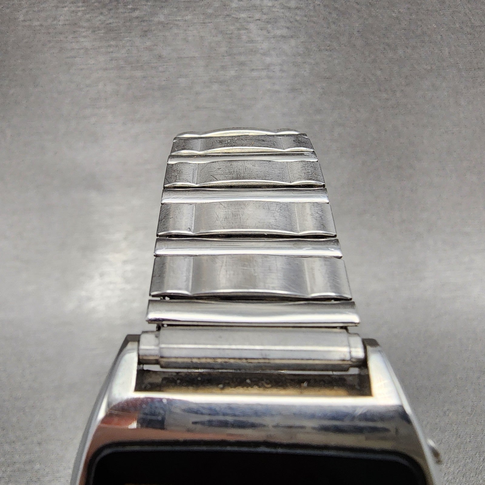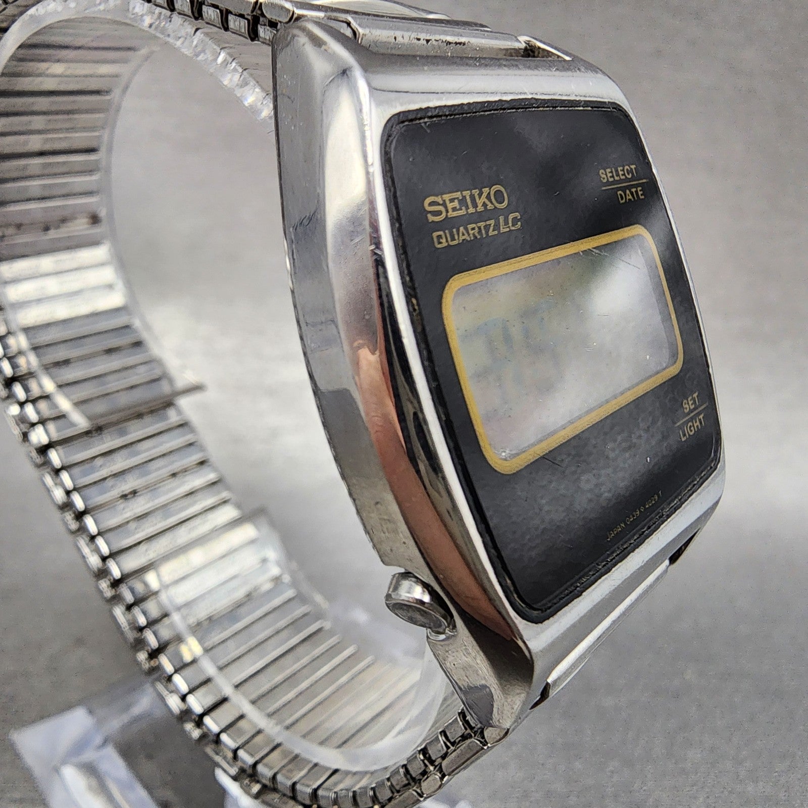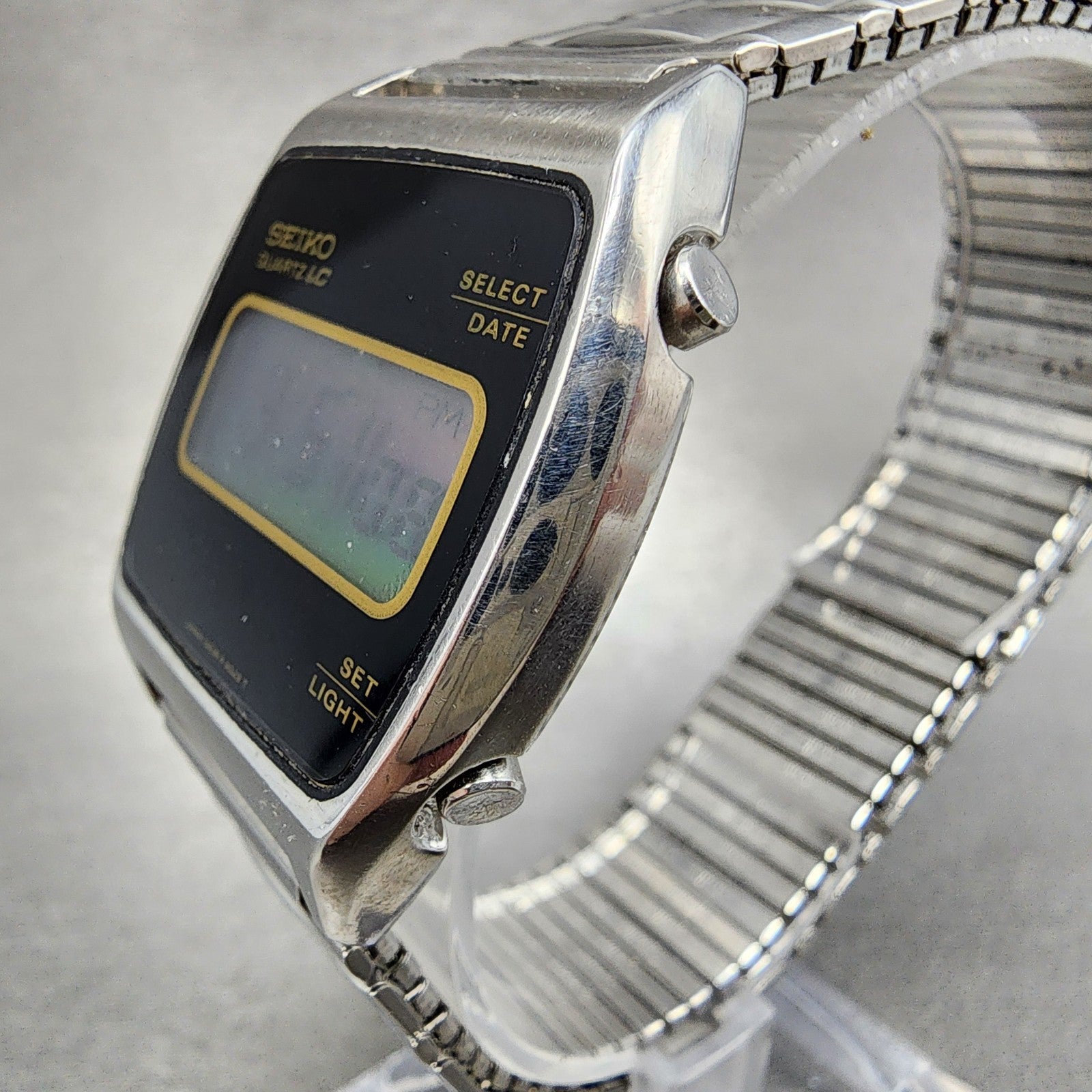 Seiko Digital Watch Men 33mm LCD Black Dial Silver Tone Rectangle 0439-4029 READ