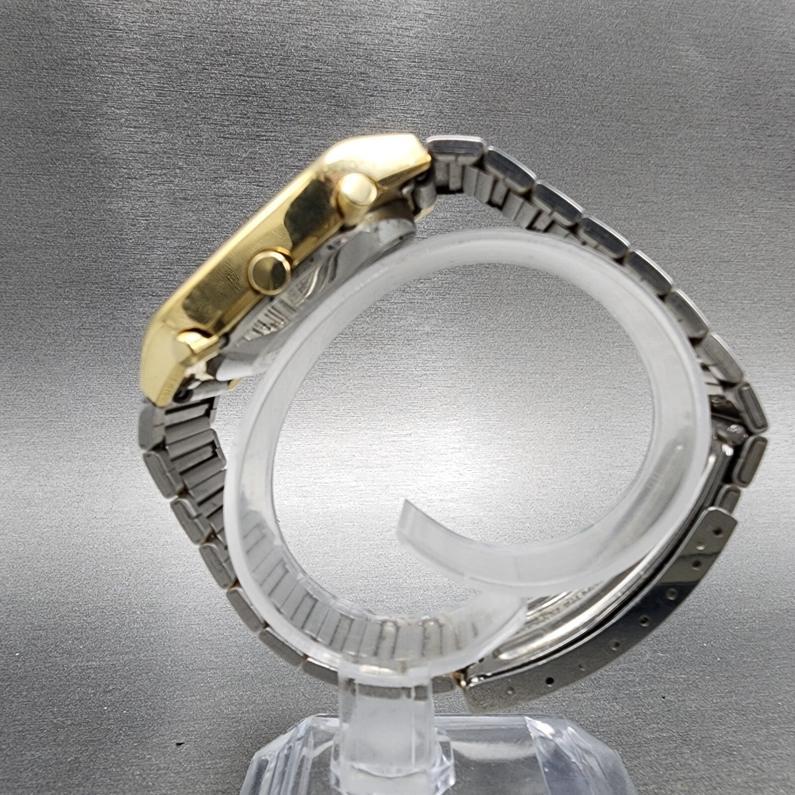 Seiko Digital Watch Men 33mm LCD Gold Tone Rectangle Memory Bank READ New Batt