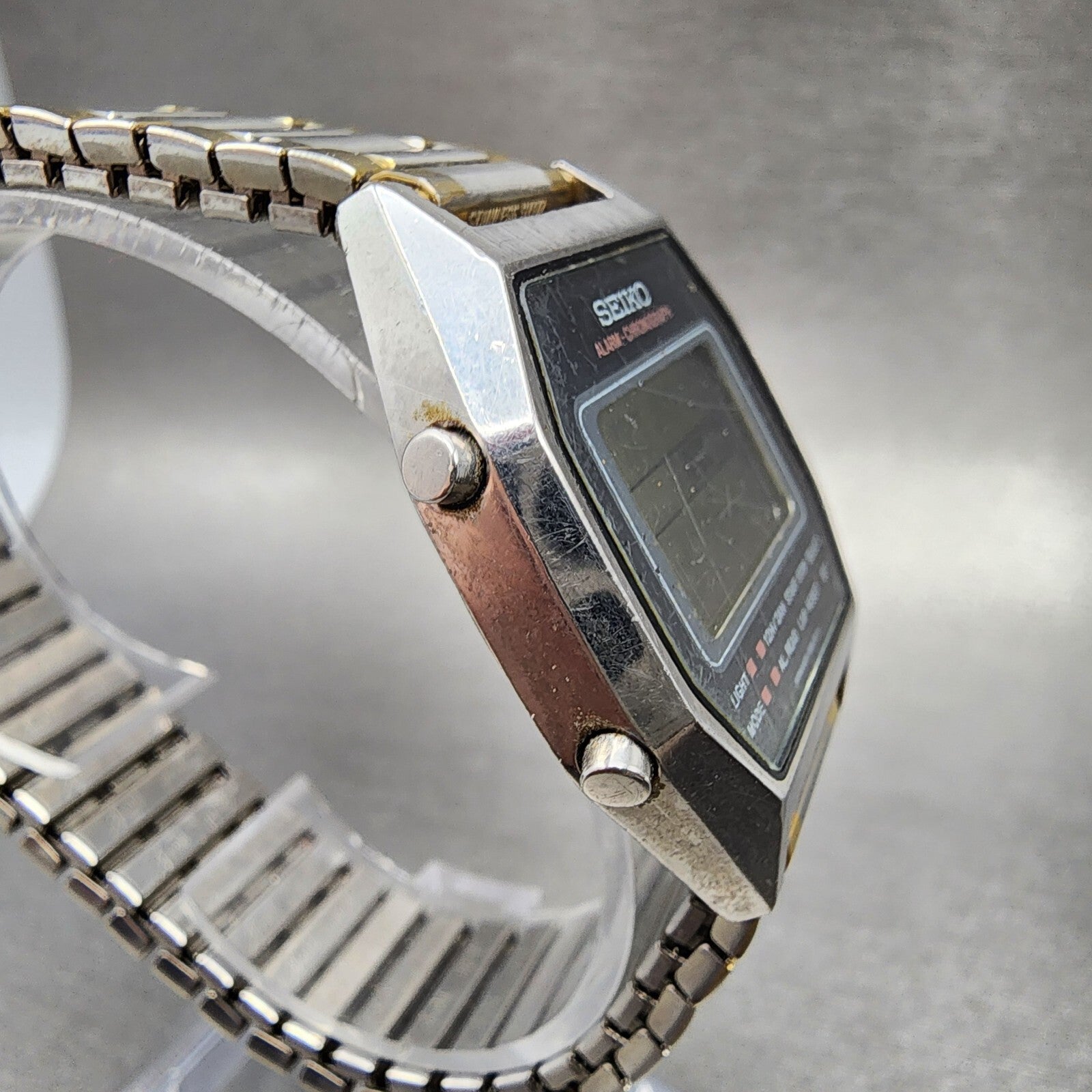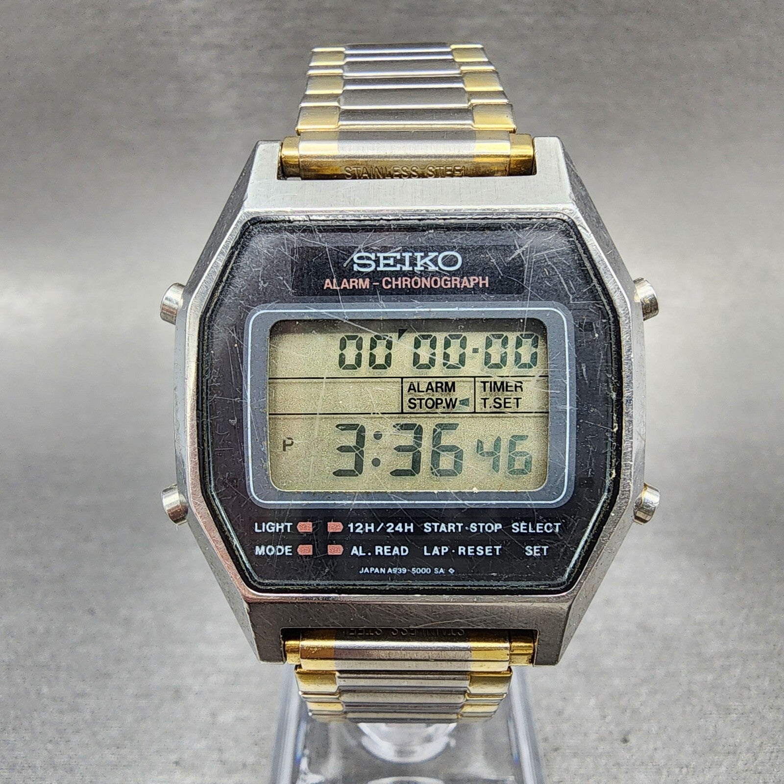 Seiko Digital Watch Men 34mm Black Dial Two Tone A939-5009 New Battery