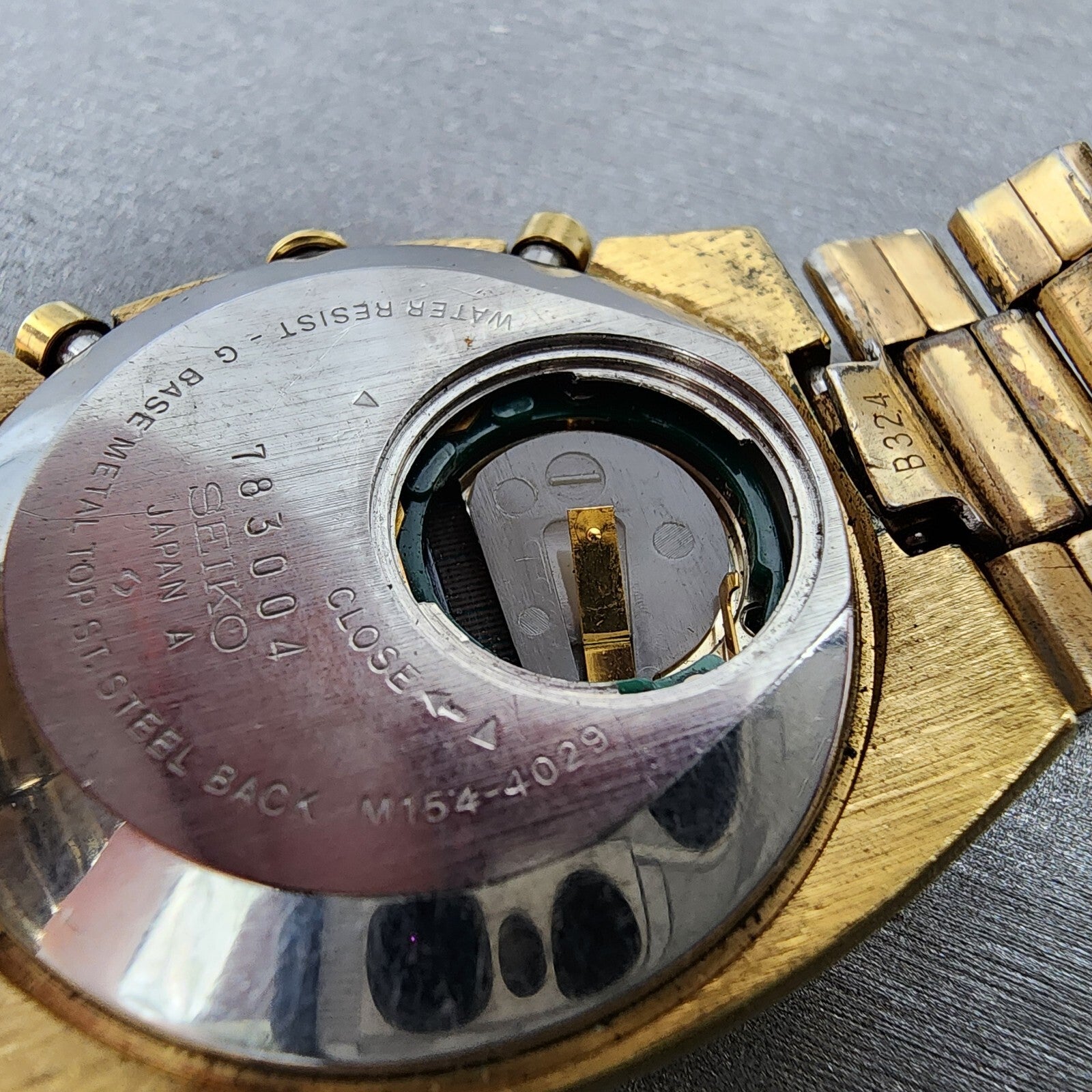 MISSING BATTERY COVER. This watch has been worn but is in good working condition.