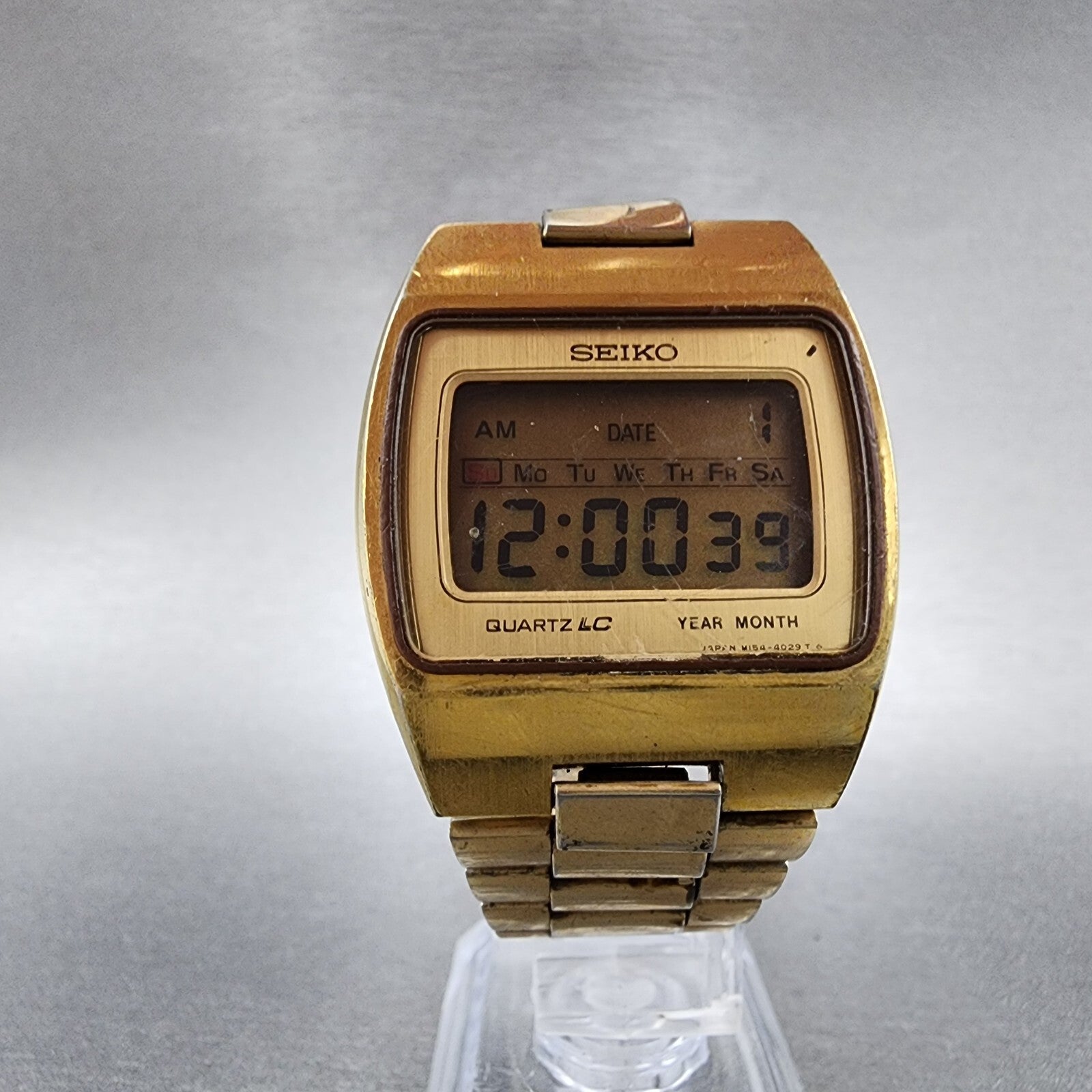 Seiko Digital Watch Men 34mm Gold Tone M154-4029 New Battery READ!!!!