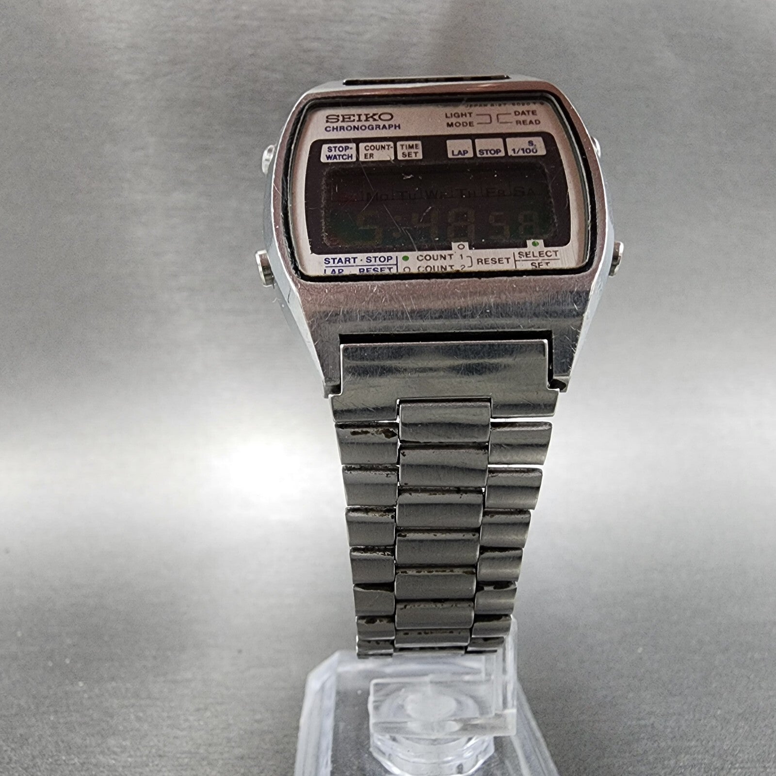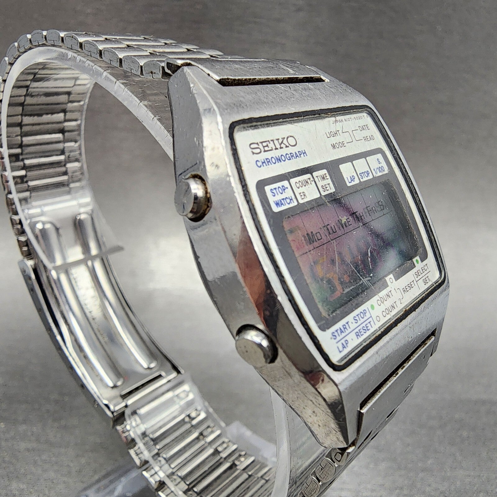 Seiko Digital Watch Men 34mm Steel Chronograph A127-5029 New Battery