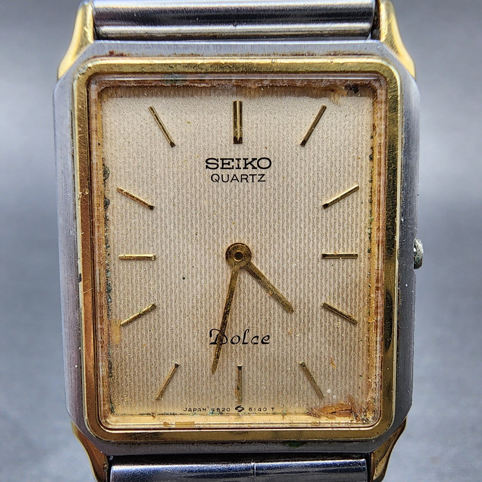 Seiko Dolce Tank Watch Men 25mm Champagne Dial Two Tone 9520-5130 New Batt READ!