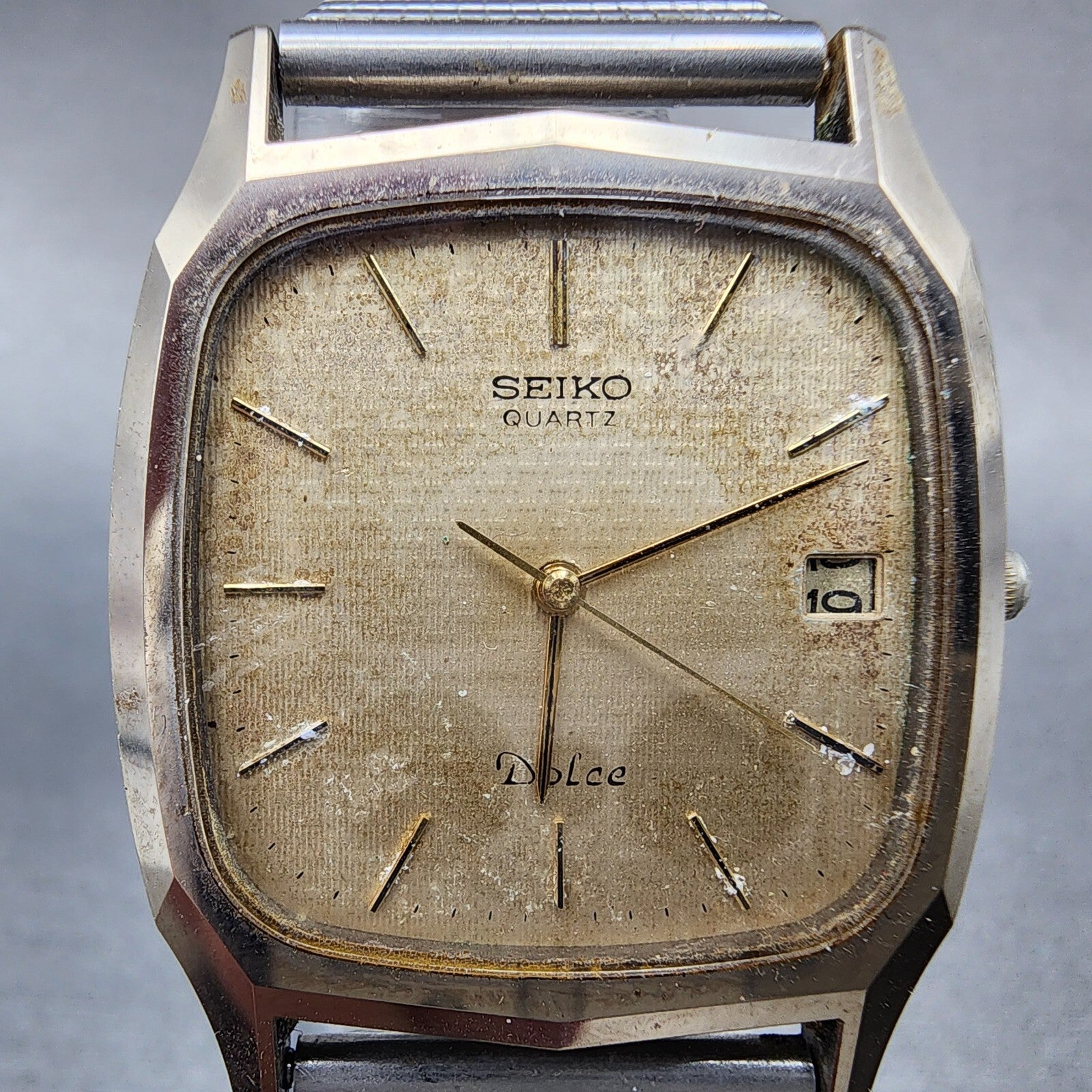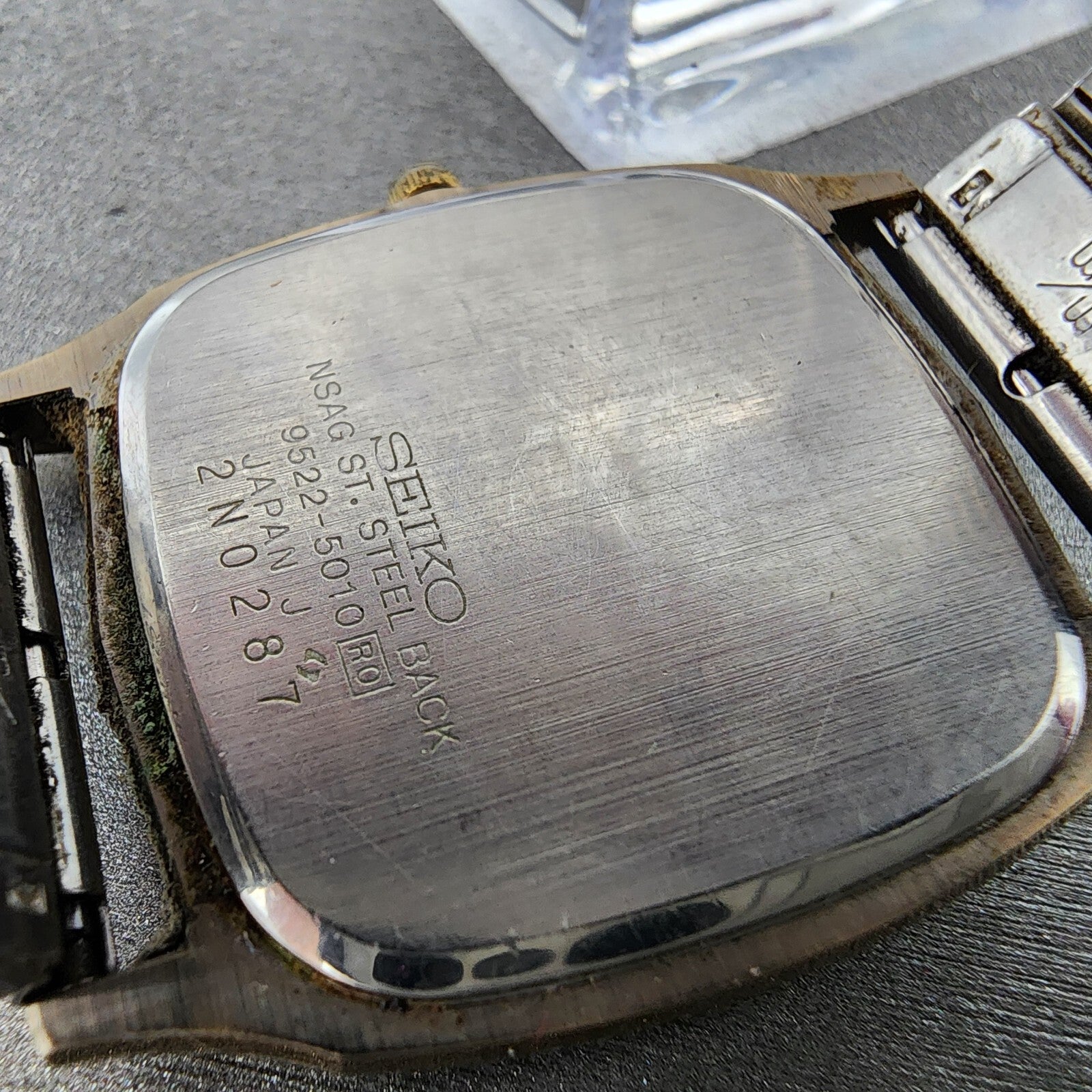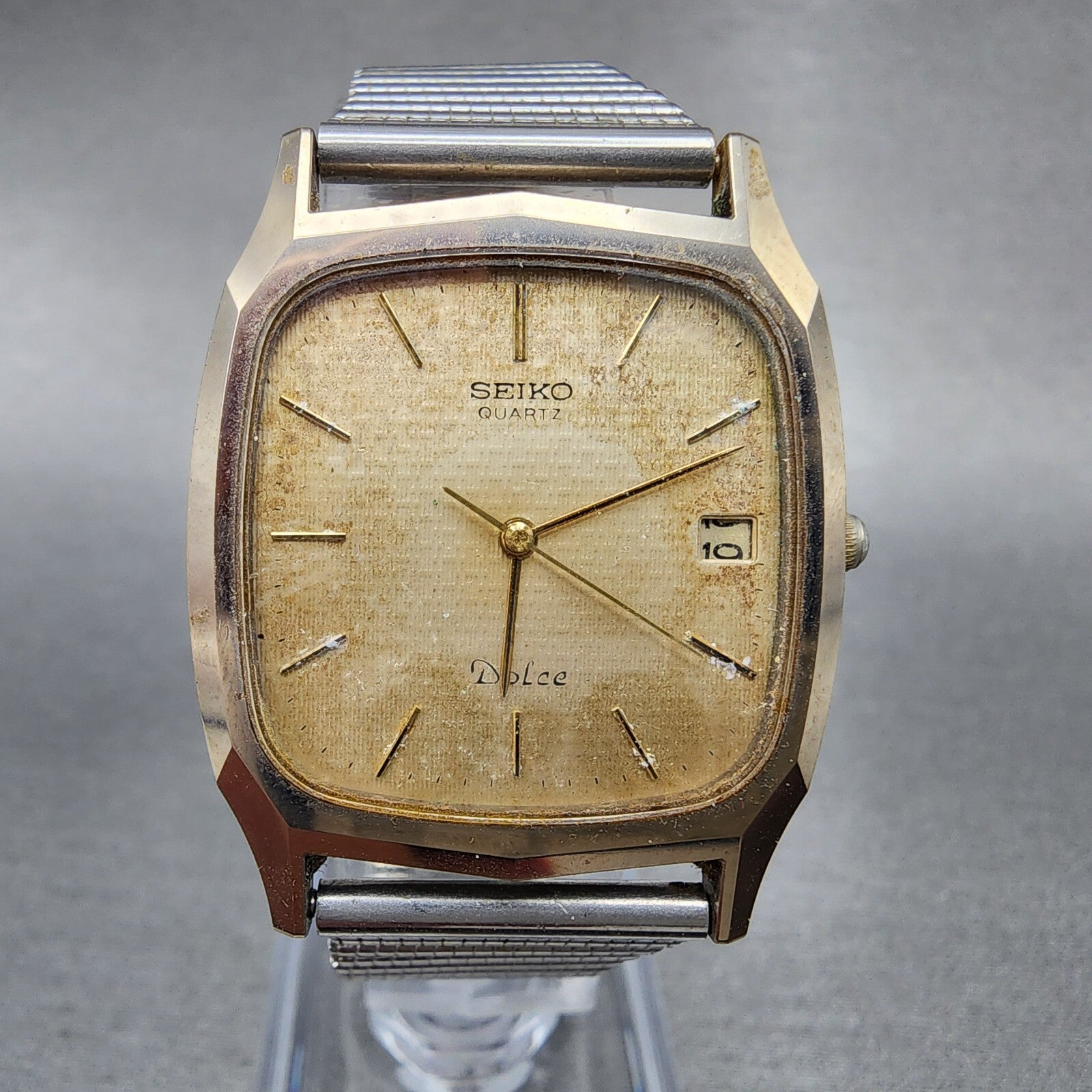 Seiko Dolce Watch Men 29mm Champagne Dial Gold Date Rectangle 9522-5010 PARTS